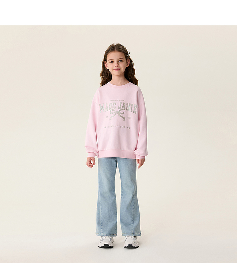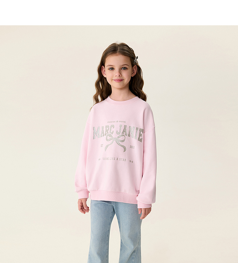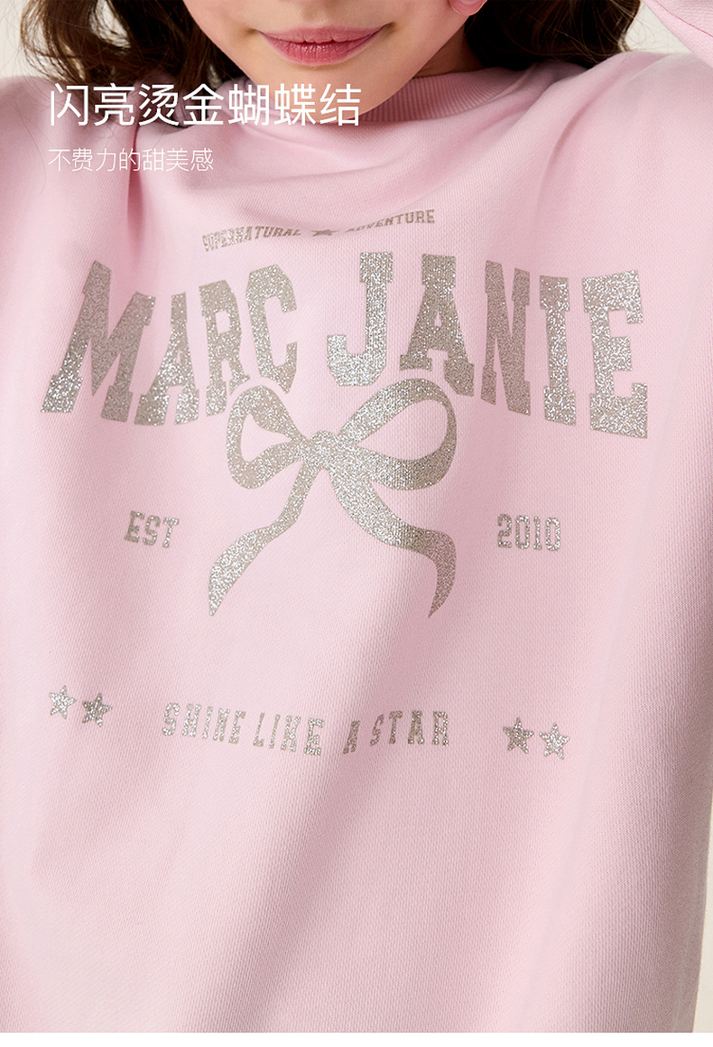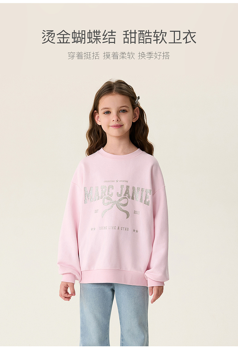 马克珍妮烫金蝴蝶结女童甜酷软卫衣2026年春装新款560079