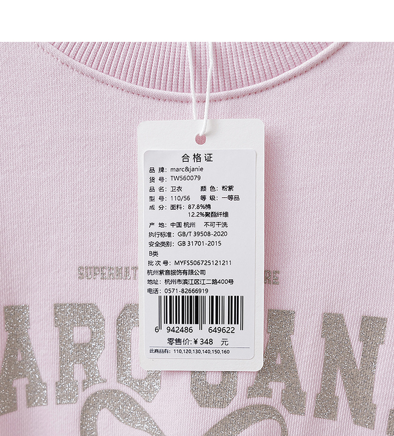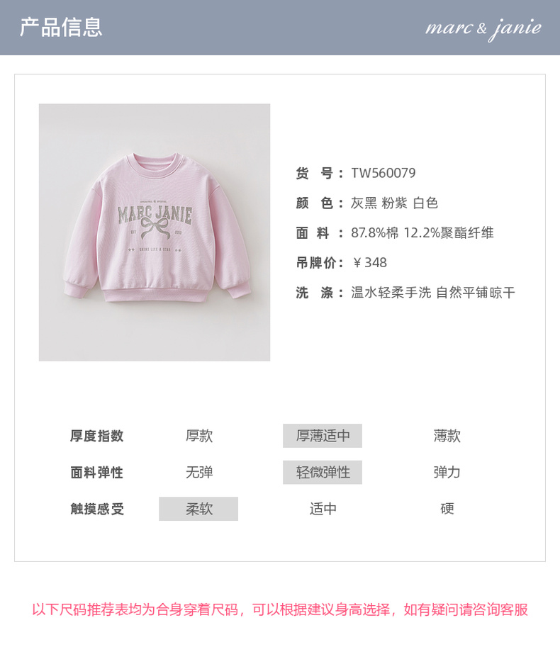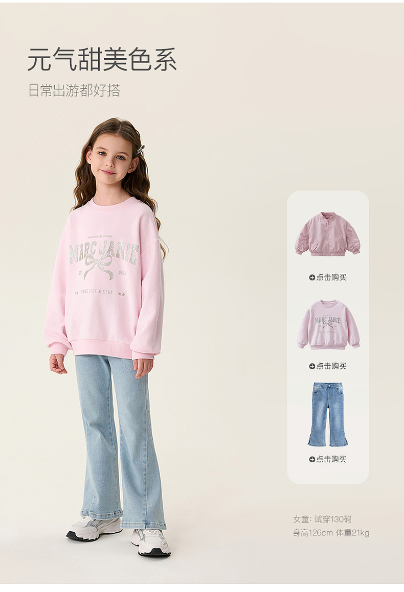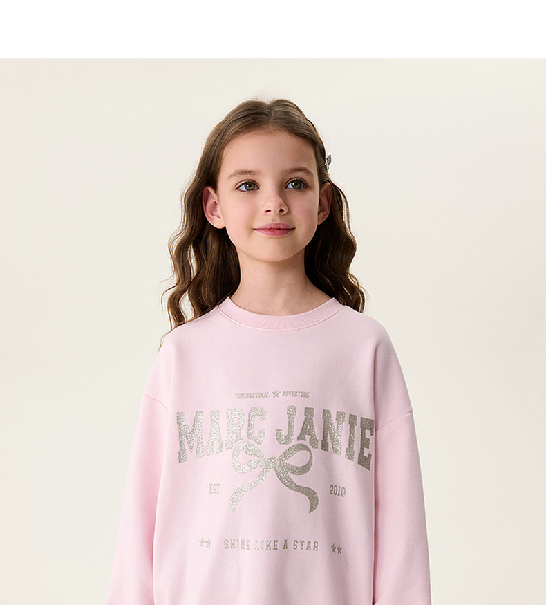 马克珍妮烫金蝴蝶结女童甜酷软卫衣2026年春装新款560079