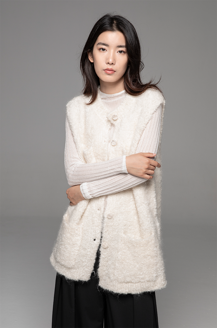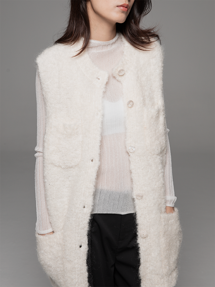 LIYIHAN 24秋马海毛圈绒羊毛衫针织背心马甲圆领保暖宽松慵懒风