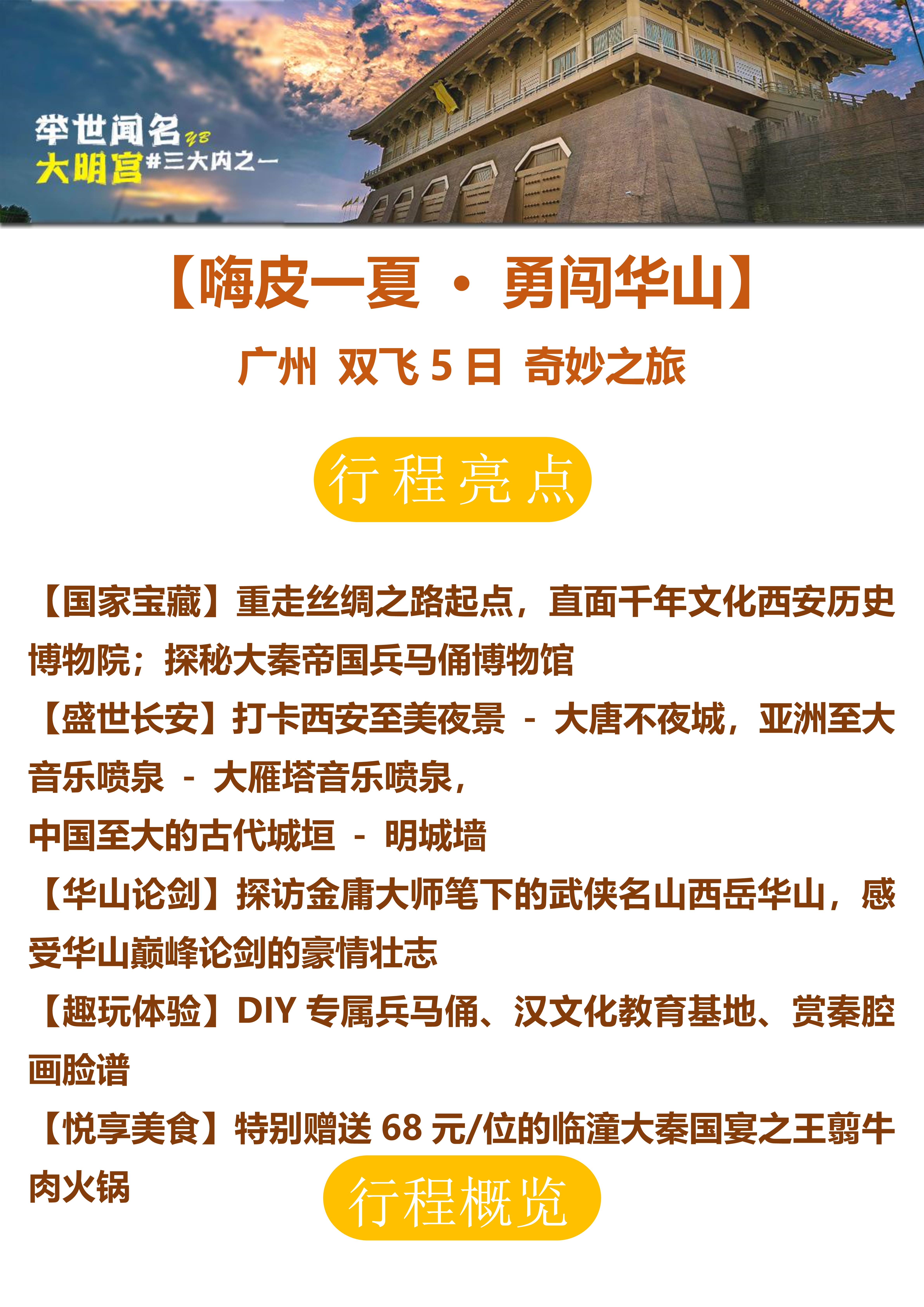 【嗨皮一夏 · 勇闯华山】广州 双飞5日 奇妙之旅
