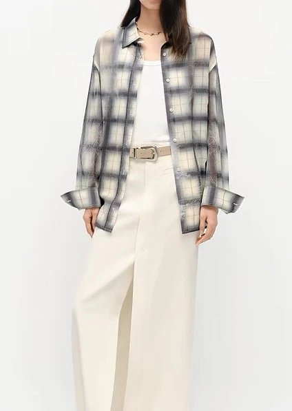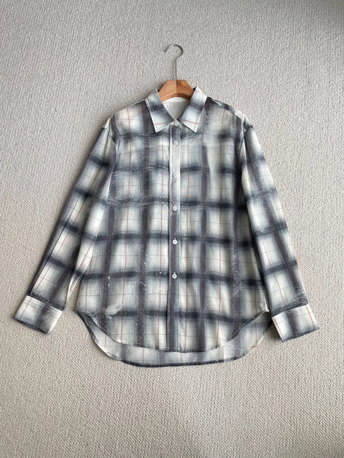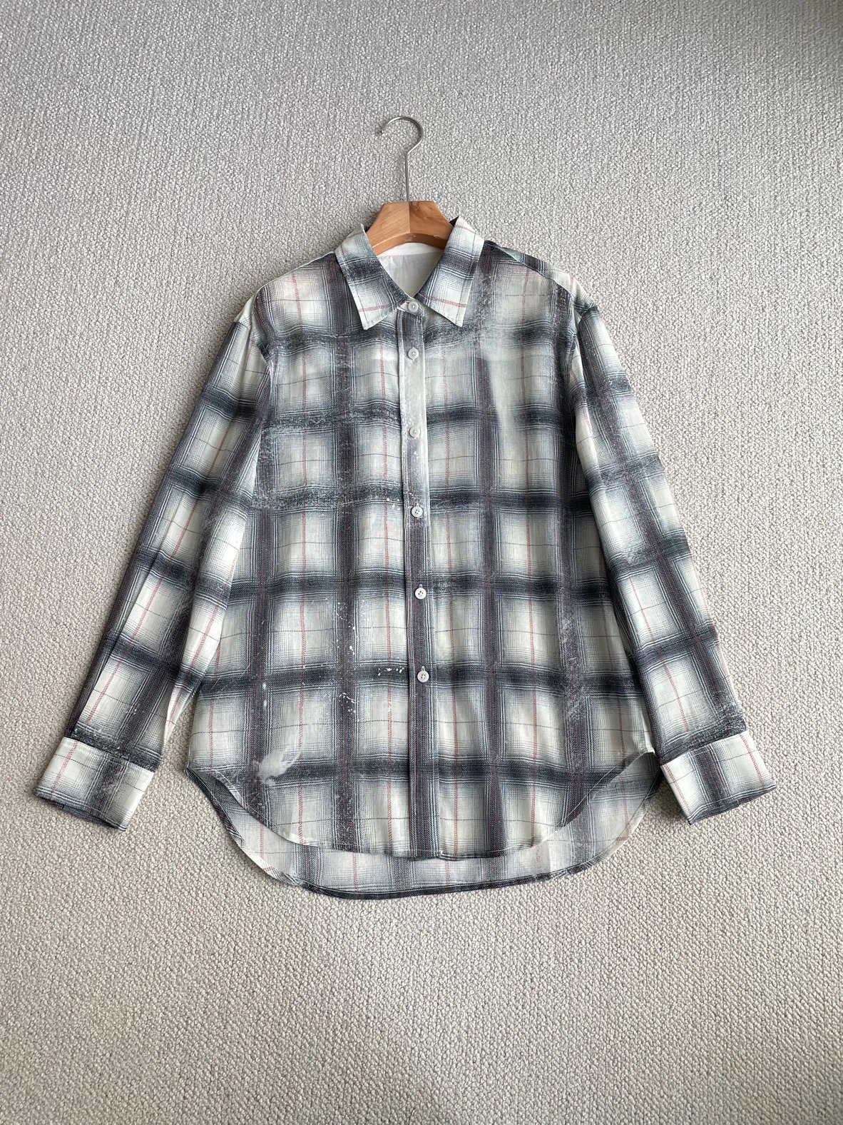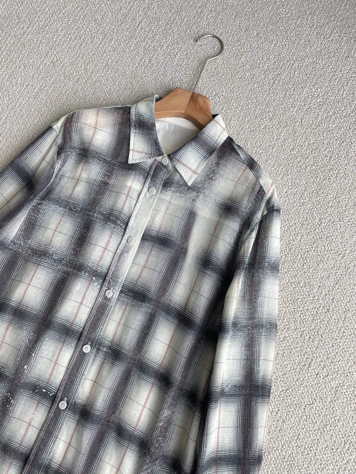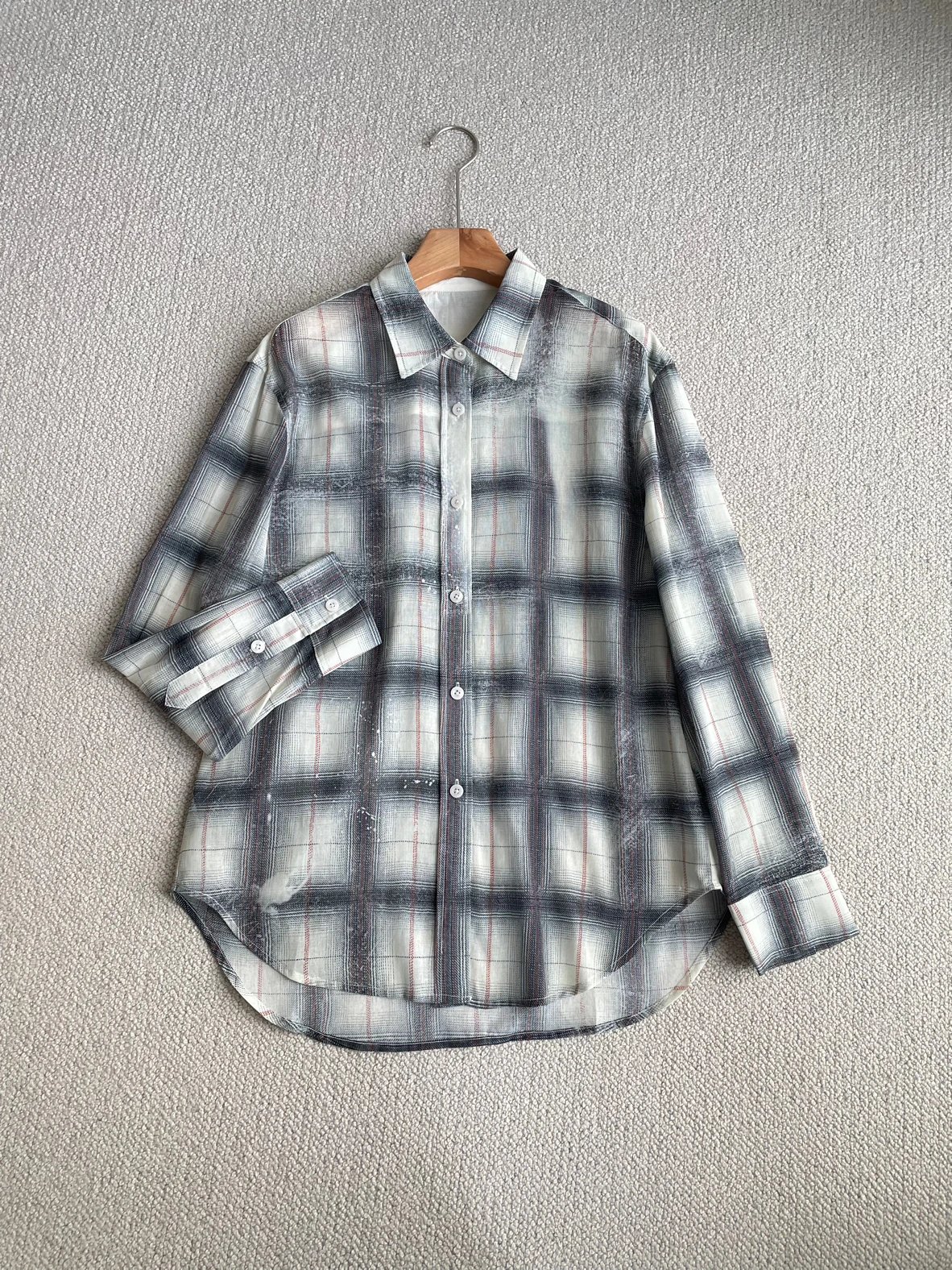 重磅渠道 超薄格纹印花衬衫 MC做旧斑驳印花 男友风廓形衬衫