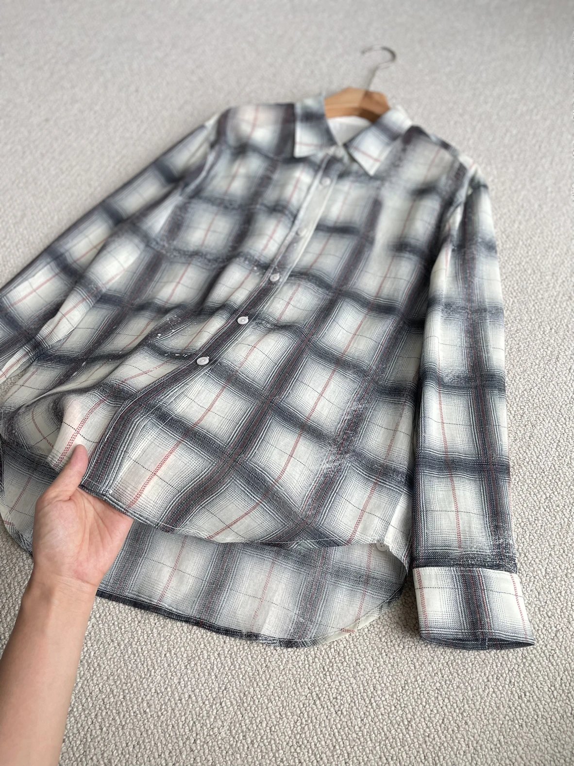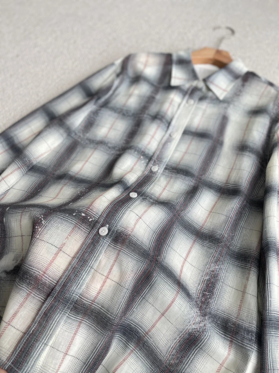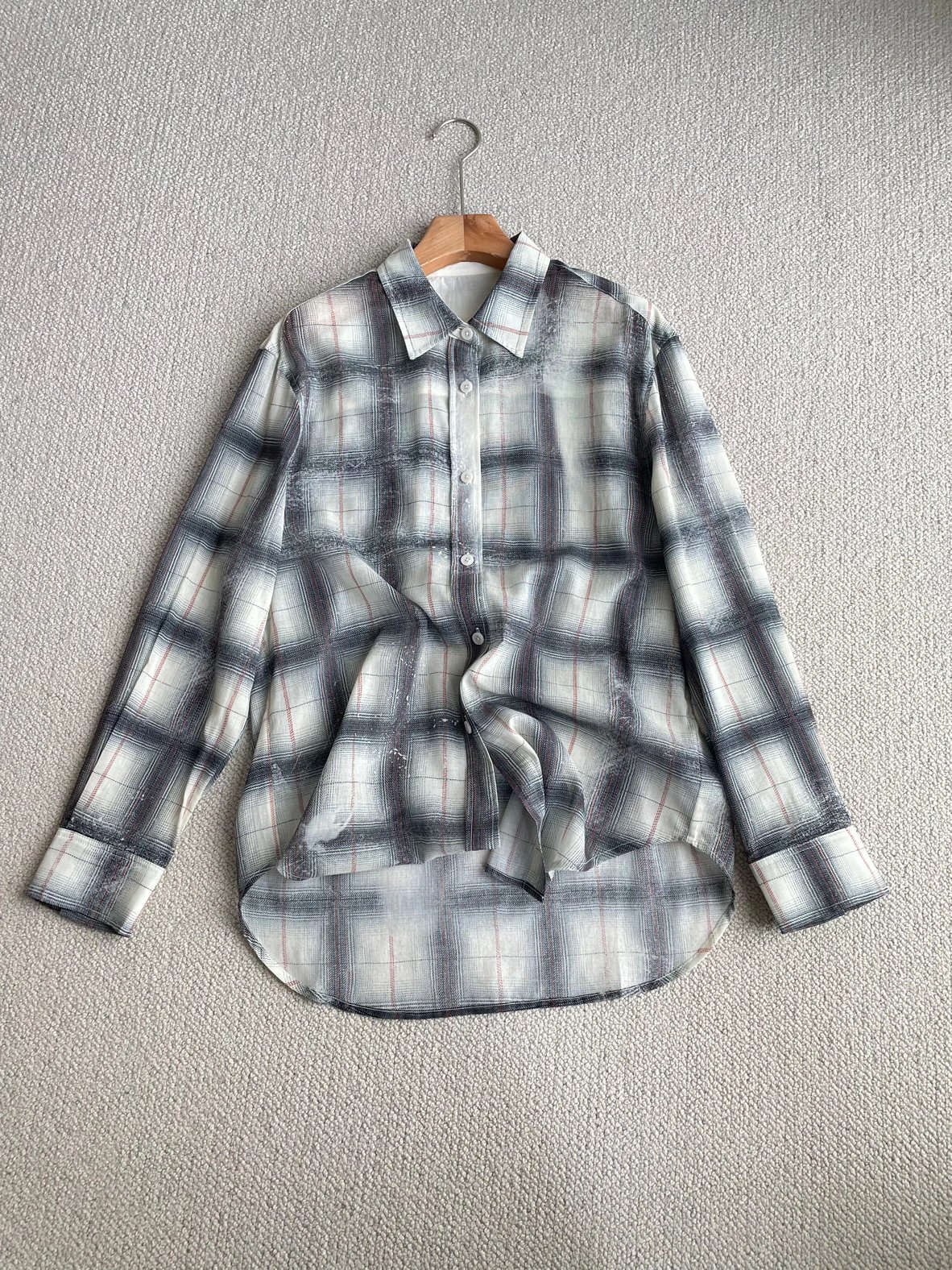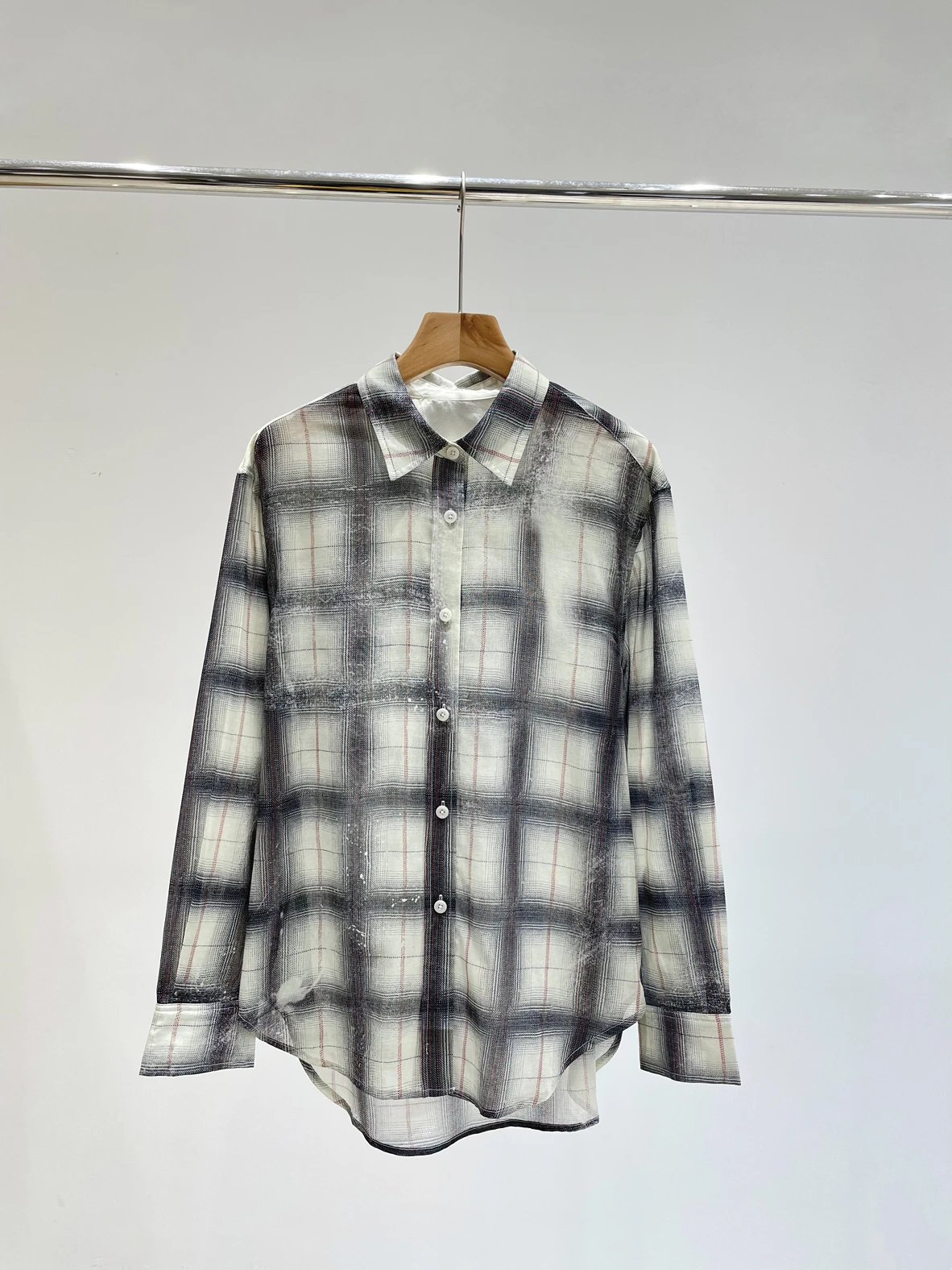 重磅渠道 超薄格纹印花衬衫 MC做旧斑驳印花 男友风廓形衬衫