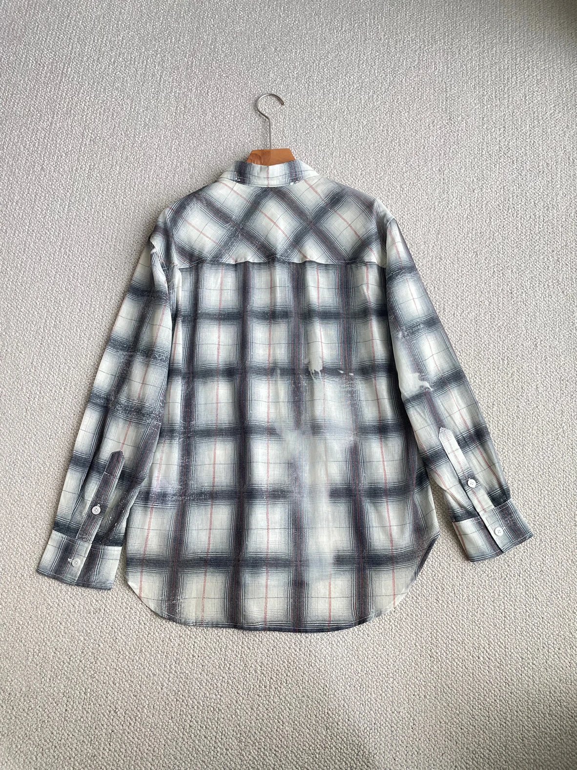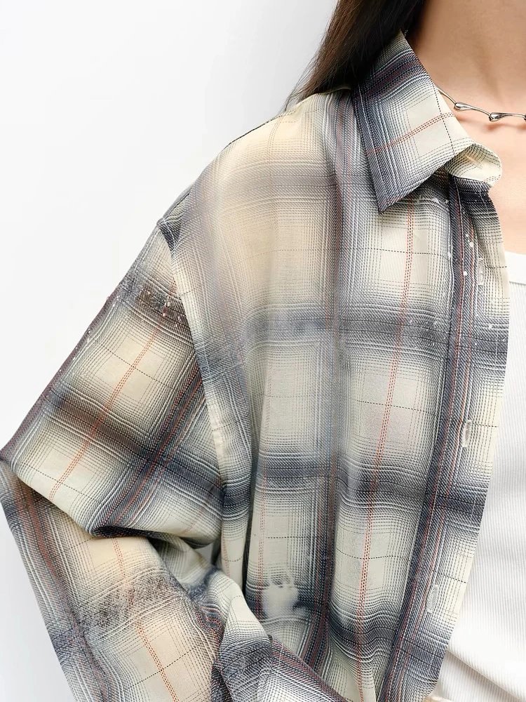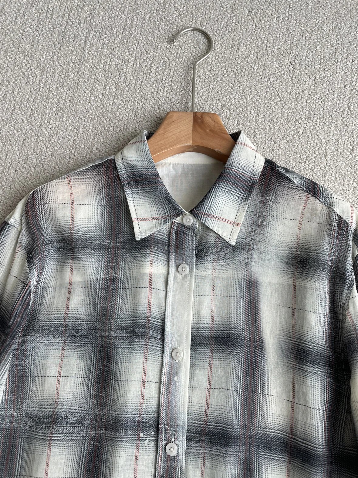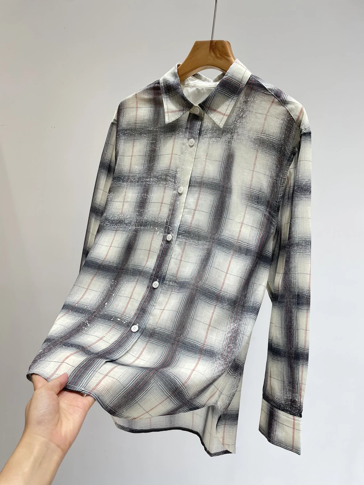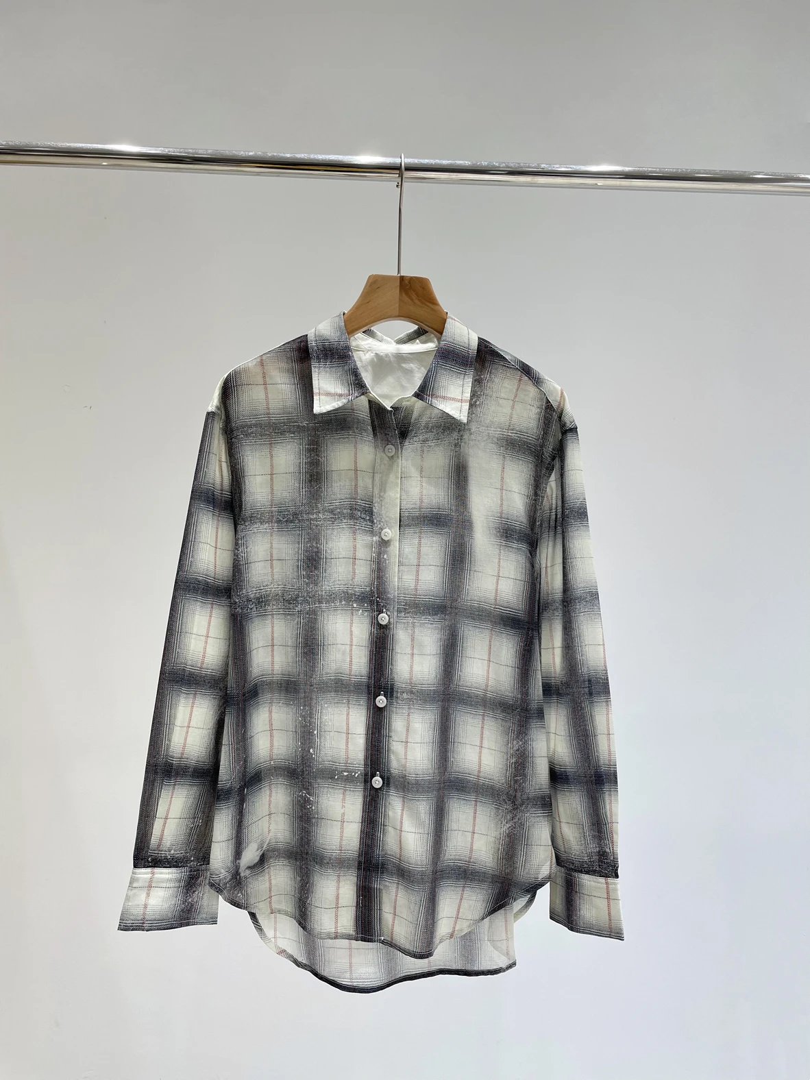 重磅渠道 超薄格纹印花衬衫 MC做旧斑驳印花 男友风廓形衬衫