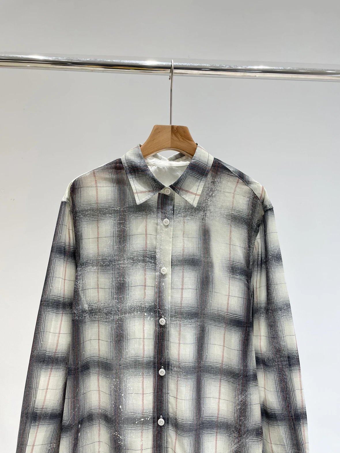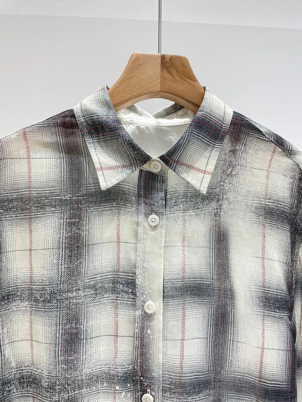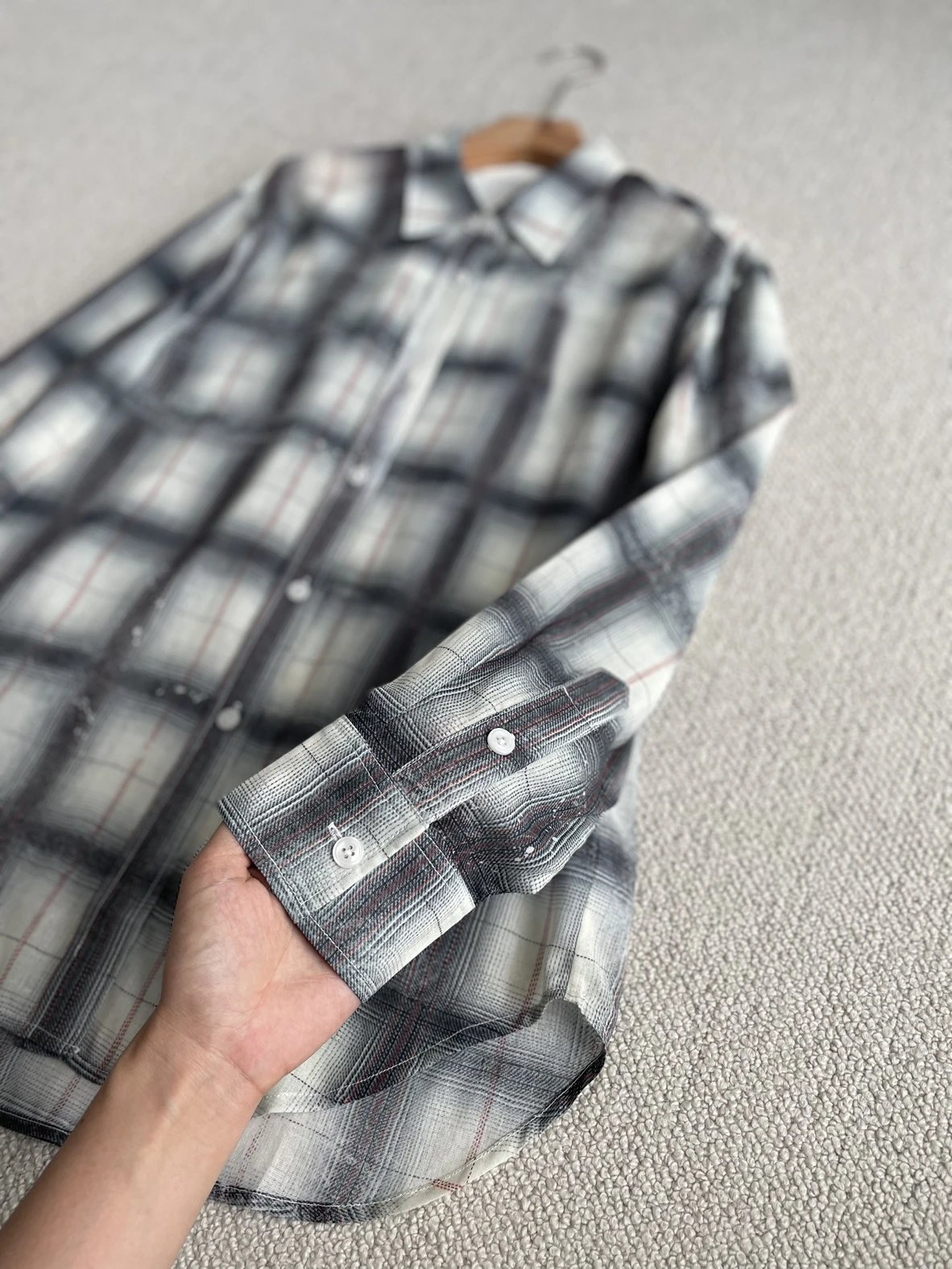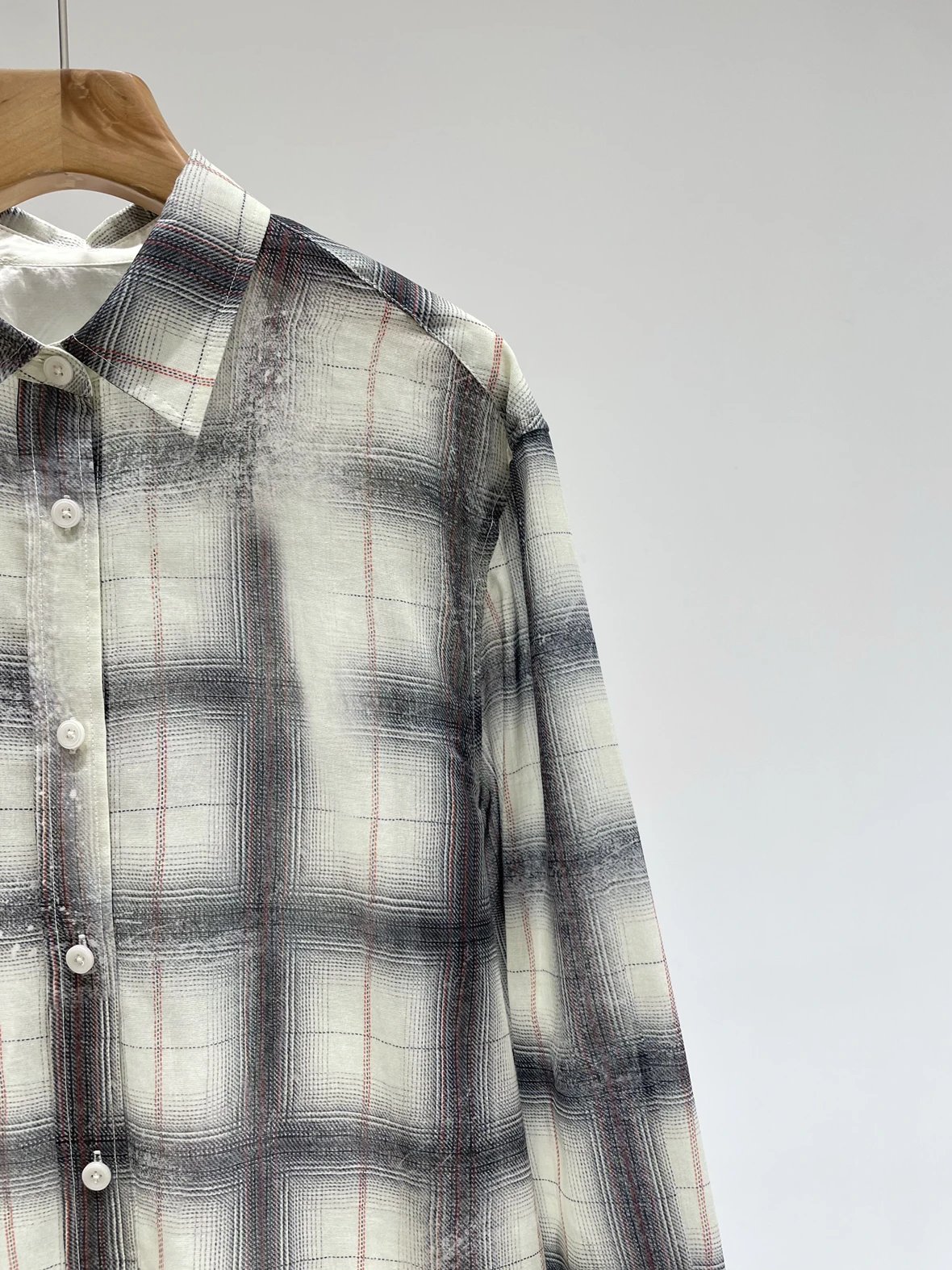 重磅渠道 超薄格纹印花衬衫 MC做旧斑驳印花 男友风廓形衬衫