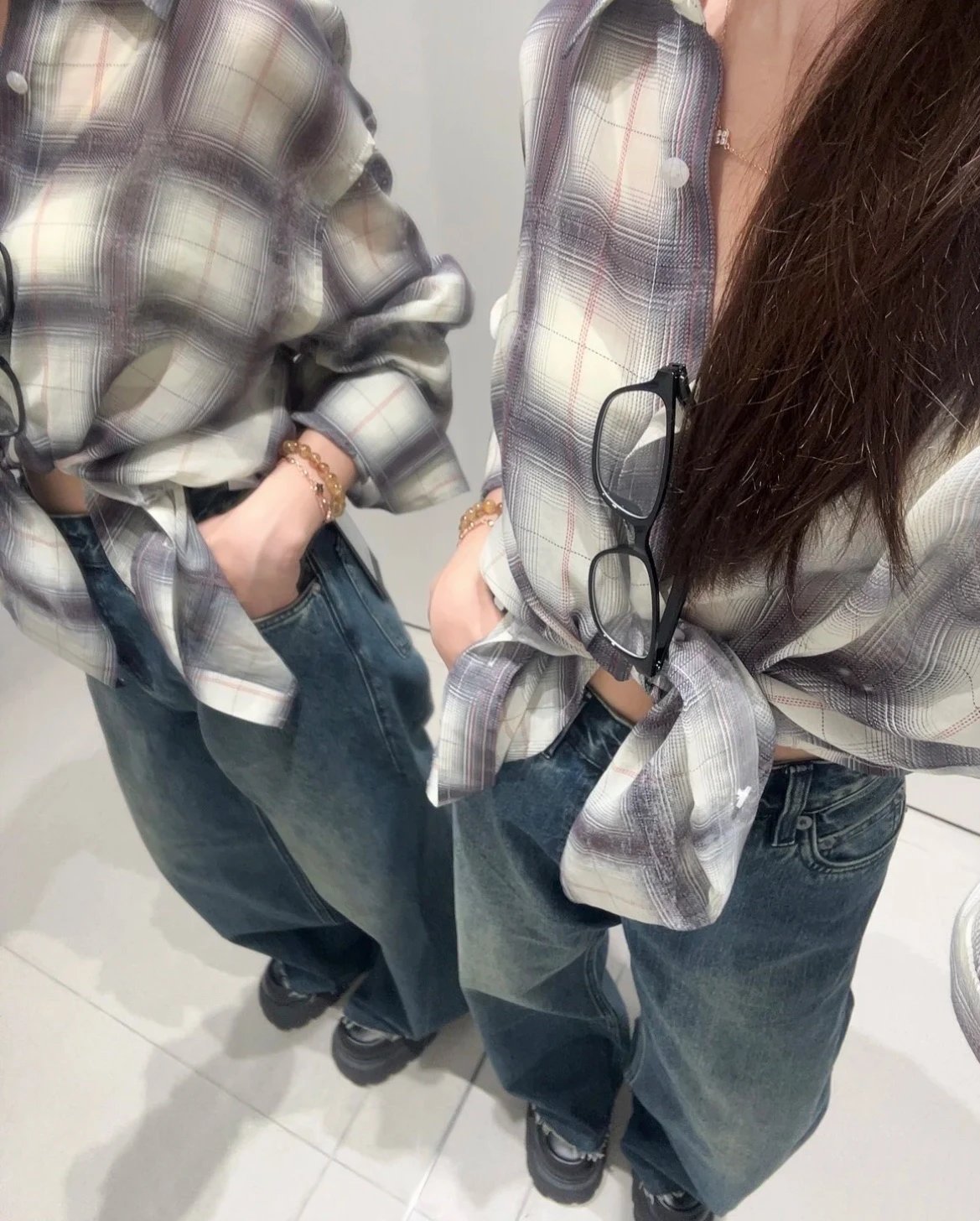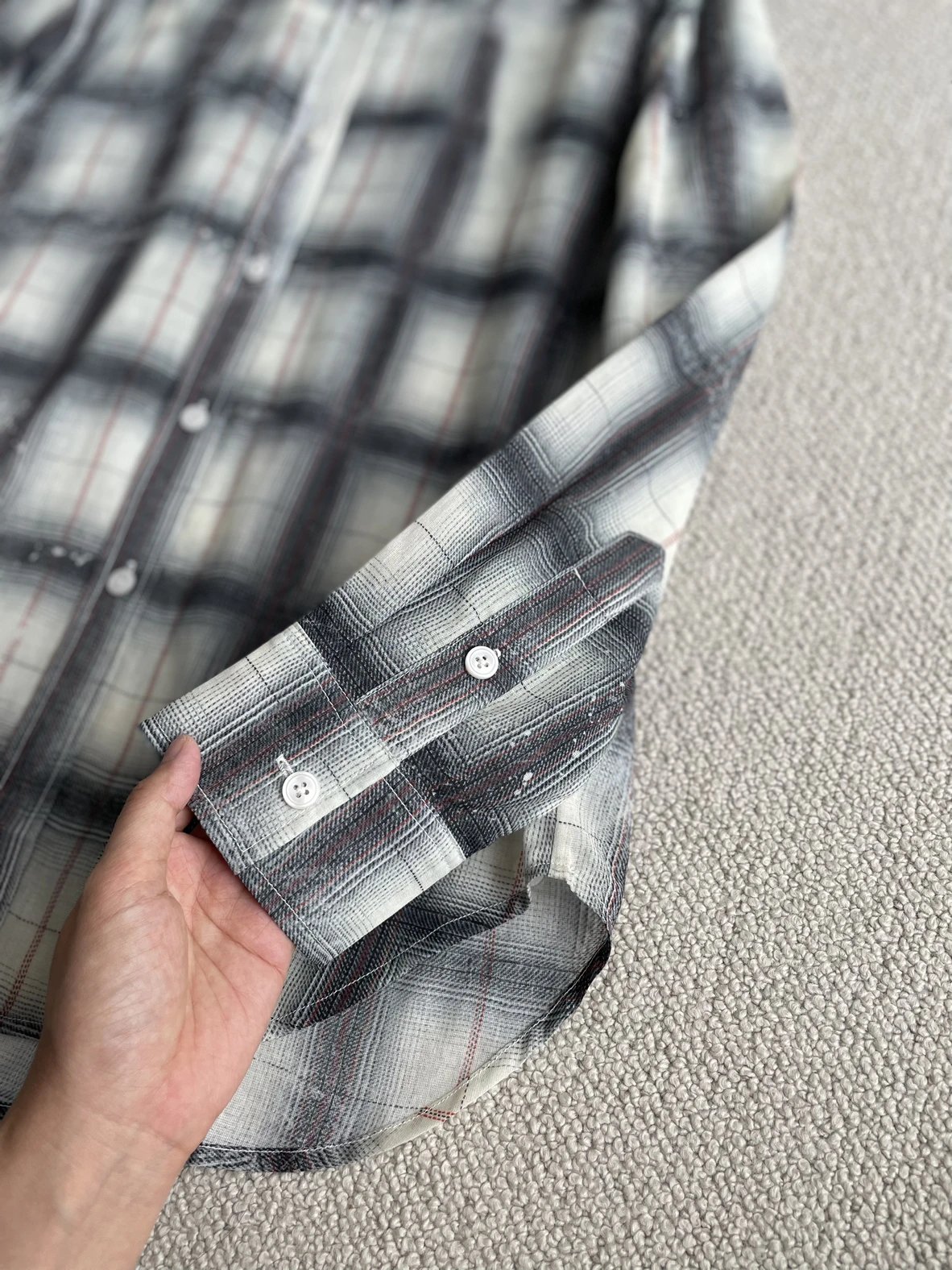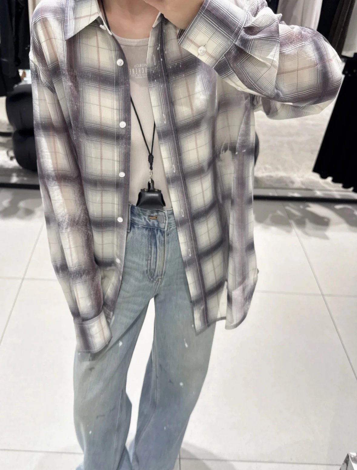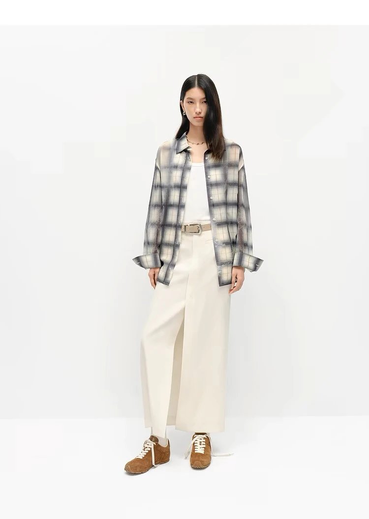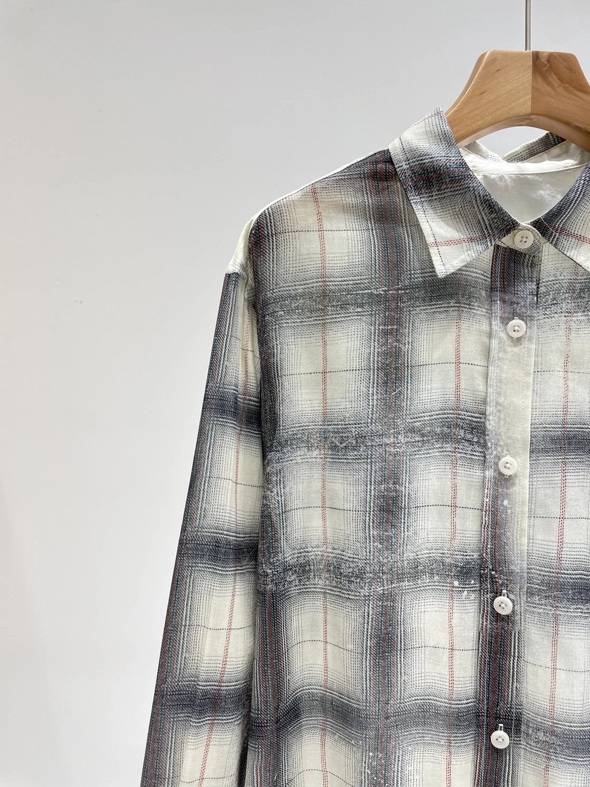 重磅渠道 超薄格纹印花衬衫 MC做旧斑驳印花 男友风廓形衬衫
