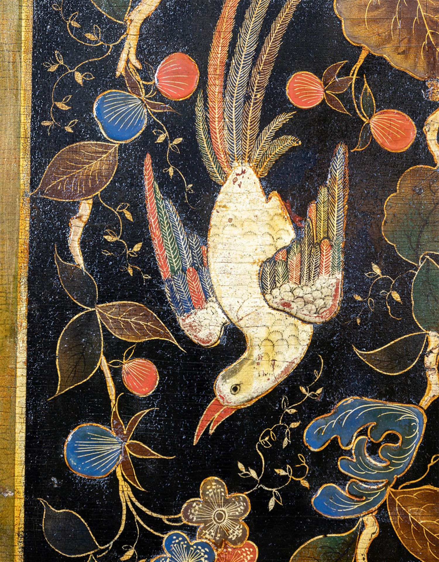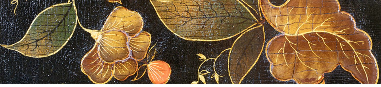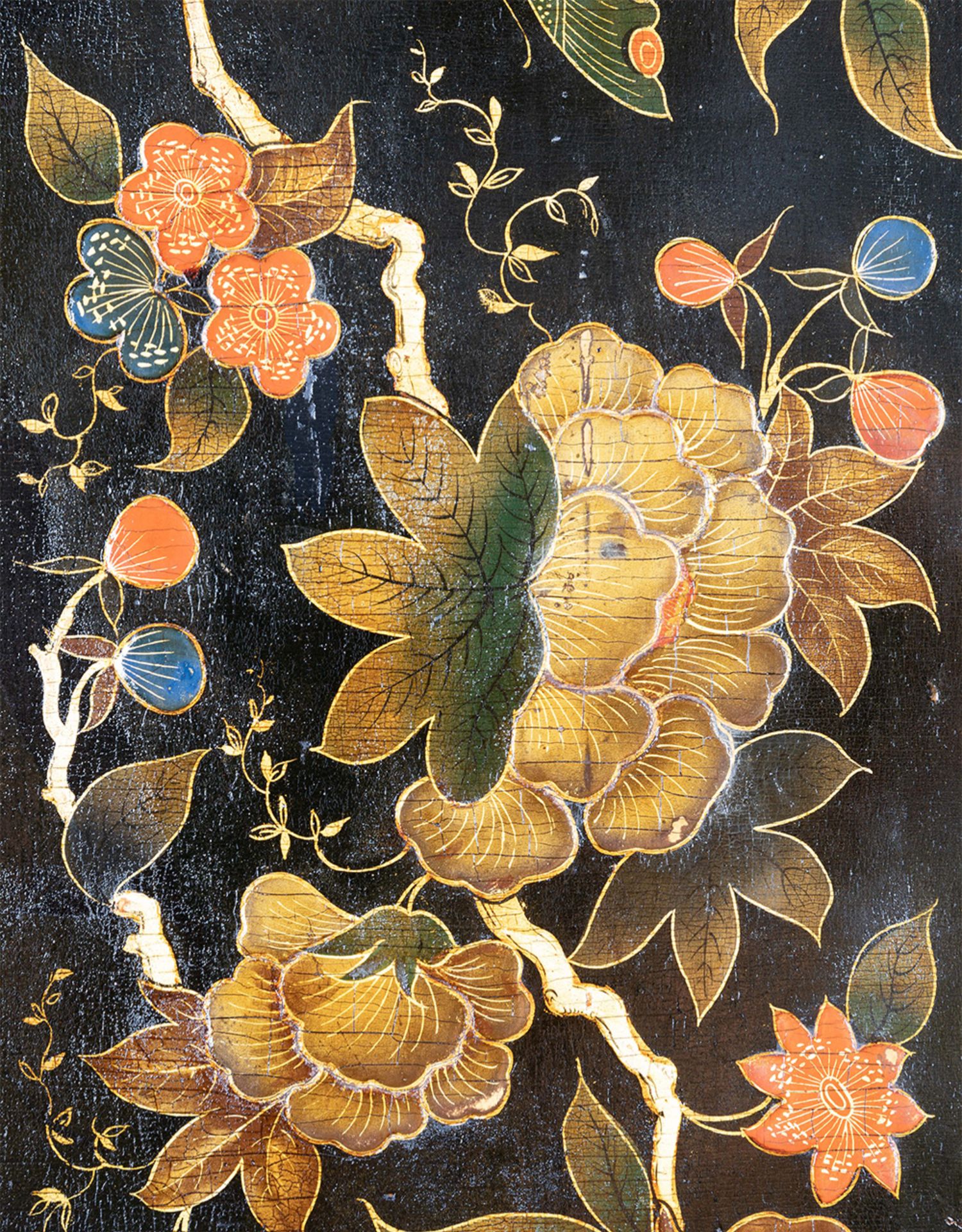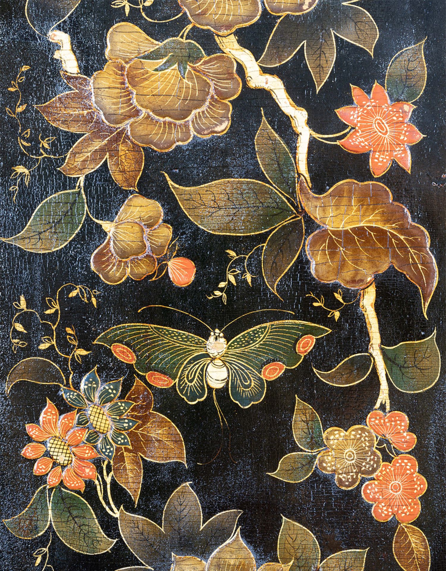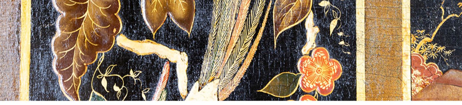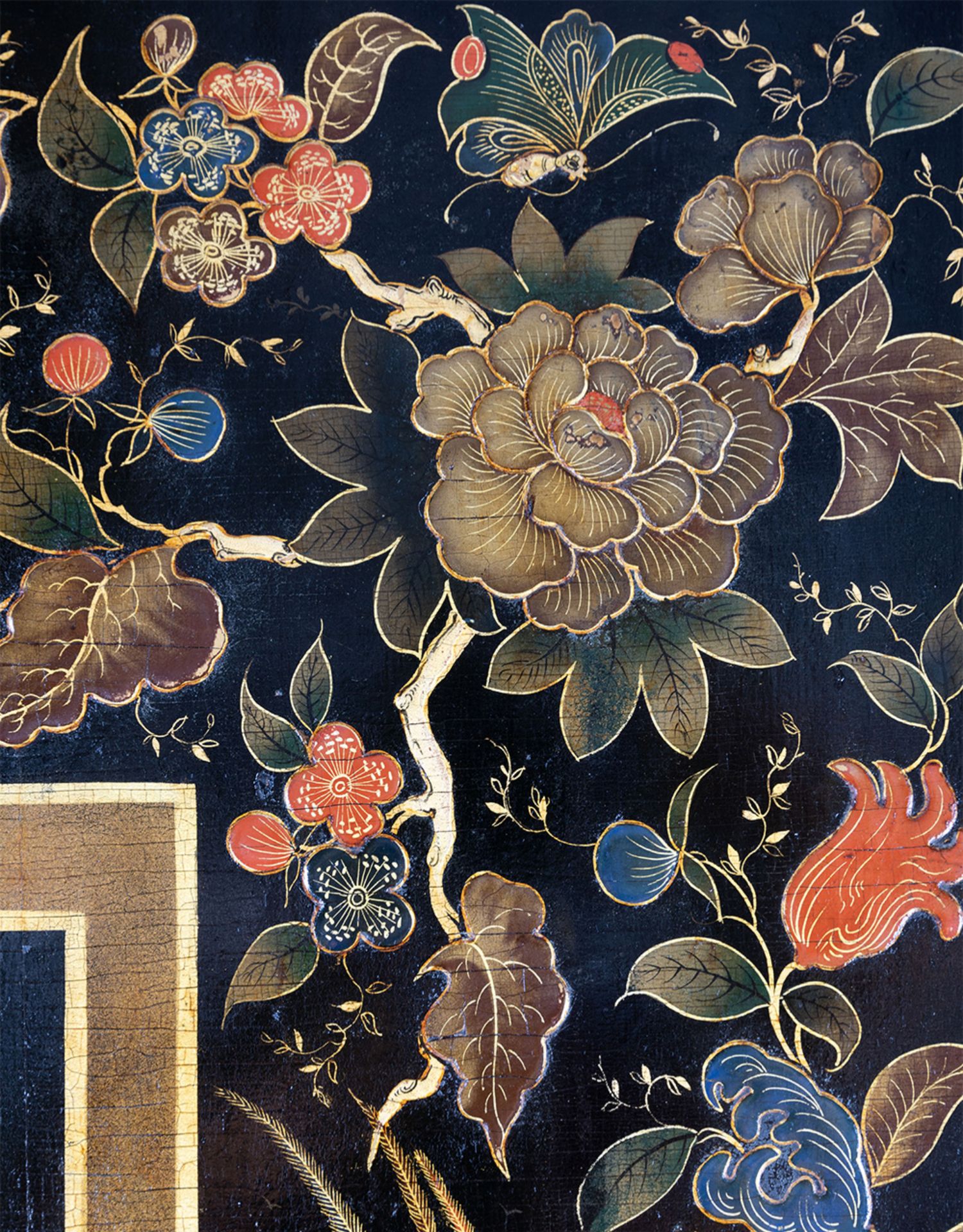 独角鹿西洋古董法国东方风格黑地五彩漆器山水亭台人物六扇屏风