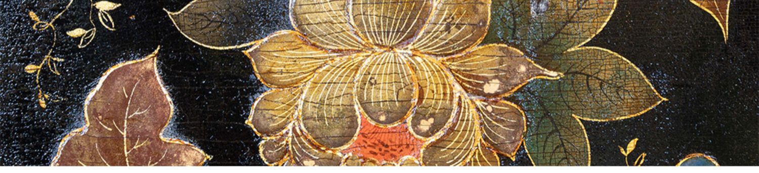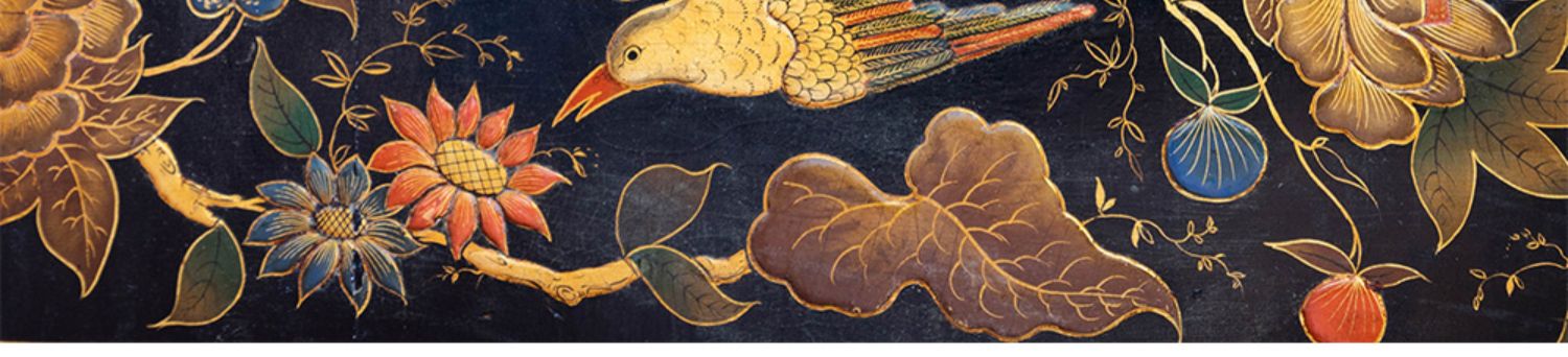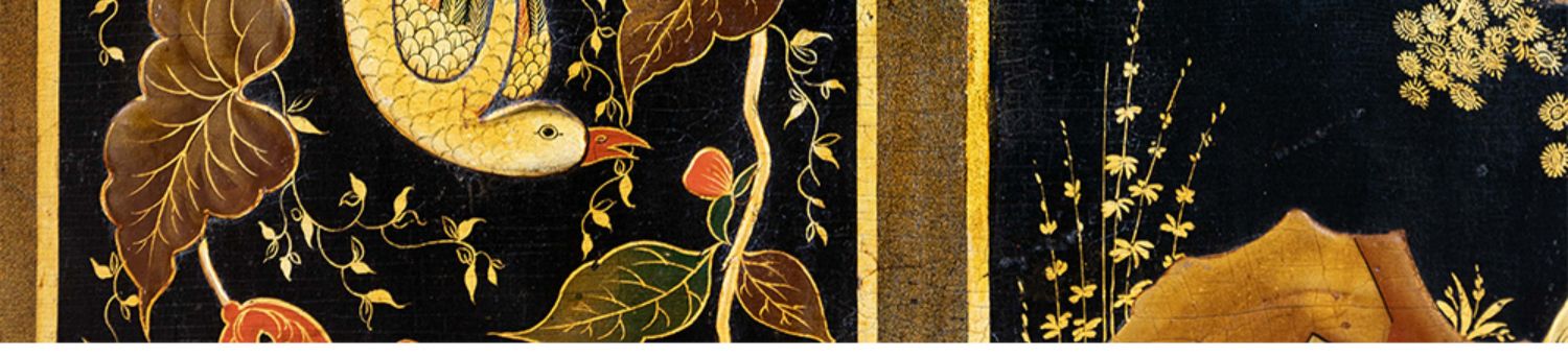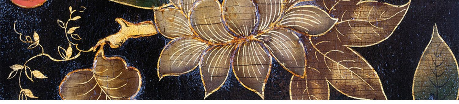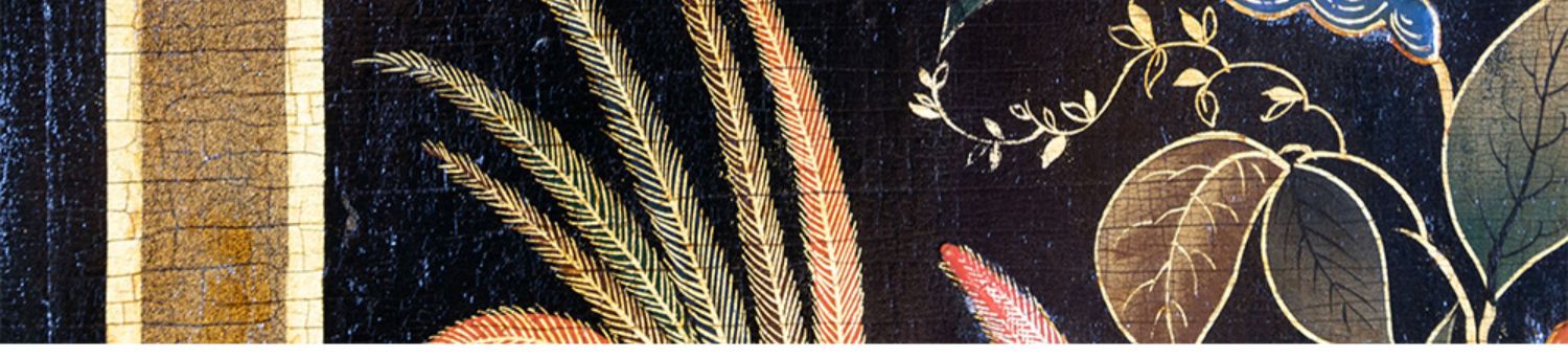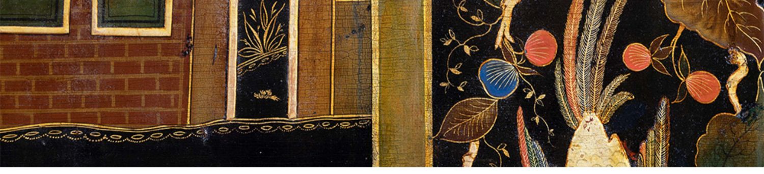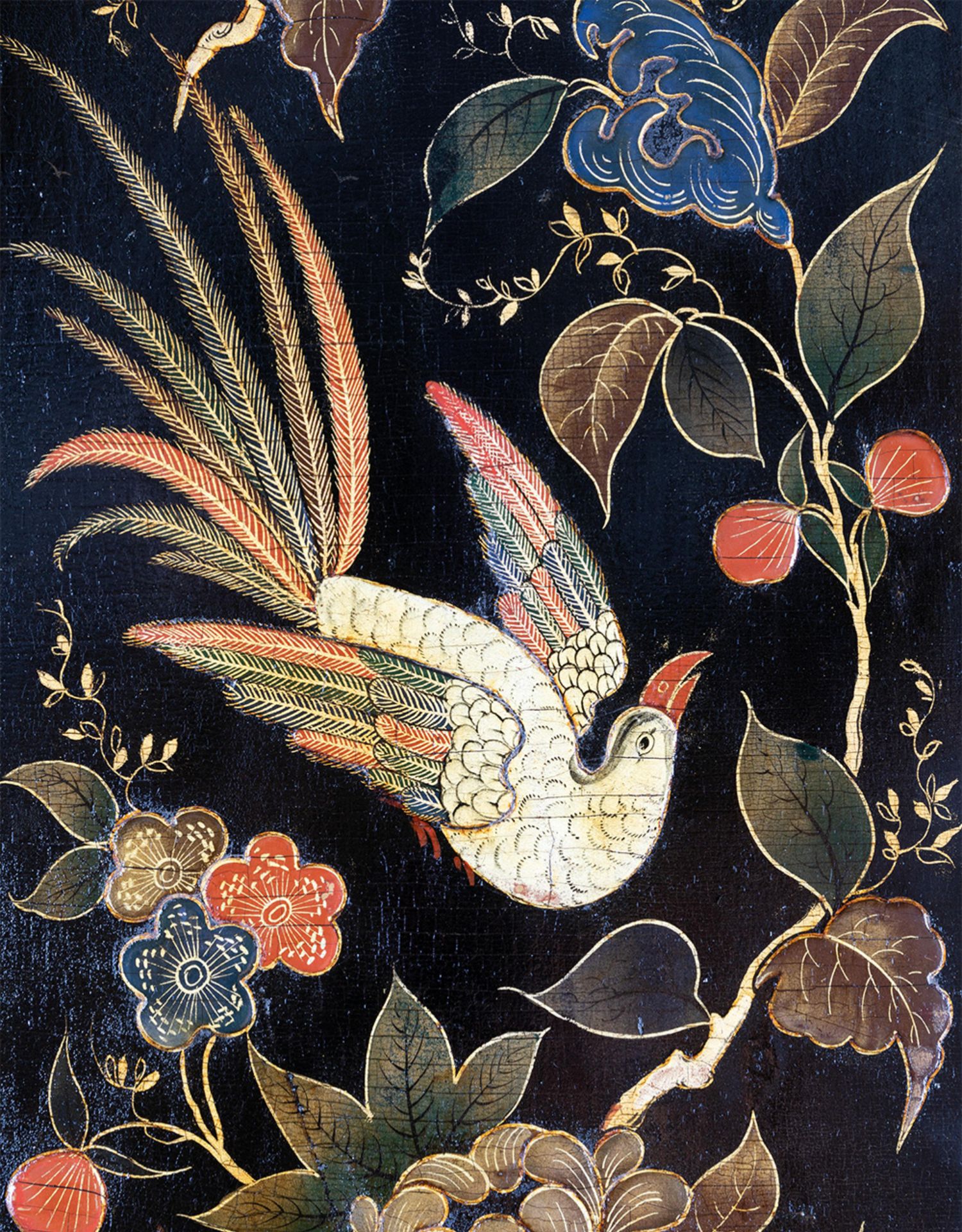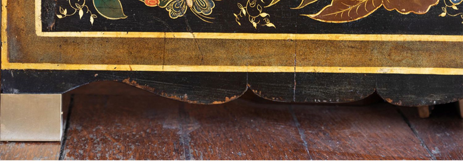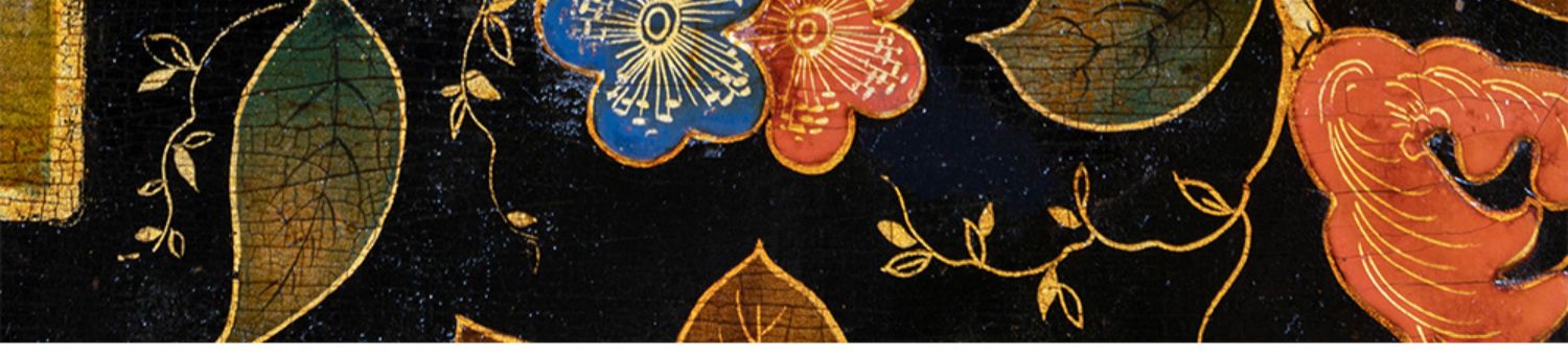 独角鹿西洋古董法国东方风格黑地五彩漆器山水亭台人物六扇屏风
