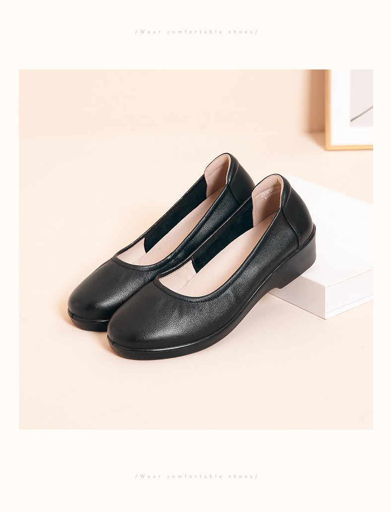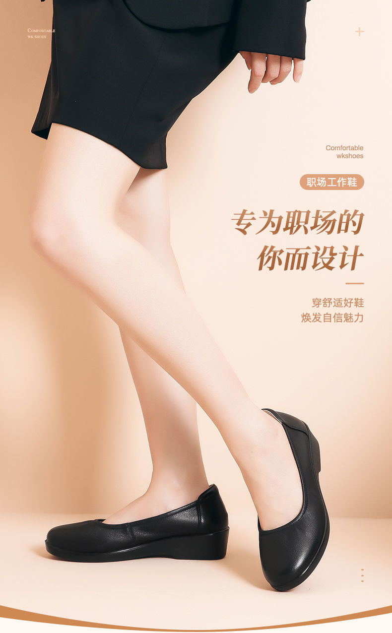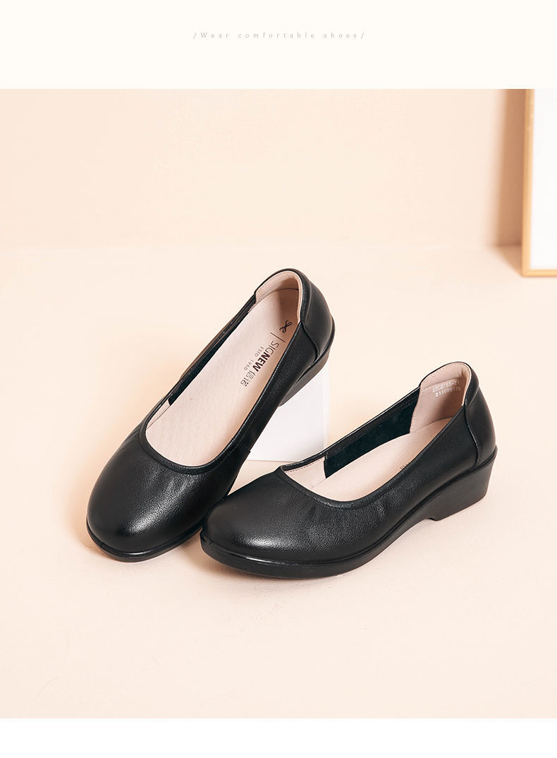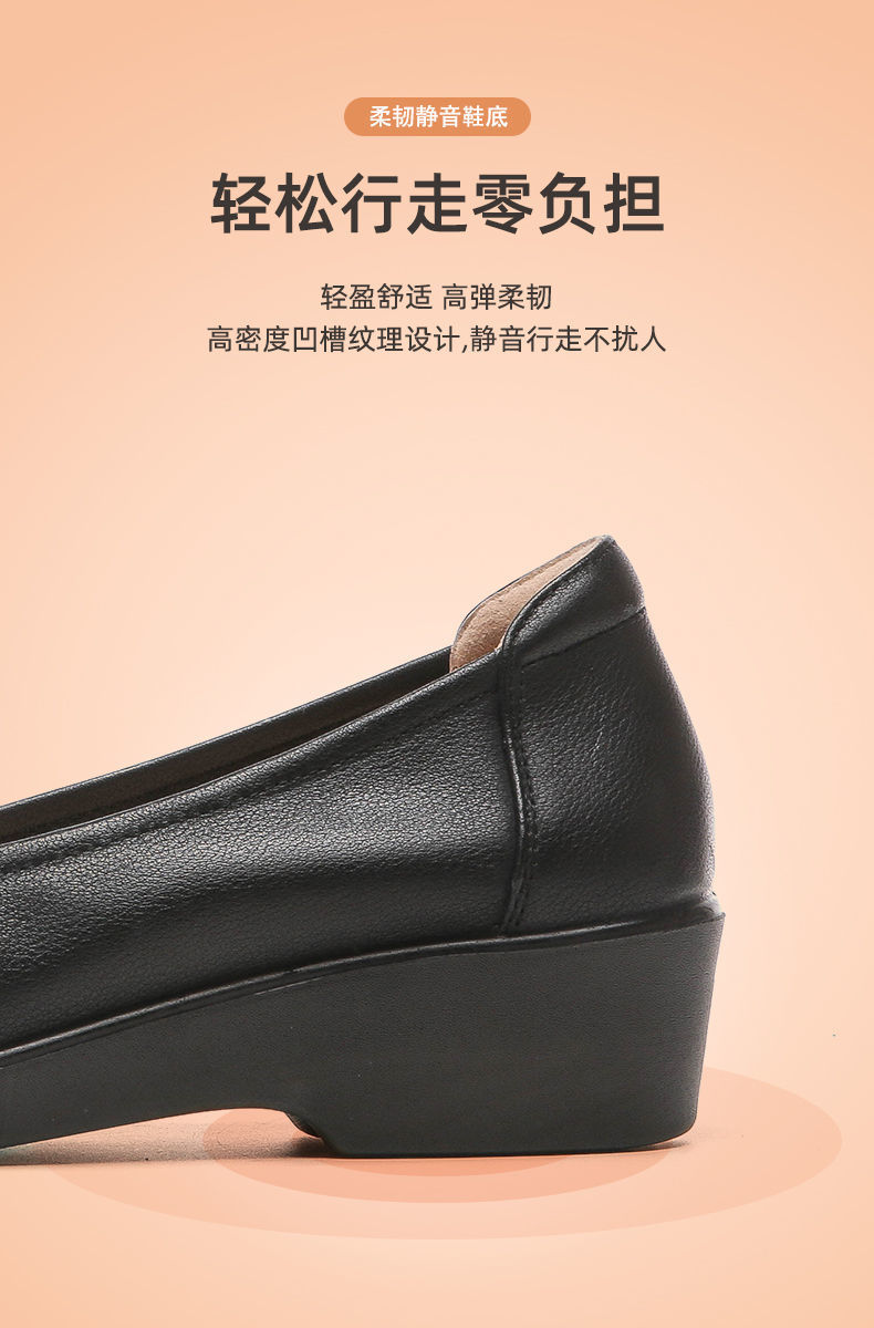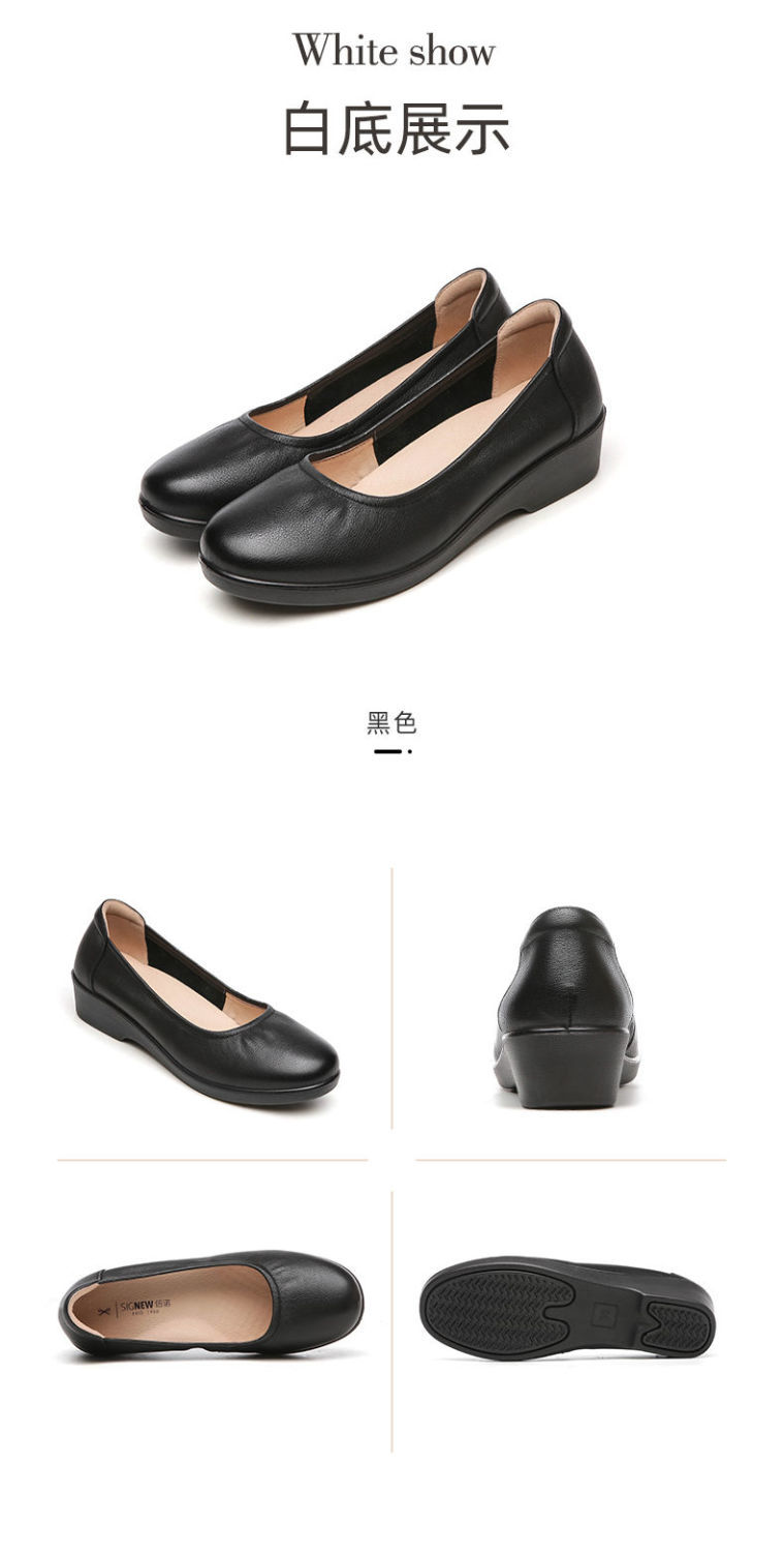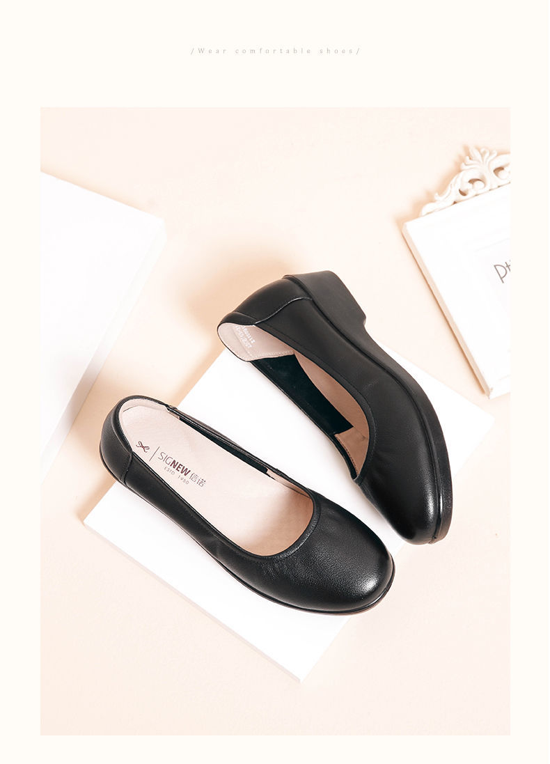 信诺舒适工作鞋女黑色职业坡跟真皮工装鞋空姐软底工鞋中跟软皮鞋22C8565-H21