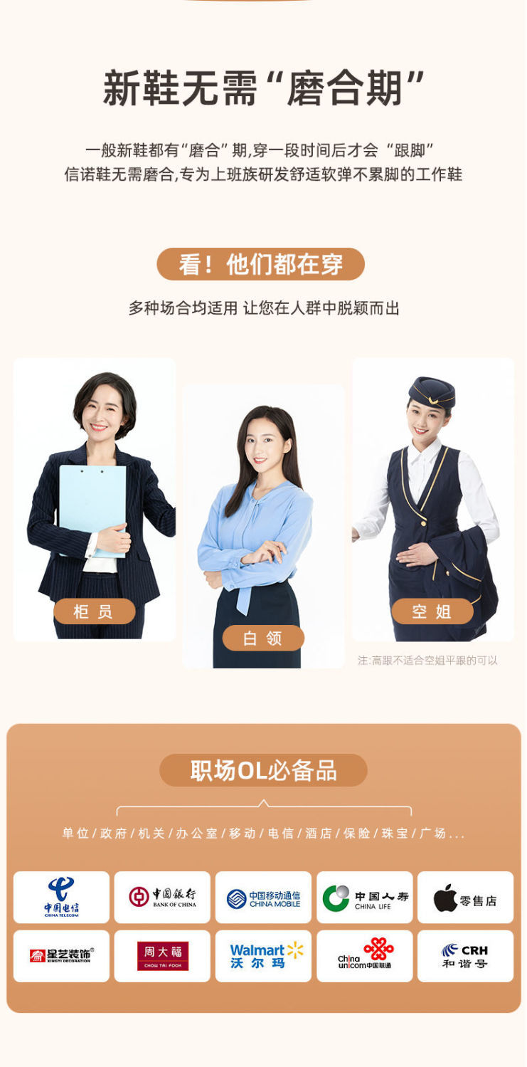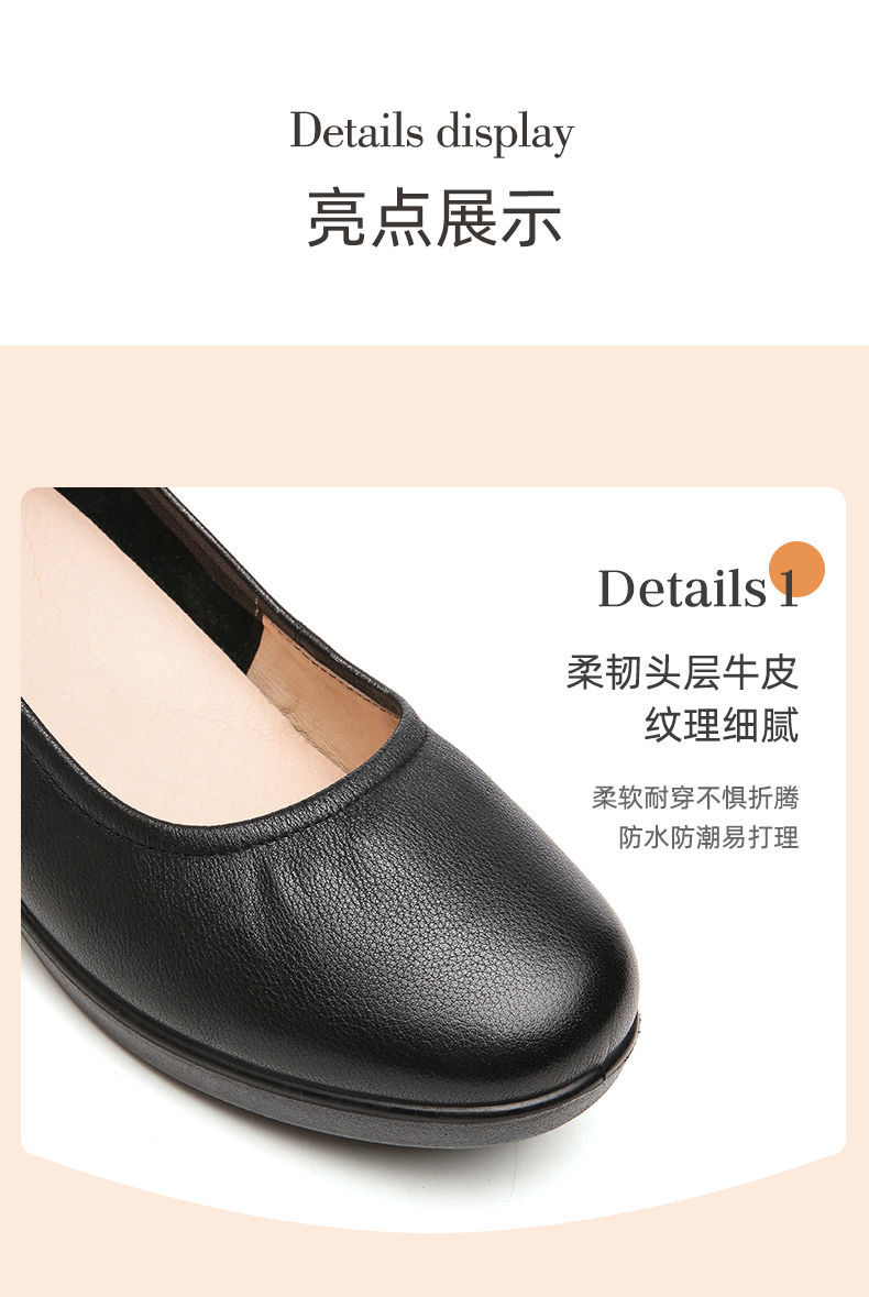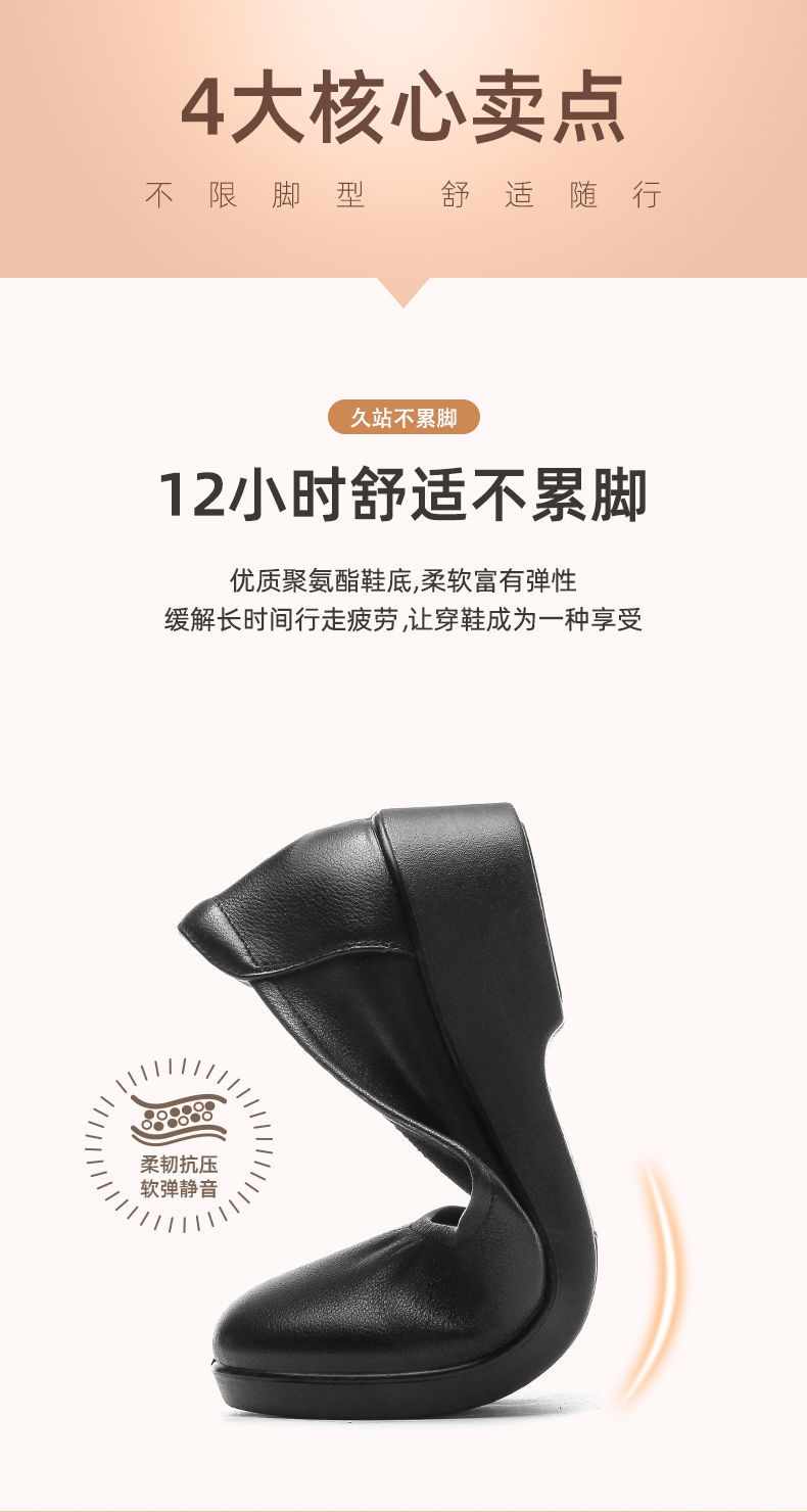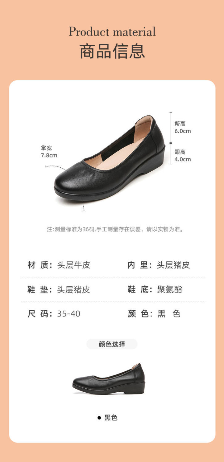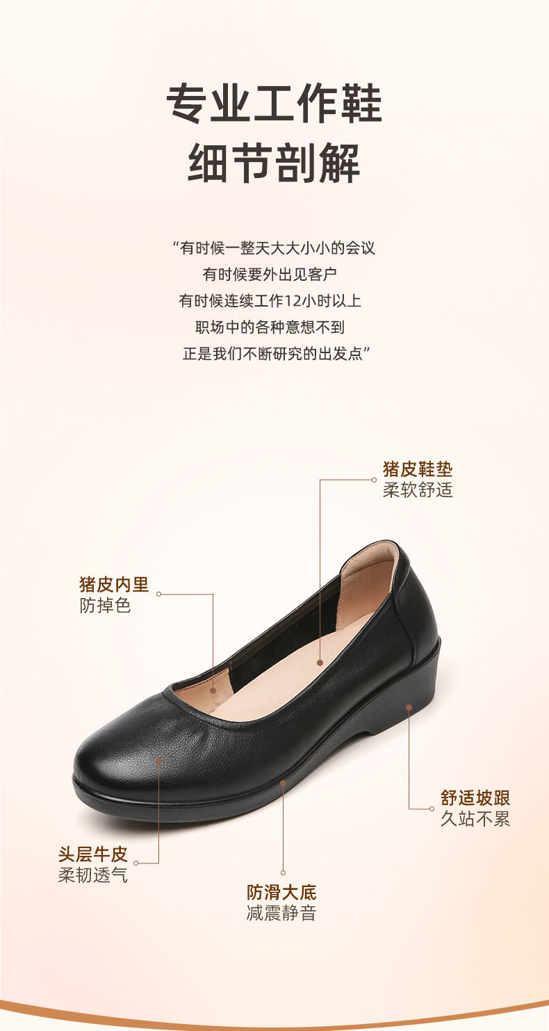信诺舒适工作鞋女黑色职业坡跟真皮工装鞋空姐软底工鞋中跟软皮鞋22C8565-H21