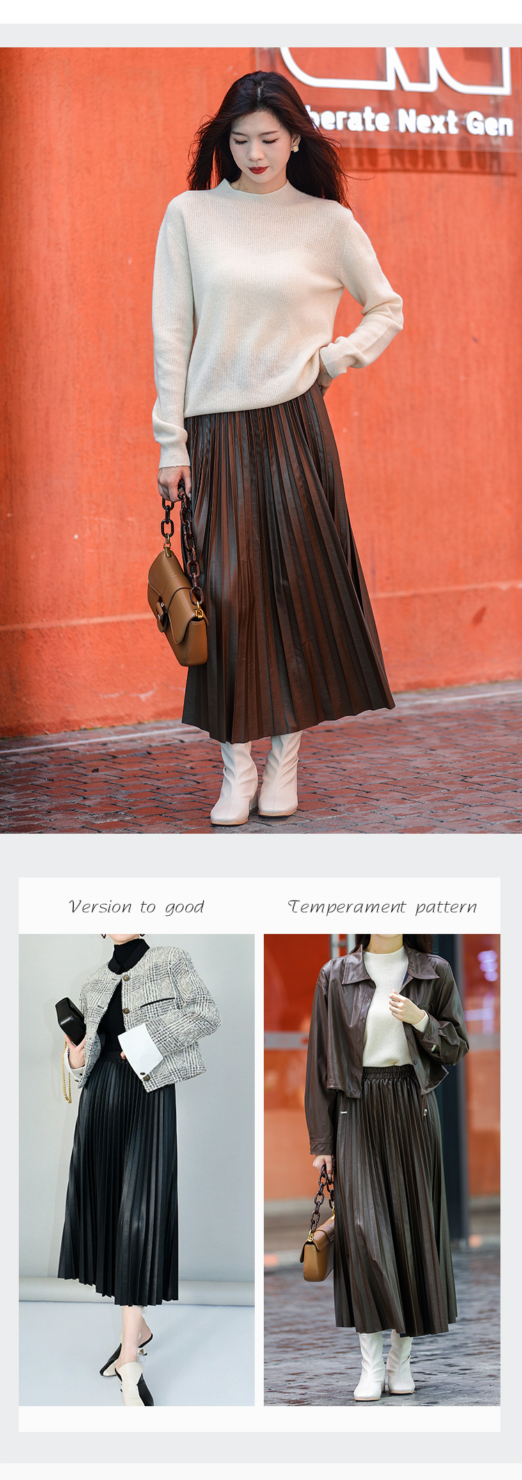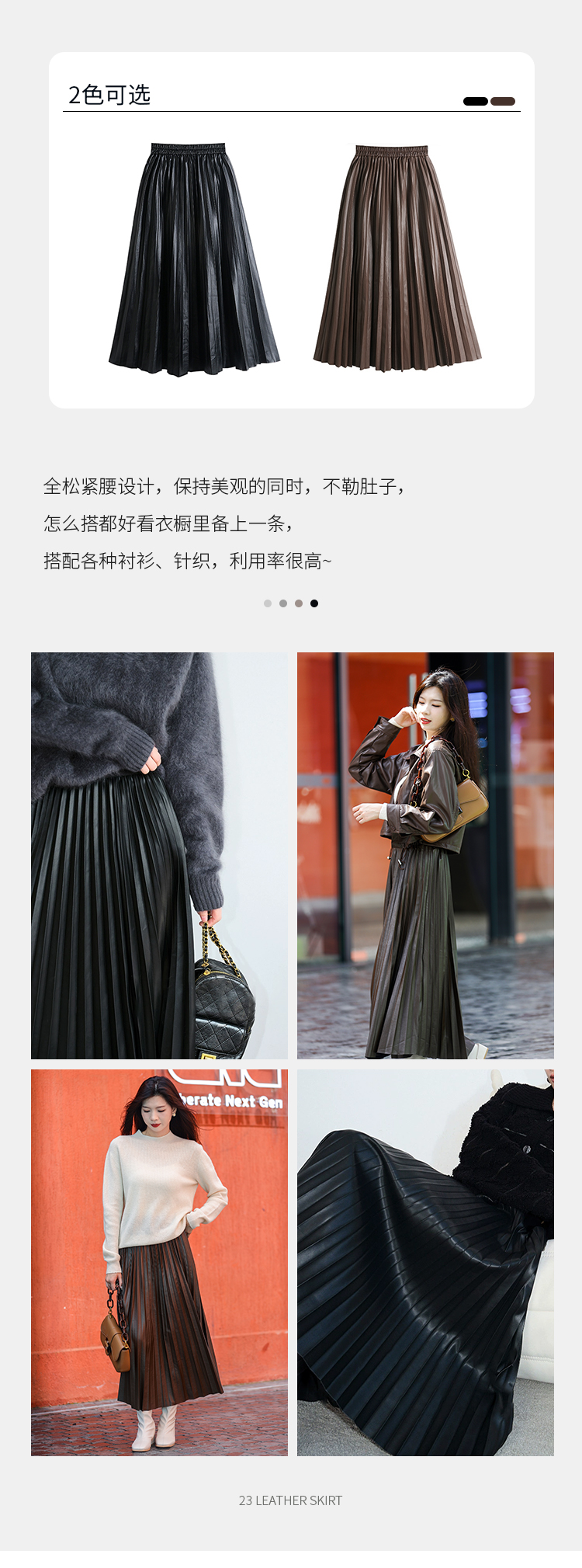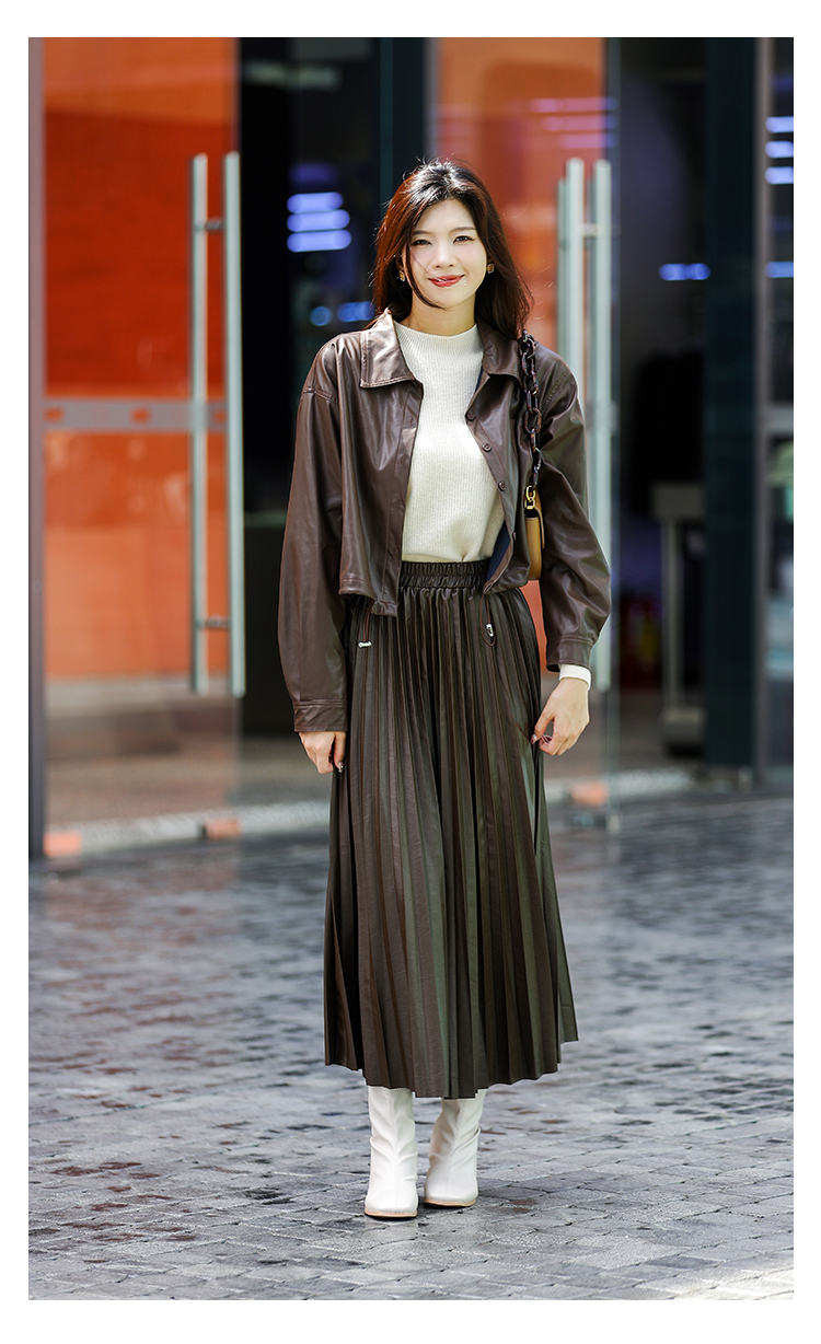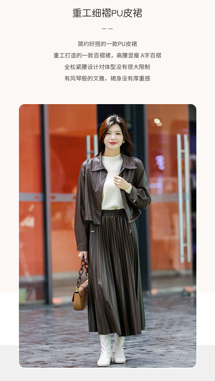 Avann软皮百褶PU裙