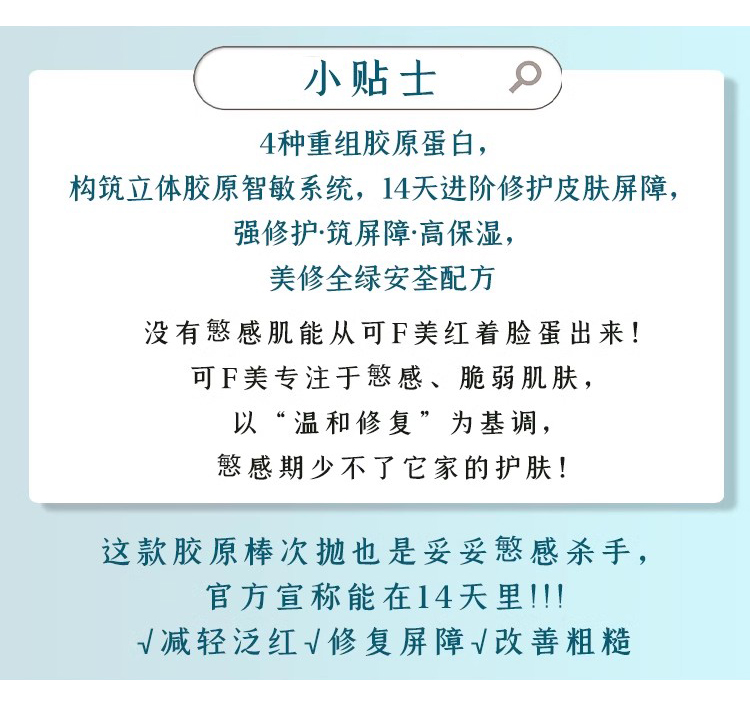 可复美胶原棒次抛精华重组胶原蛋白玻尿酸敏感肌屏障修护精华液 5支装