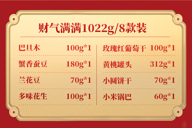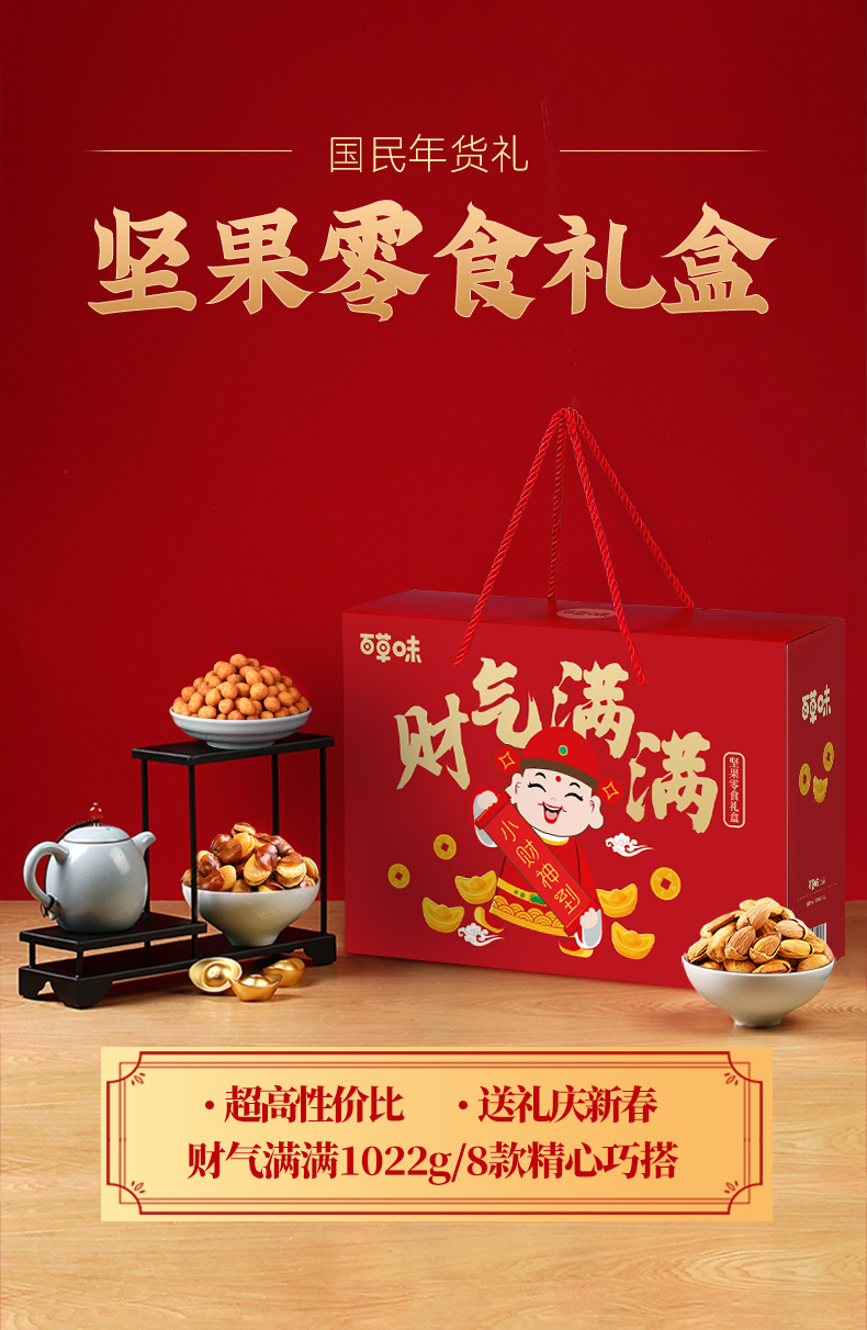 【百草味-坚果大礼包1022g/8袋】网红干果混合装一整箱零食礼盒