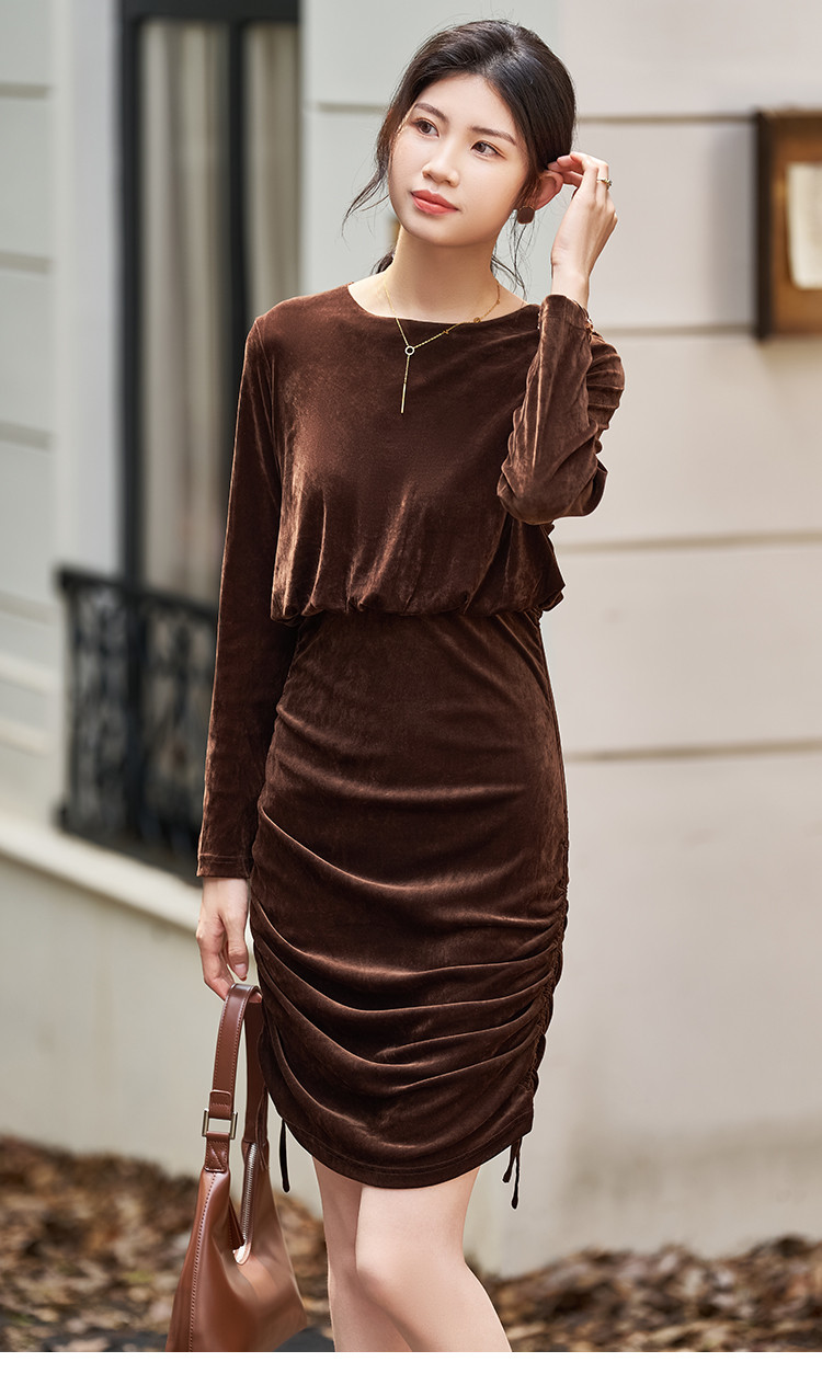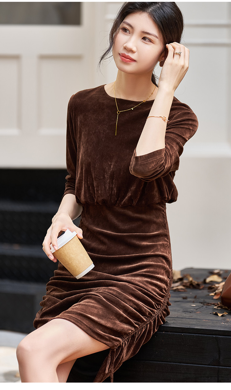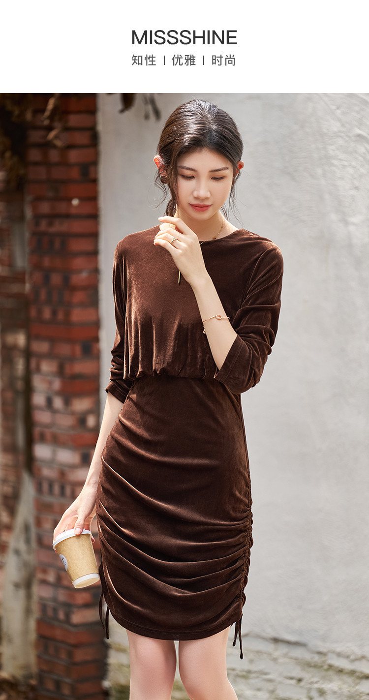 【纯欲卫衣裙】2026春季千金风复古植绒显瘦抽绳收腰连衣裙