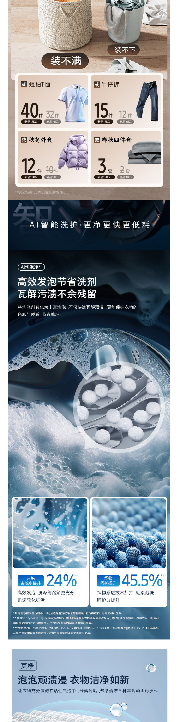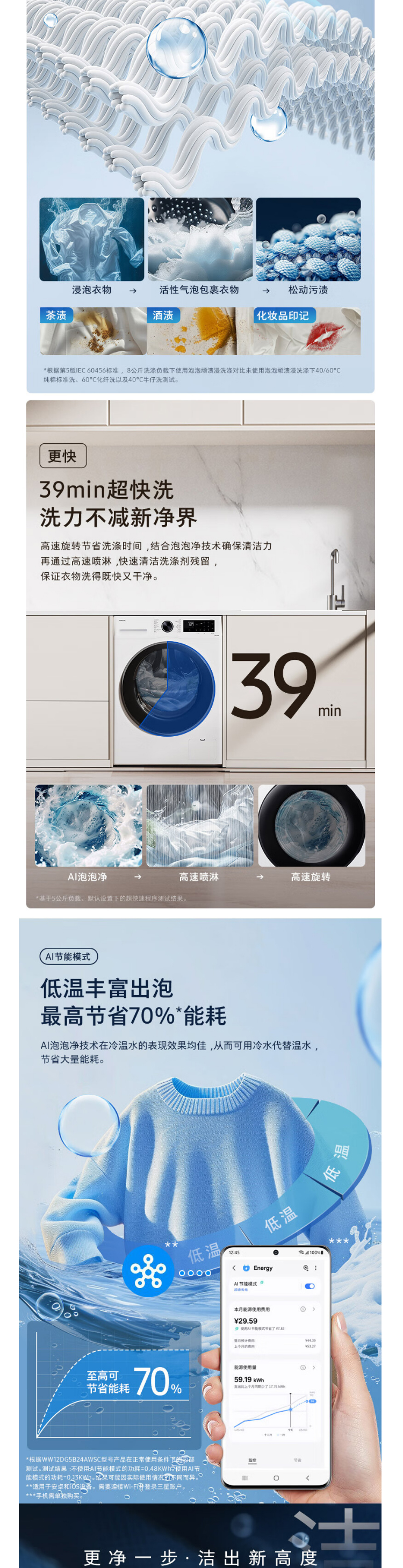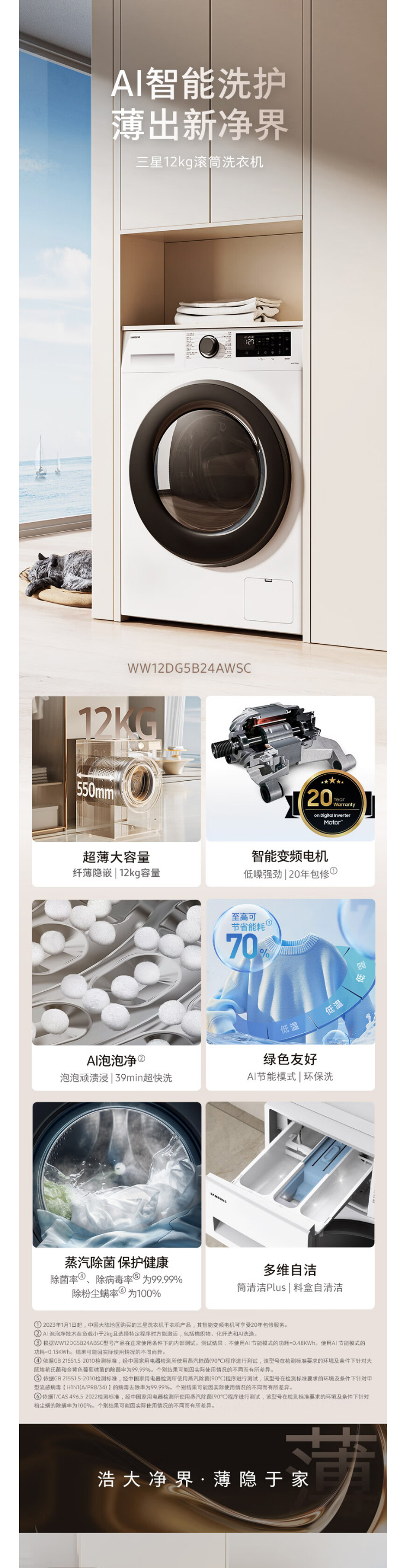 【年终燃购】三星(SAMSUNG)滚筒洗衣机全自动三星AI神超薄12公斤大容量蒸汽除菌洗衣机【比10KG大2KG】WW12DG5B24AWSC月光白