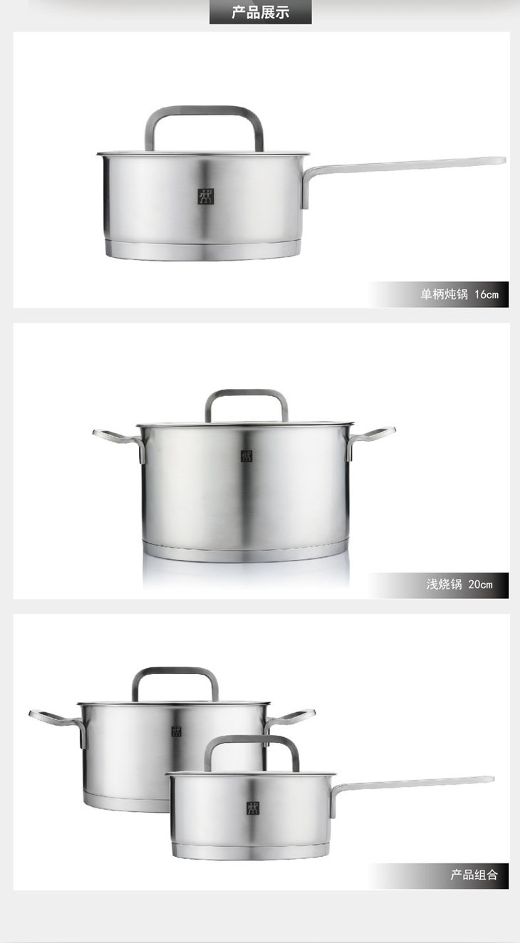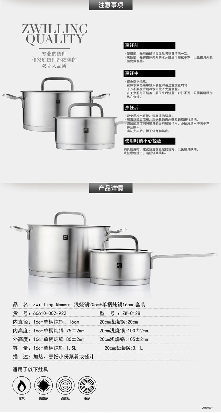 双立人 Zwilling Moment 20cm浅烧锅+16cm单柄炖锅 ZW-C128
