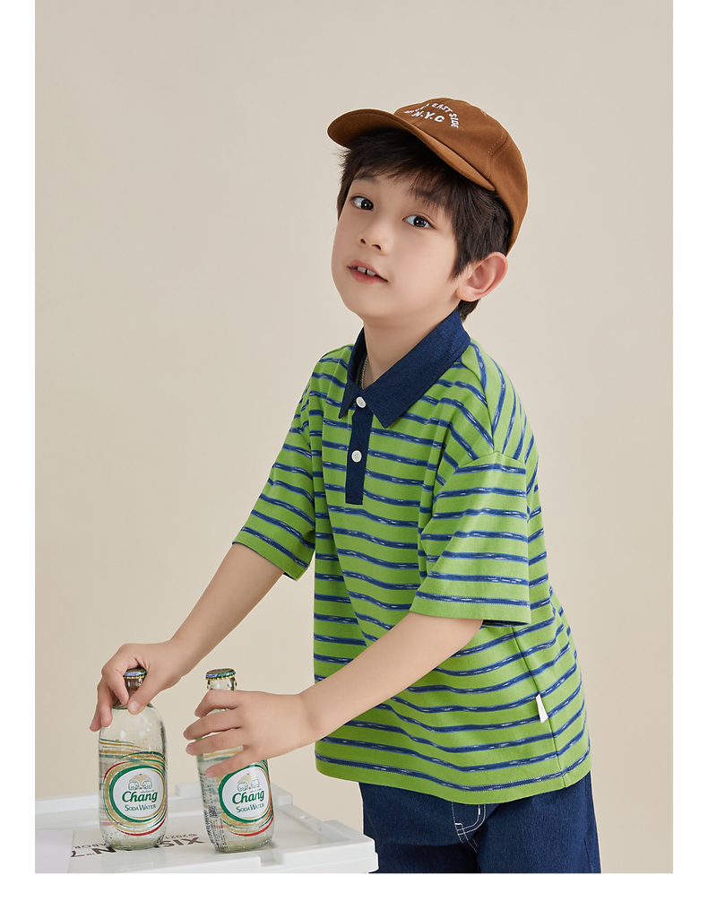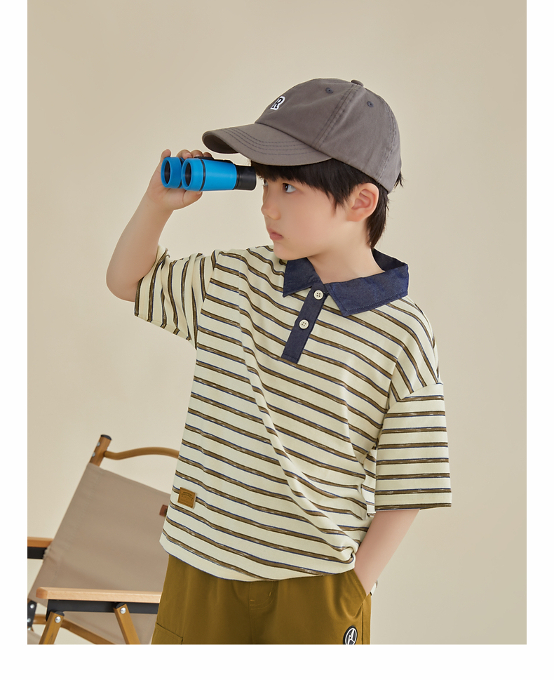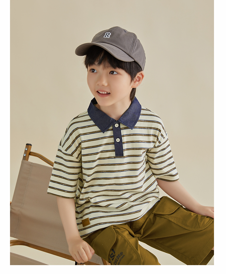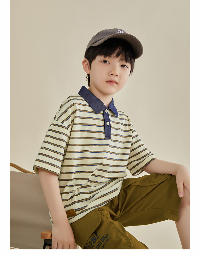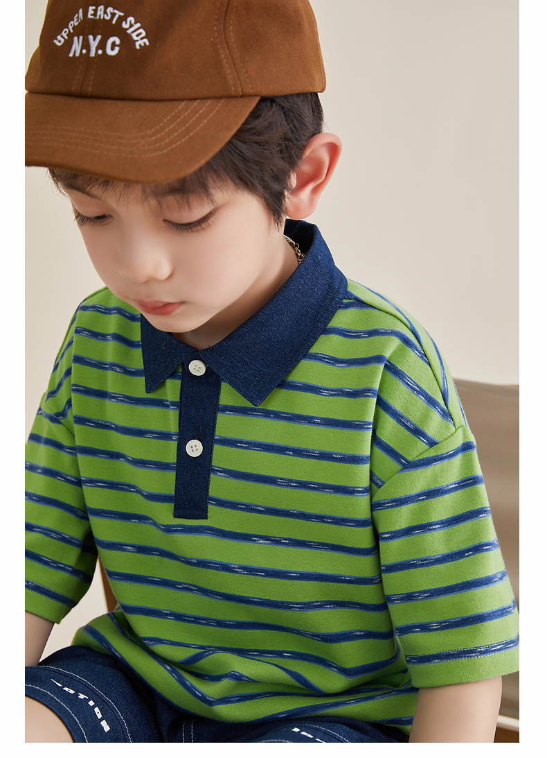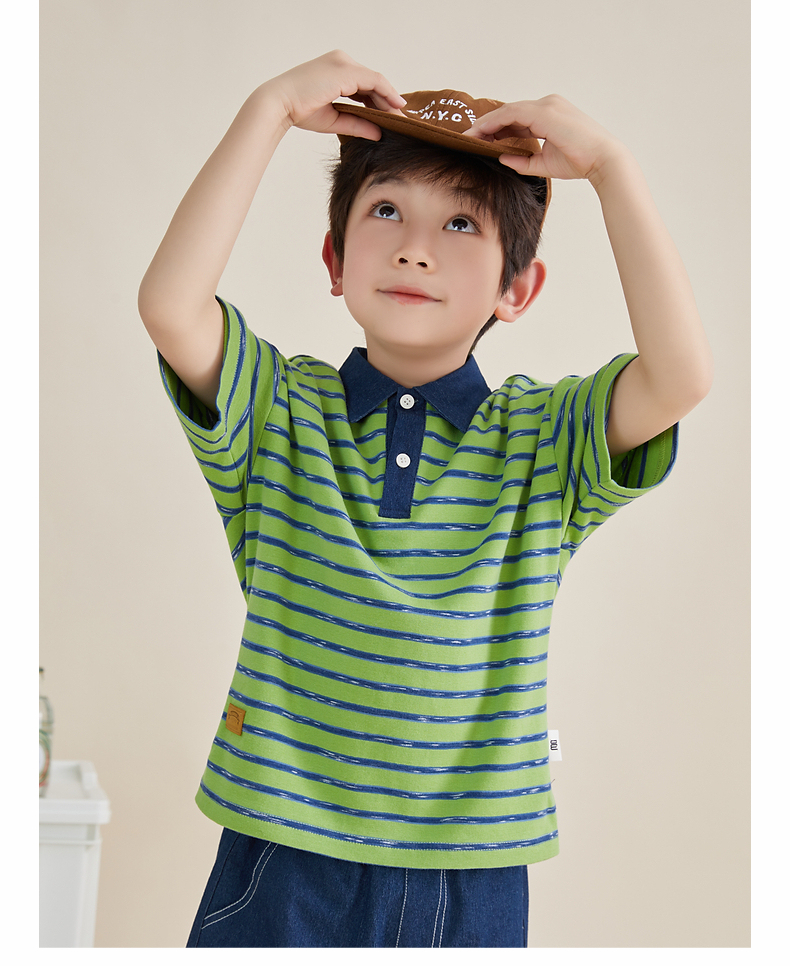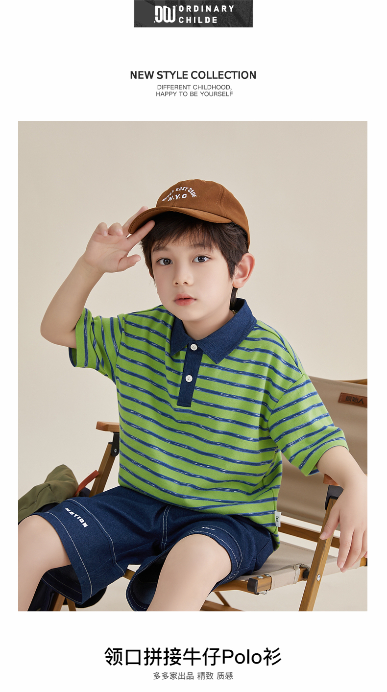 多多家男童条纹polo衫夏季短袖儿童翻领T恤拼接牛仔中大童上衣薄PL3X6322B