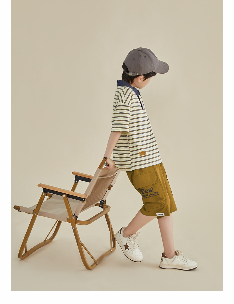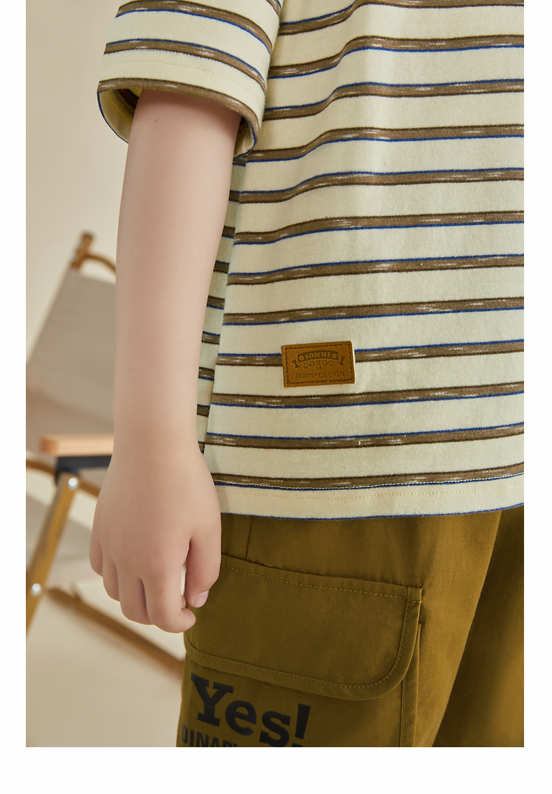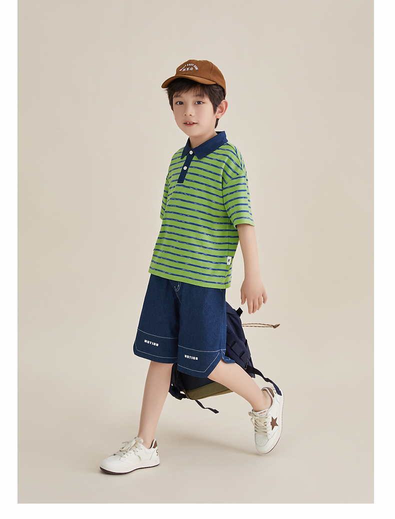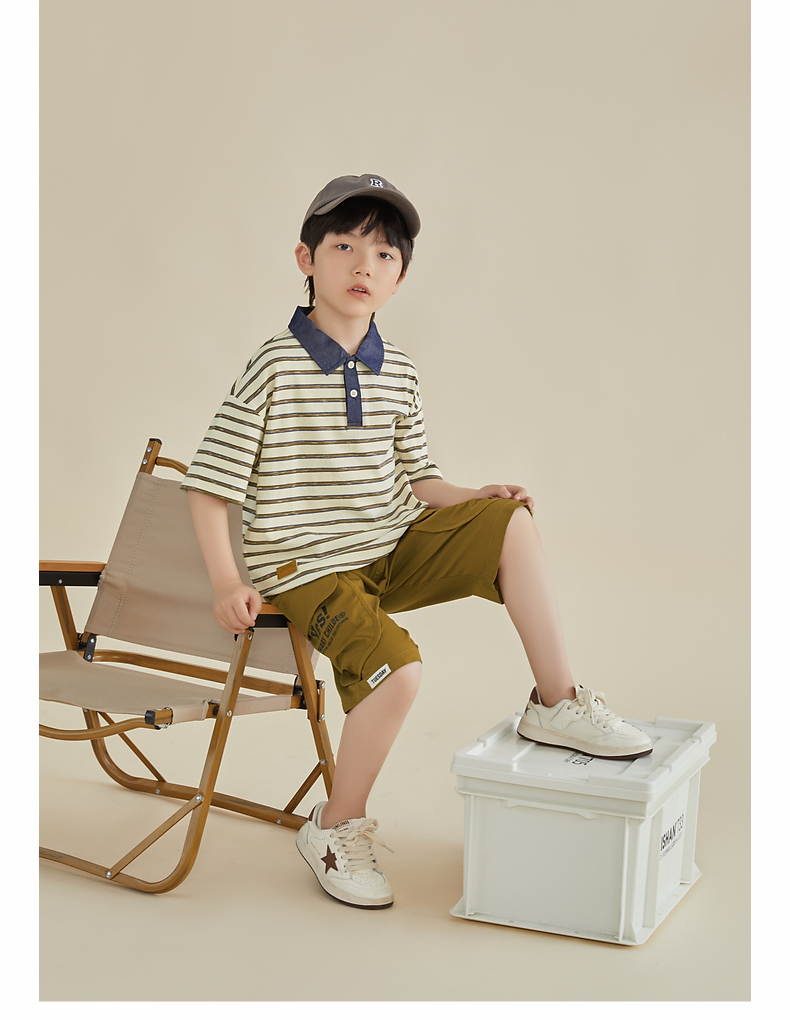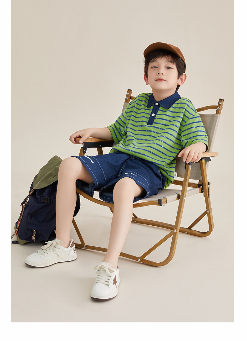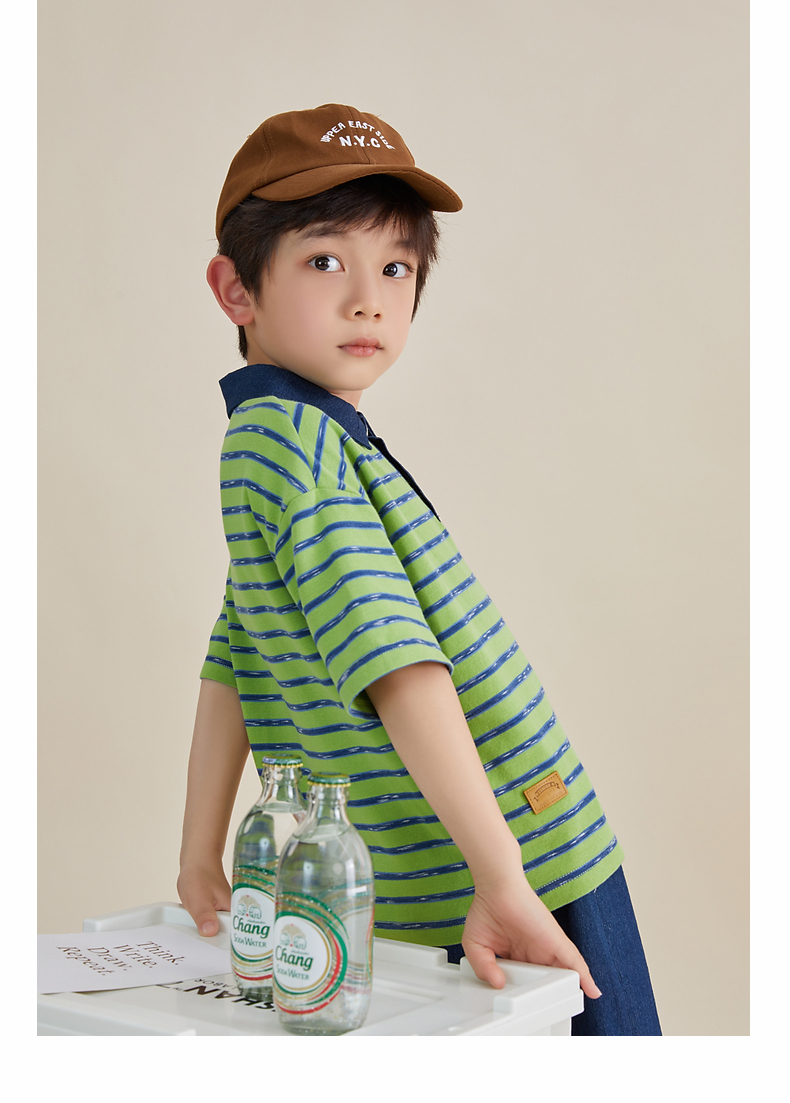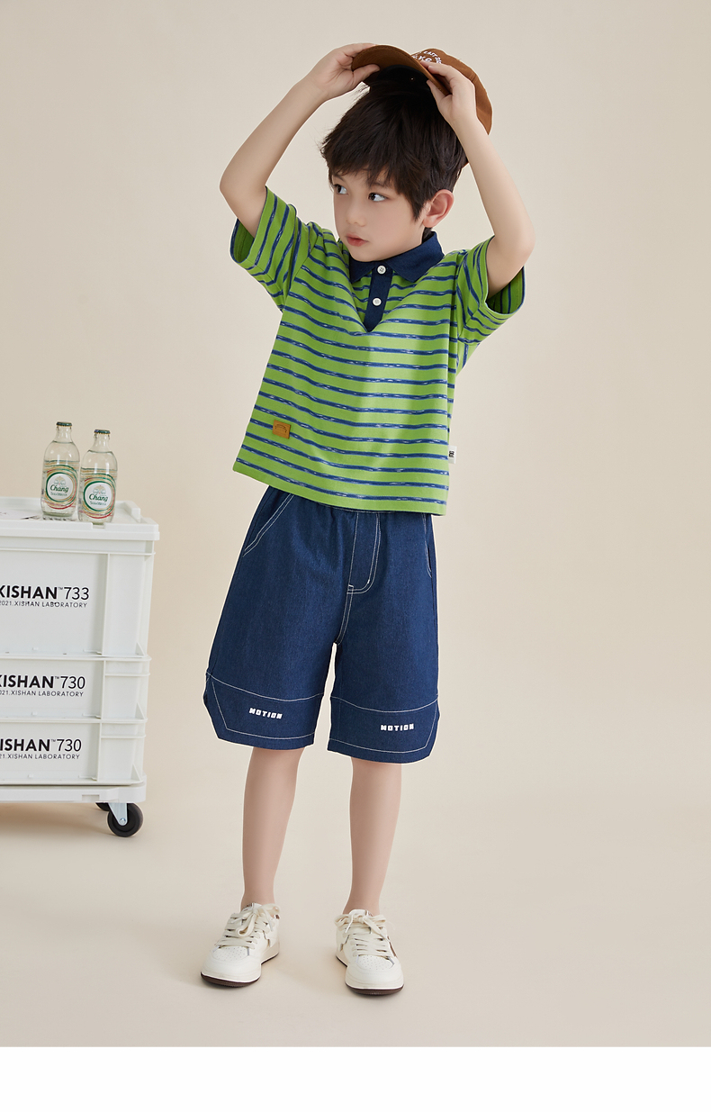 多多家男童条纹polo衫夏季短袖儿童翻领T恤拼接牛仔中大童上衣薄PL3X6322B