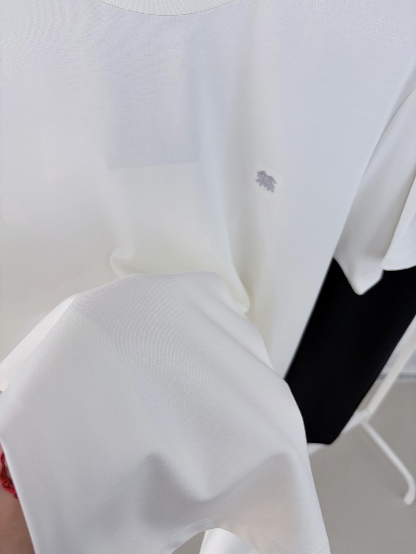 胸前经典同色小刺绣,低调又不失大气。