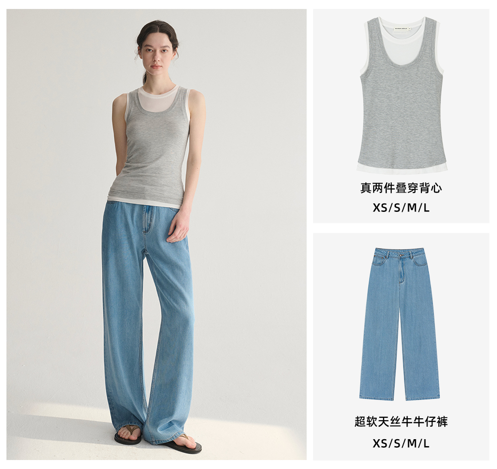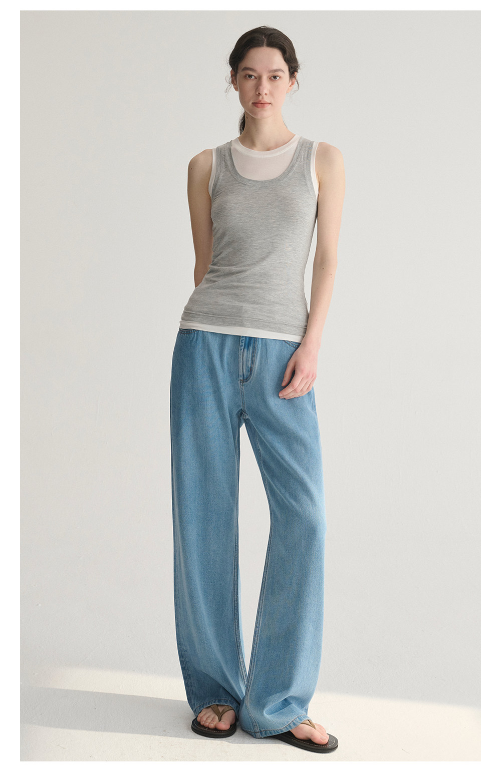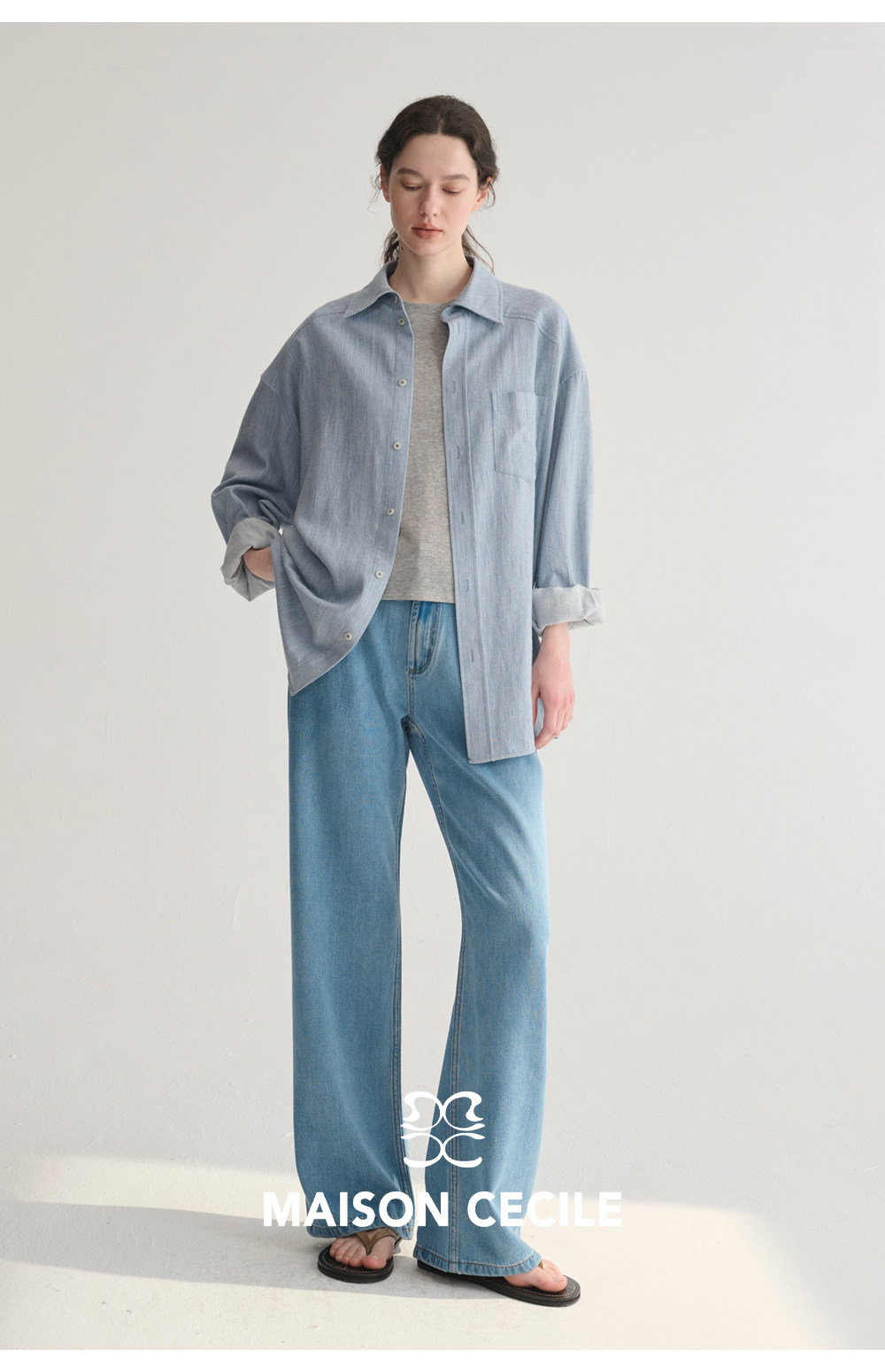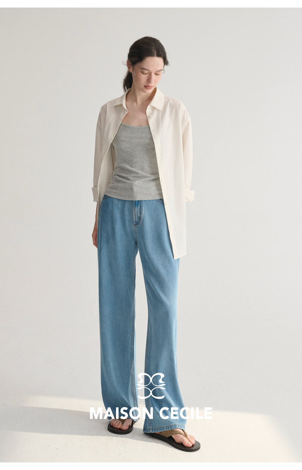 MC 两色薄软凉爽莱赛尔牛仔垂感舒适百搭直筒牛仔裤MAISON CECILE