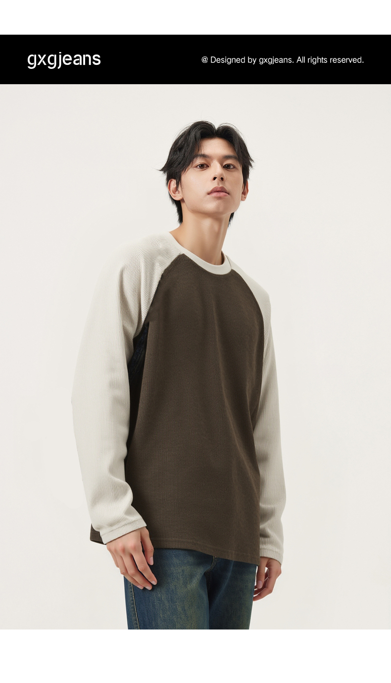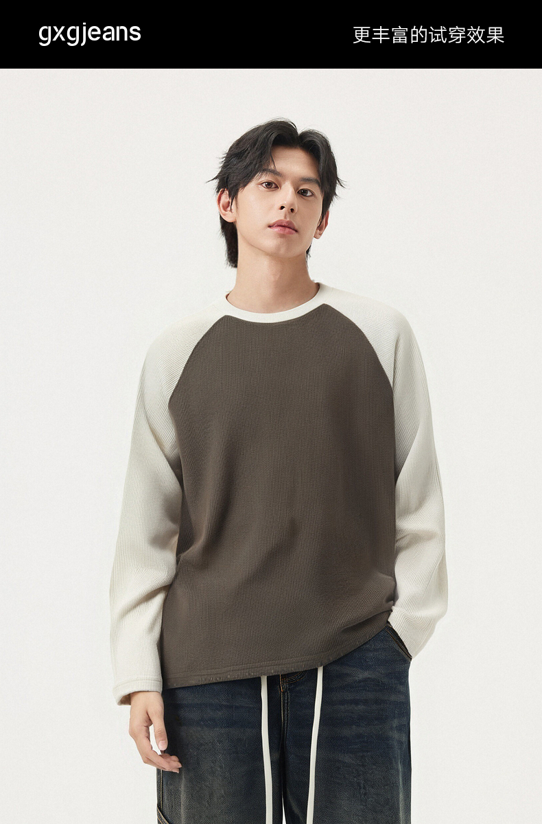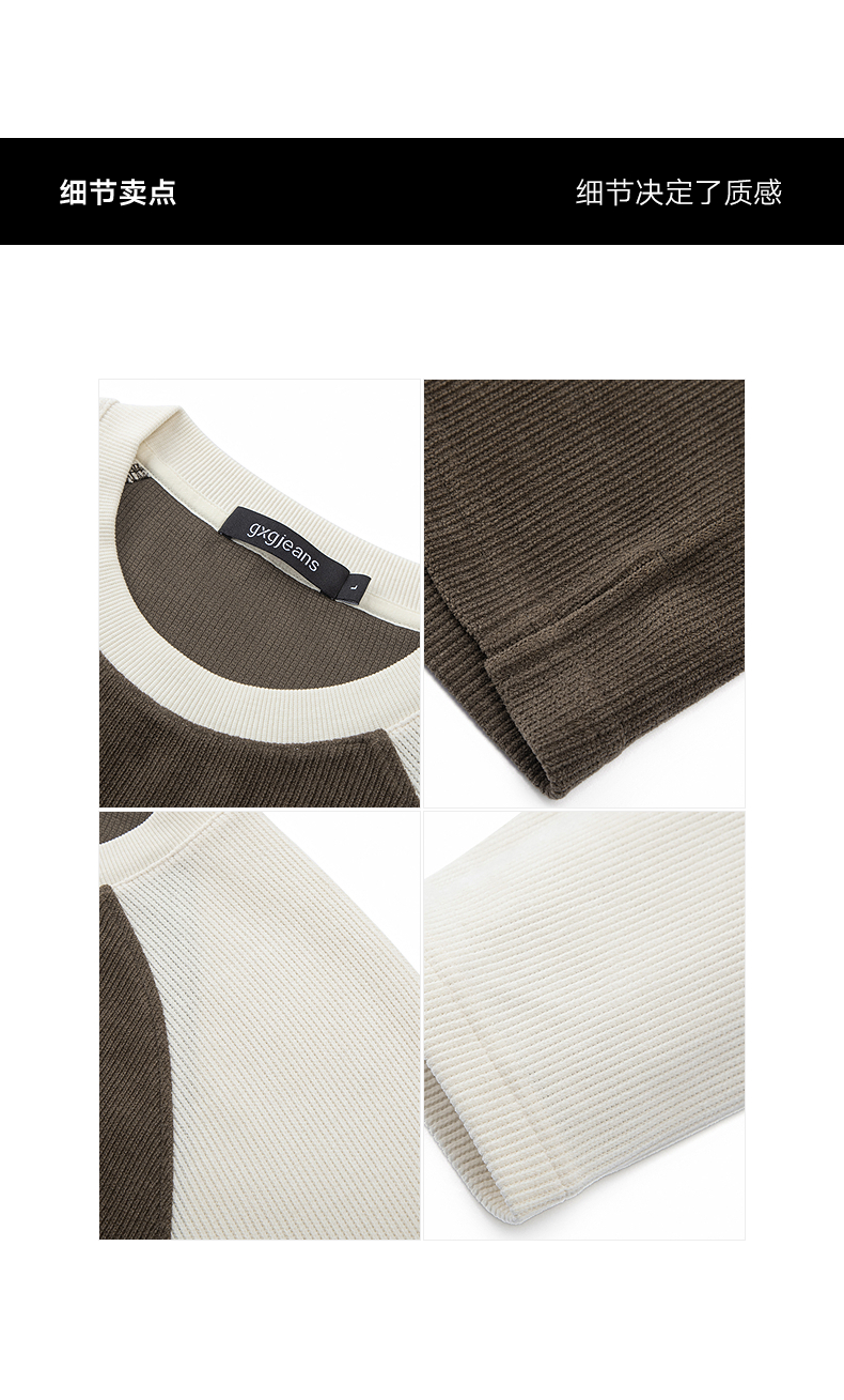 gxg.jeans男装 肌理感撞色拼接设计时尚宽松圆领卫衣男 25秋热卖