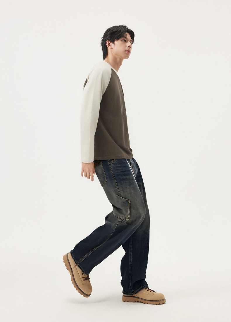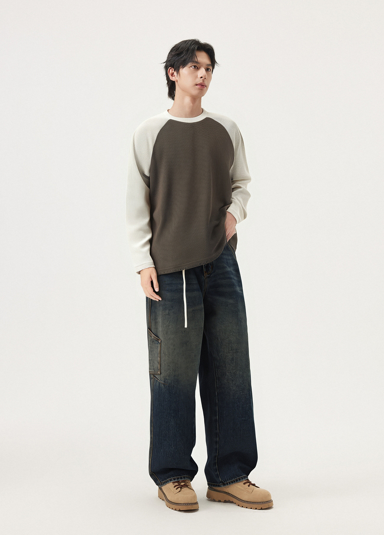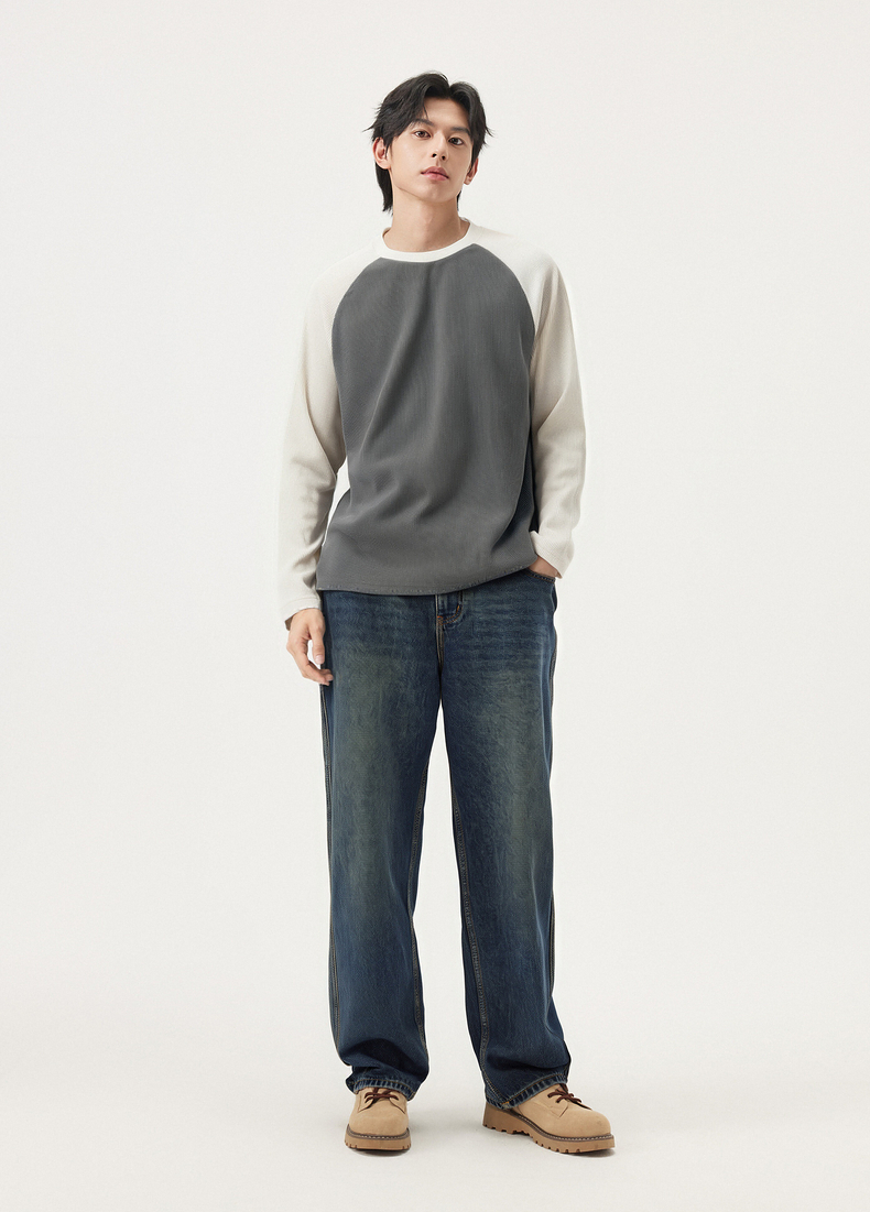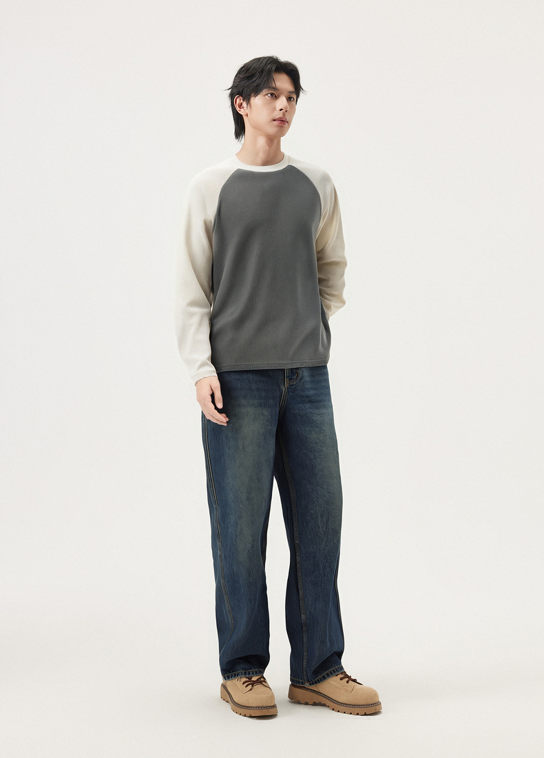 gxg.jeans男装 肌理感撞色拼接设计时尚宽松圆领卫衣男 25秋热卖