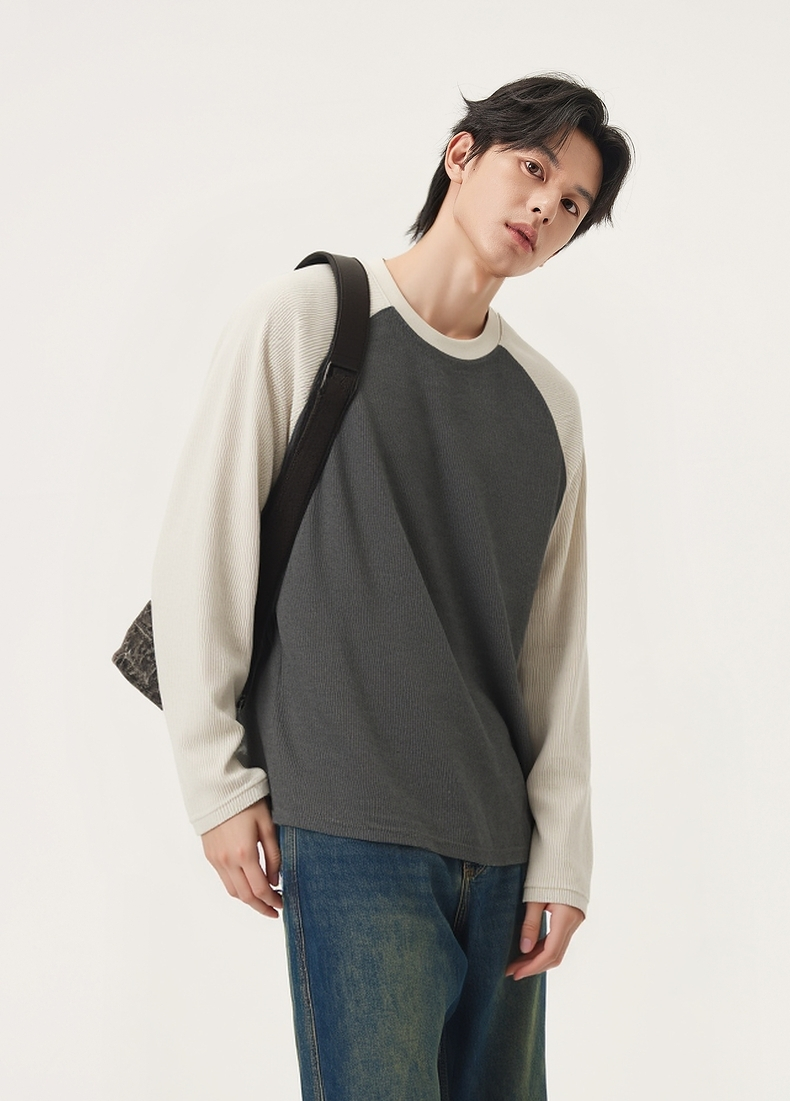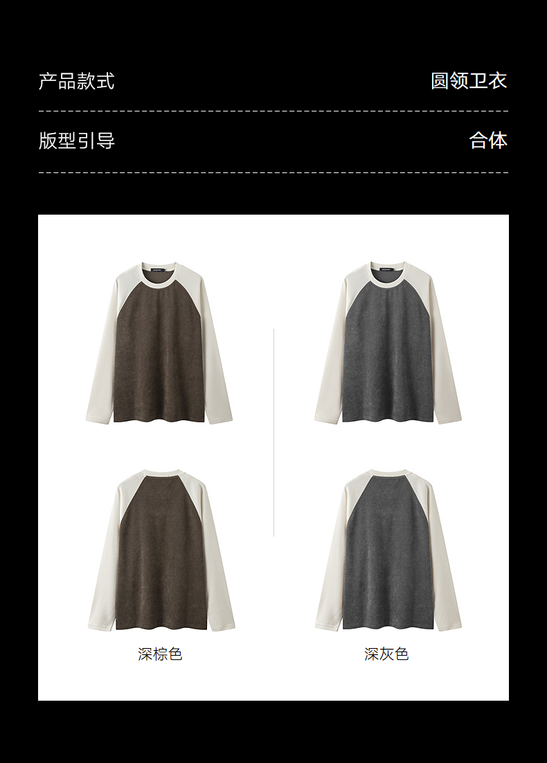 GXG男装 圆领卫衣雪尼尔撞色拼接长袖内搭上衣 2025秋季新品