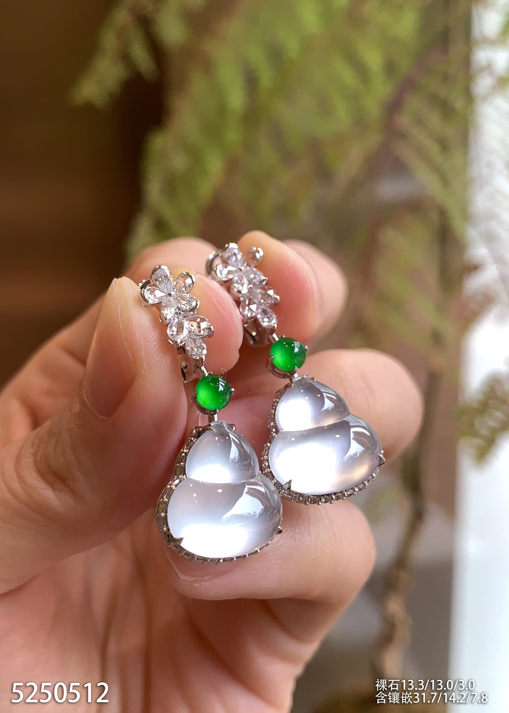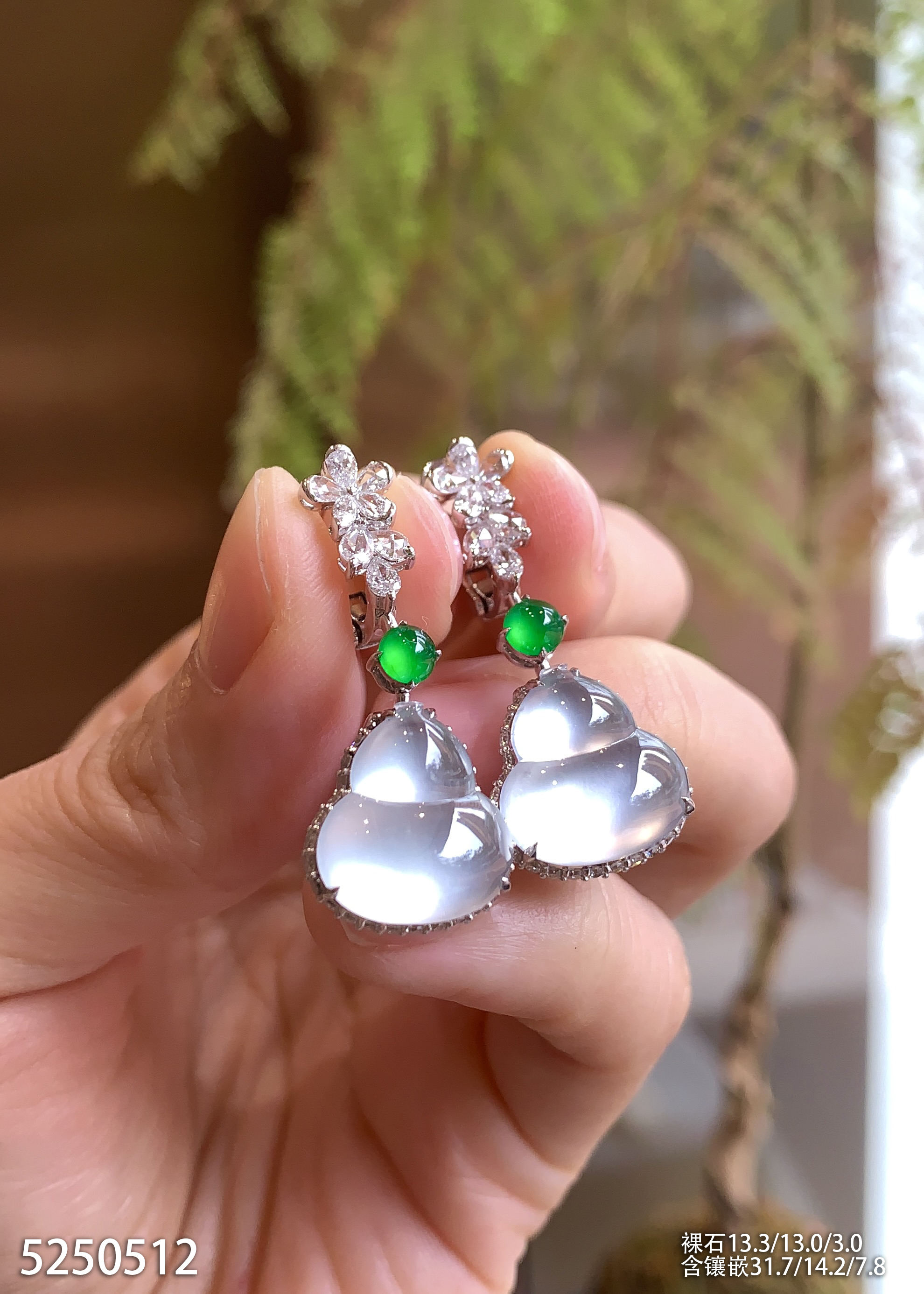 高冰种艳绿蛋面耳钉【6310503】具体价格微信咨询