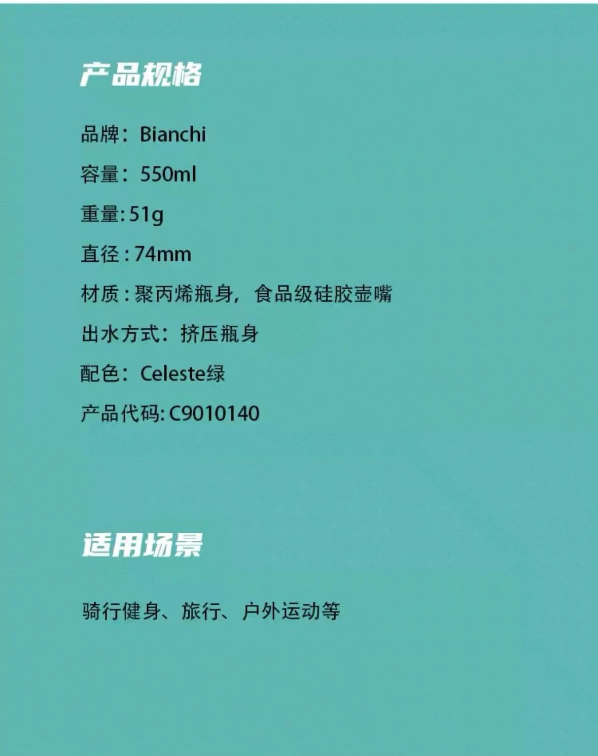 高颜值 + 高性能,官方出品值得信赖。即日起,欢迎前往Bianchi官方门店或合作零售商体验选购。为你的骑行生活添一抹意式格调,从Bianchi原装水壶开始。