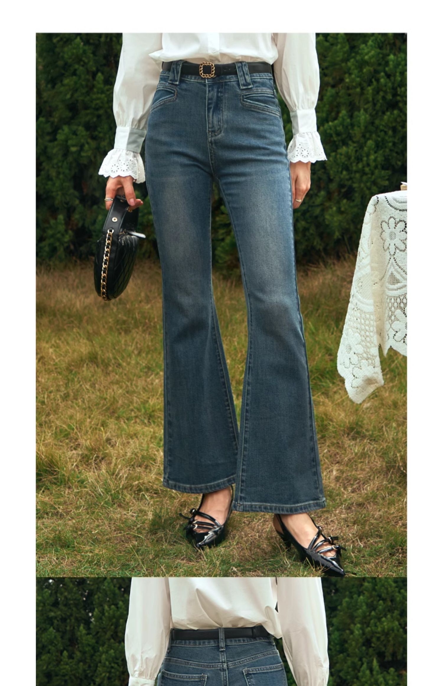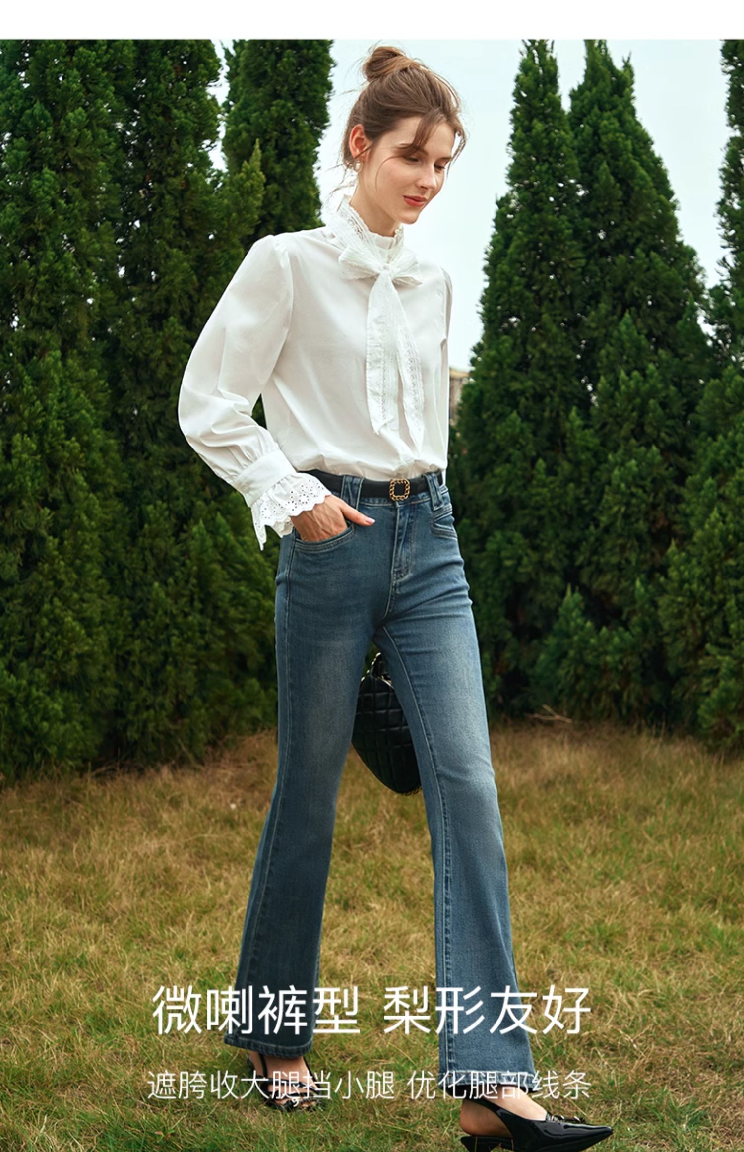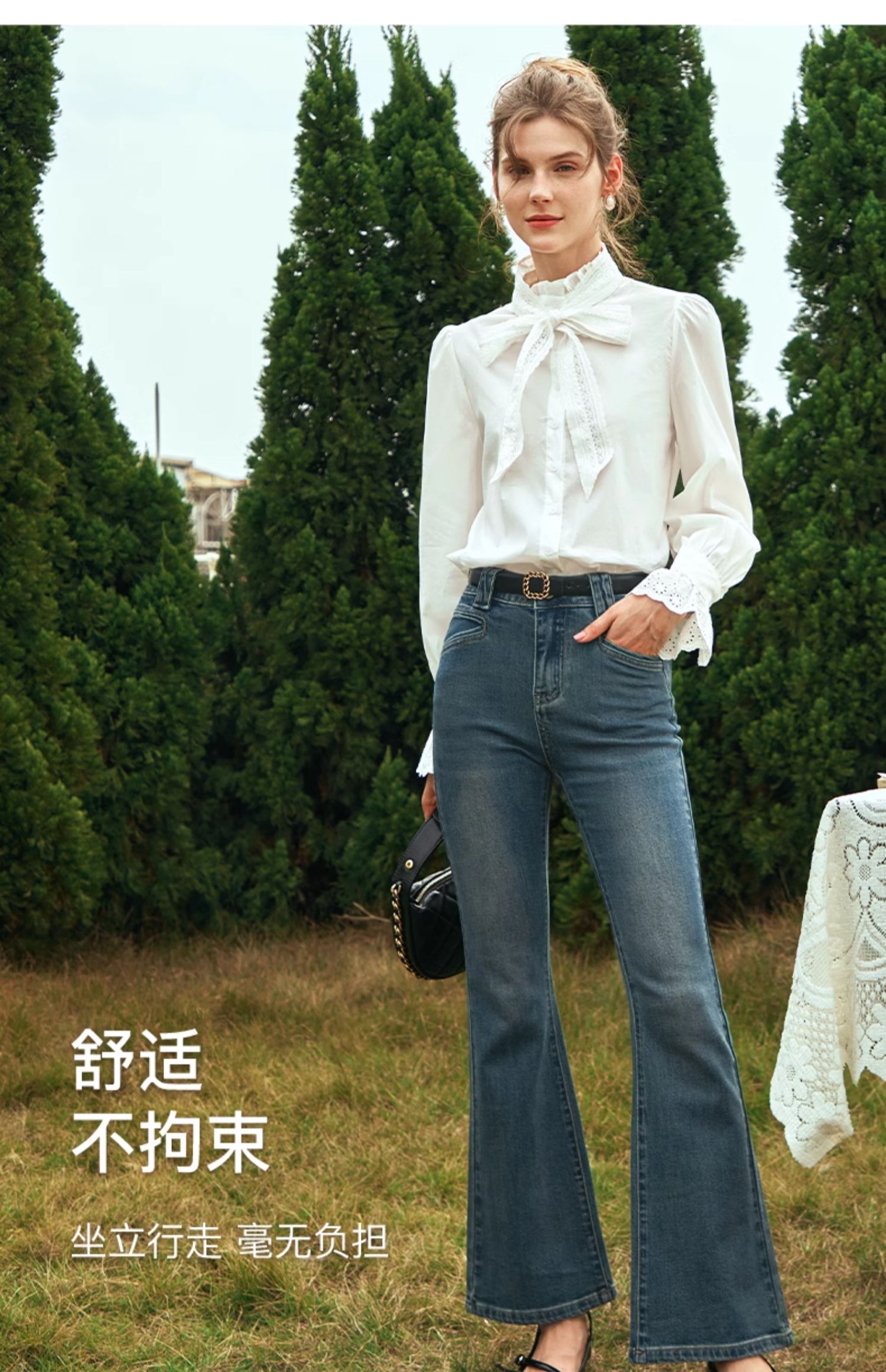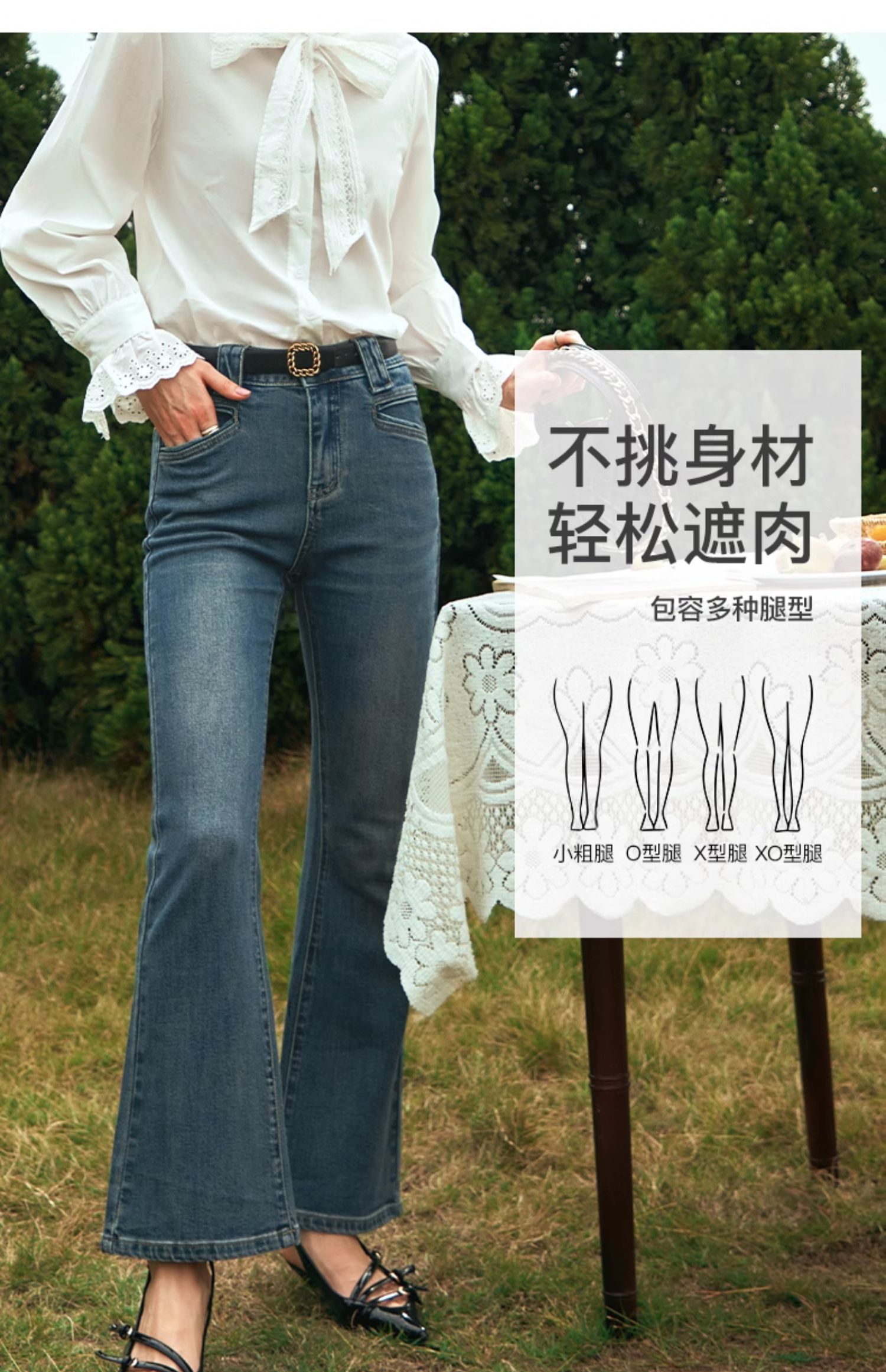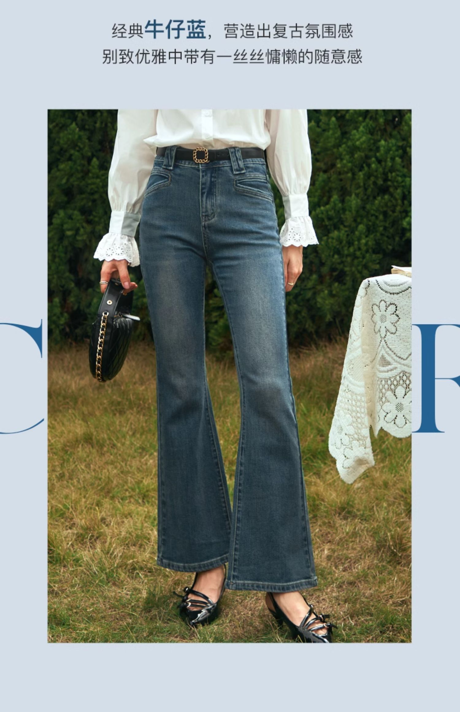 OLrain欧芮儿复古蓝牛仔裤女早春2024年新款显瘦弹力微喇长裤