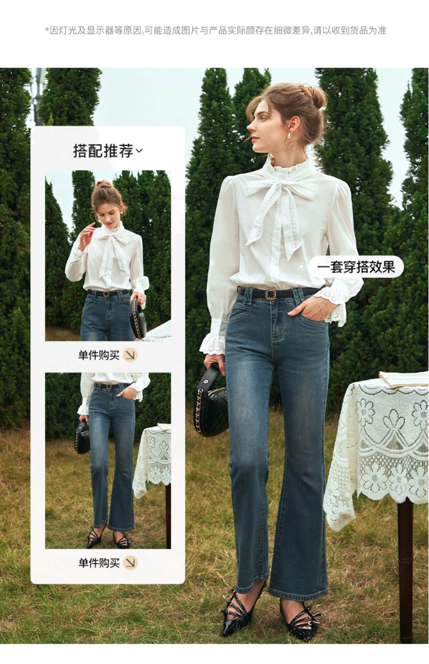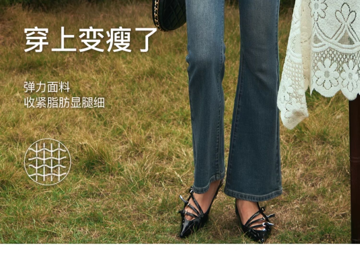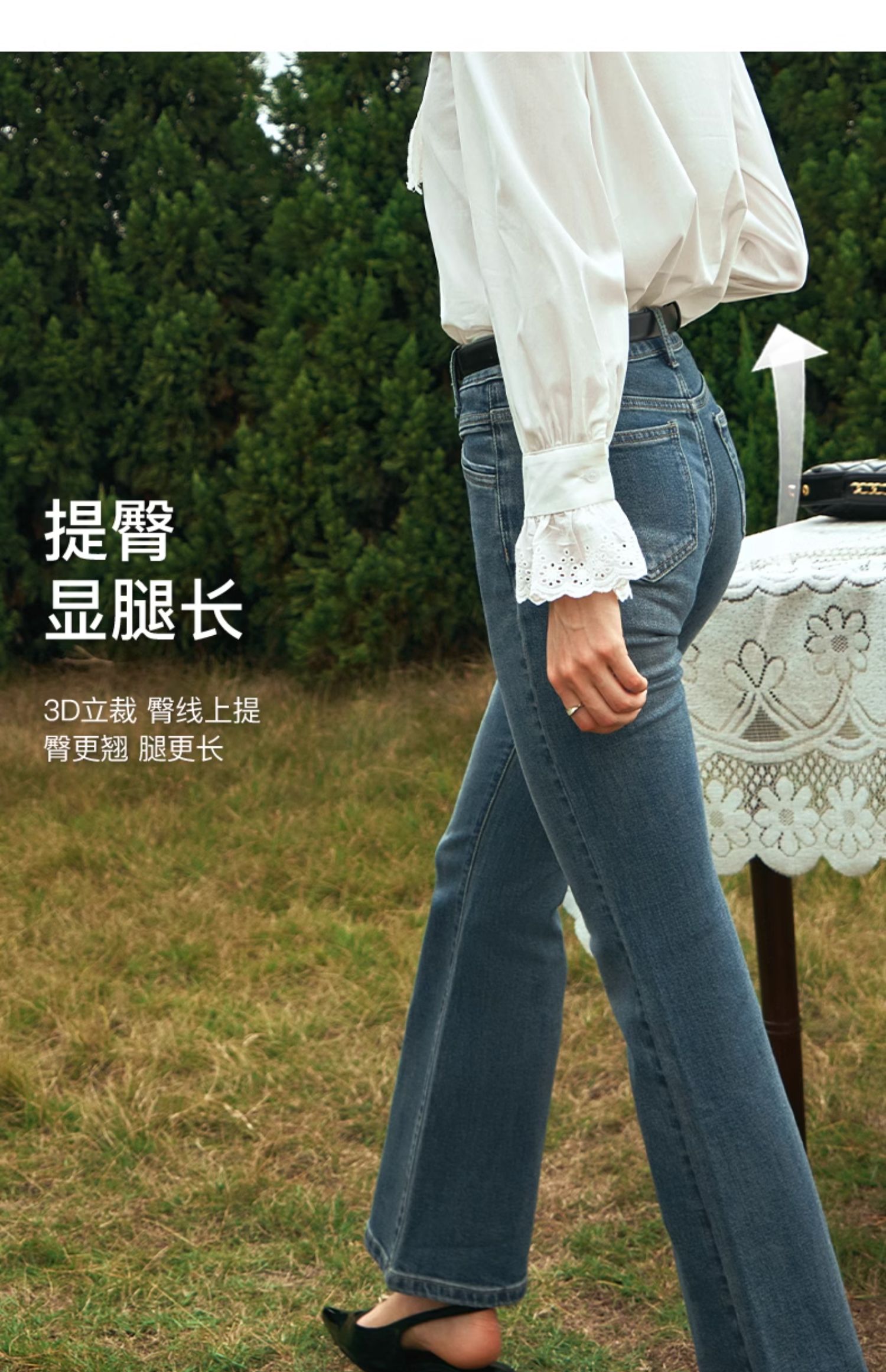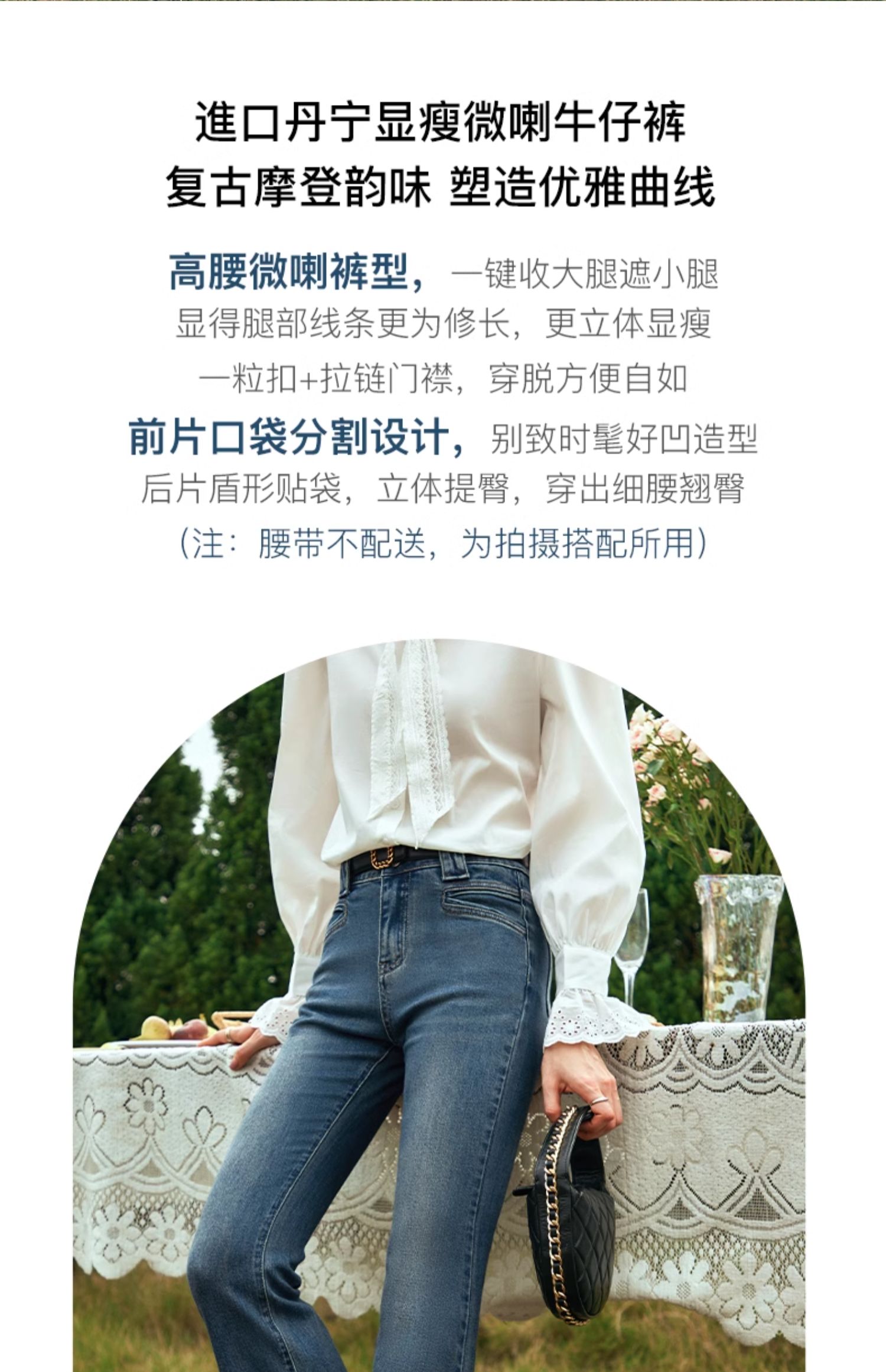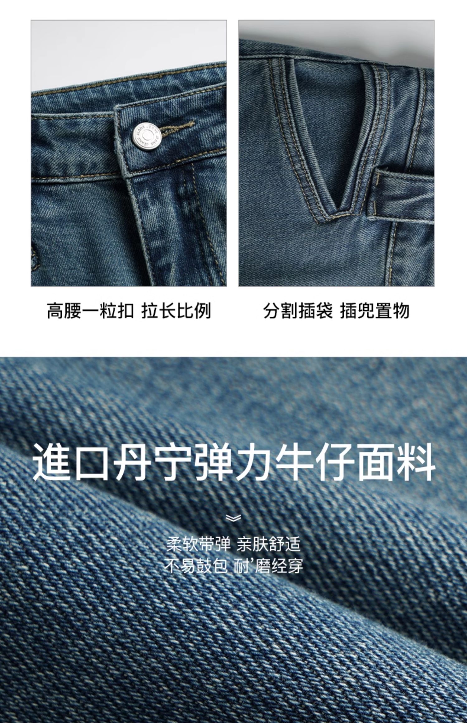 OLrain欧芮儿复古蓝牛仔裤女早春2024年新款显瘦弹力微喇长裤