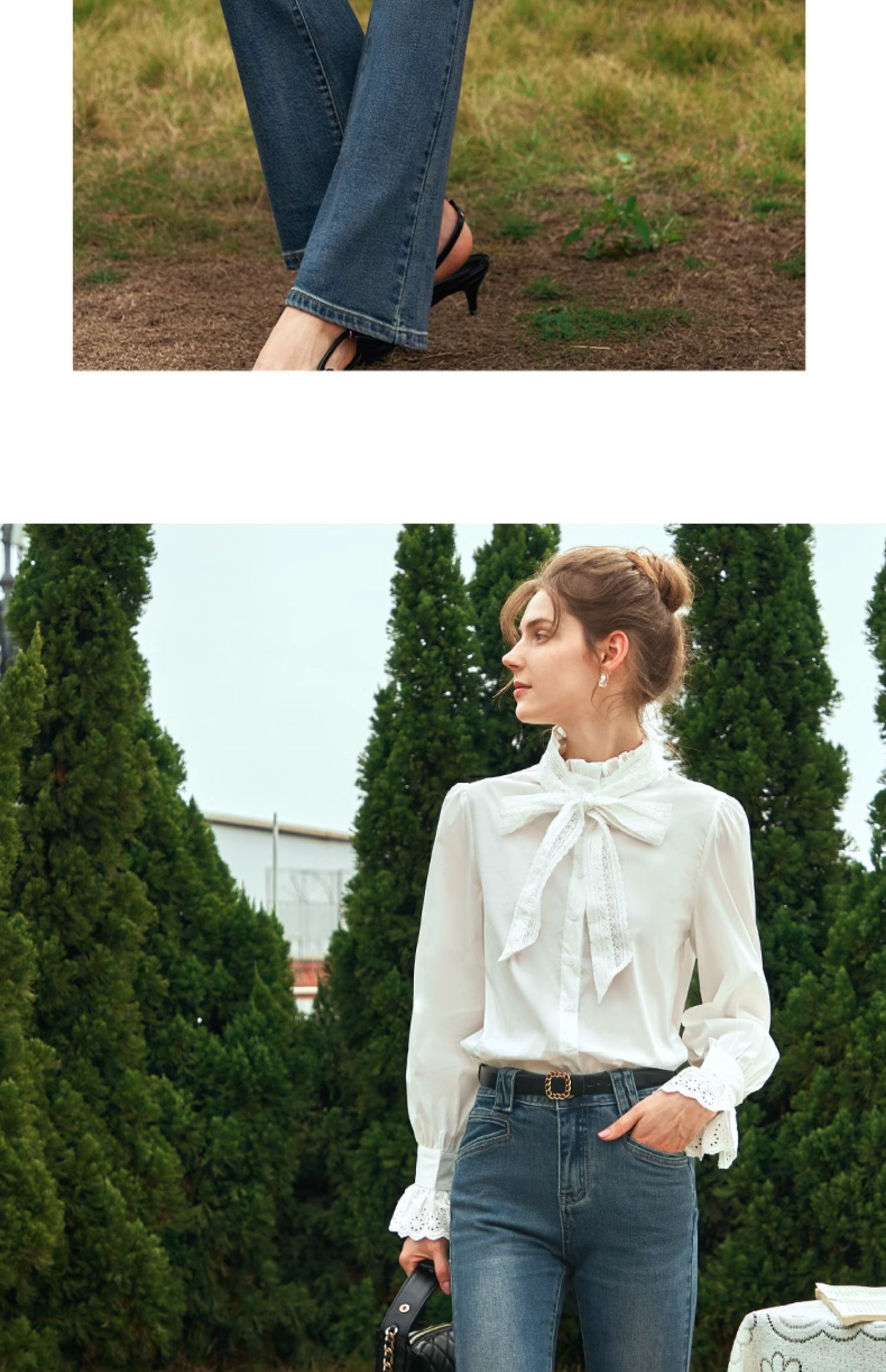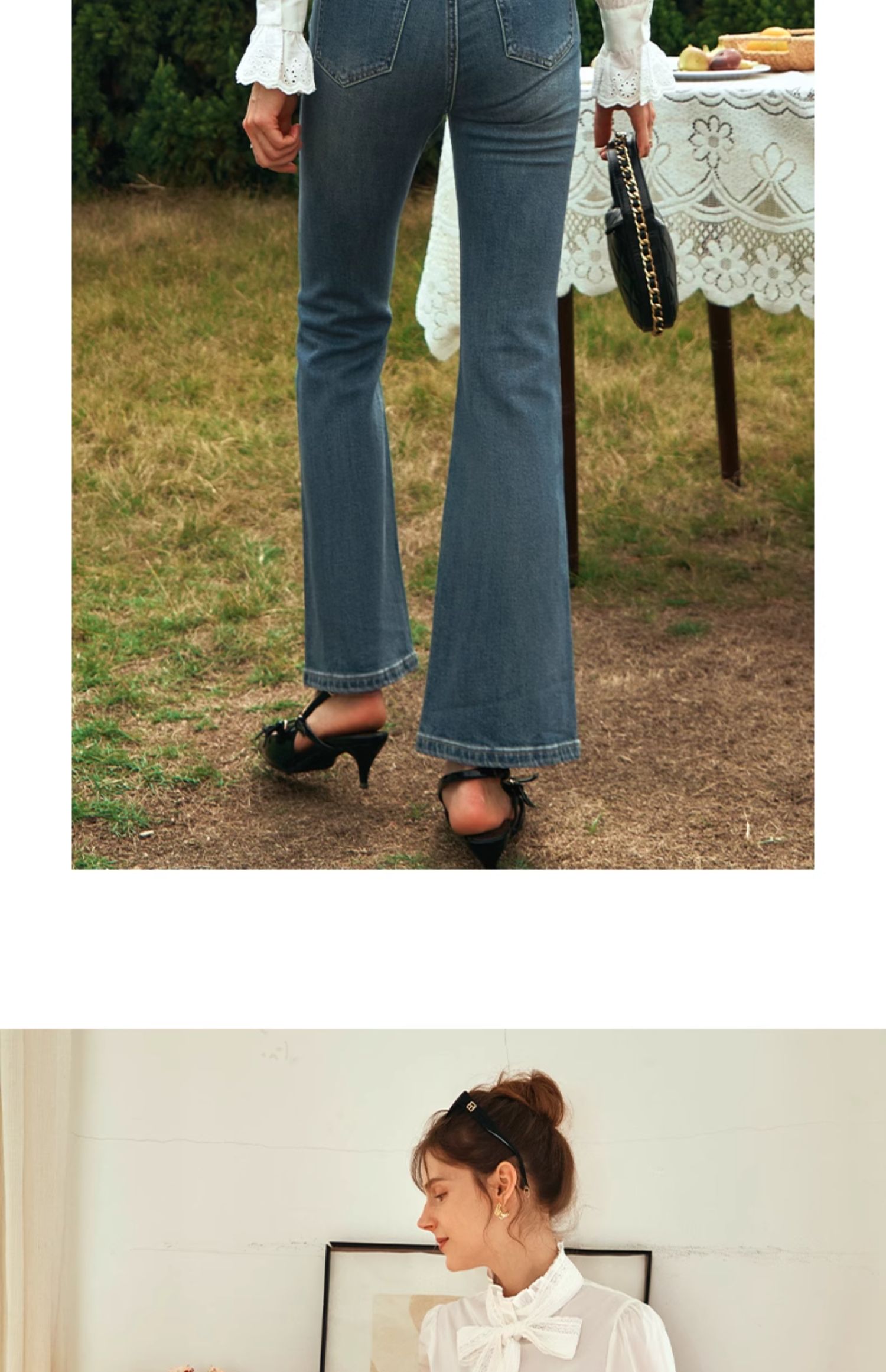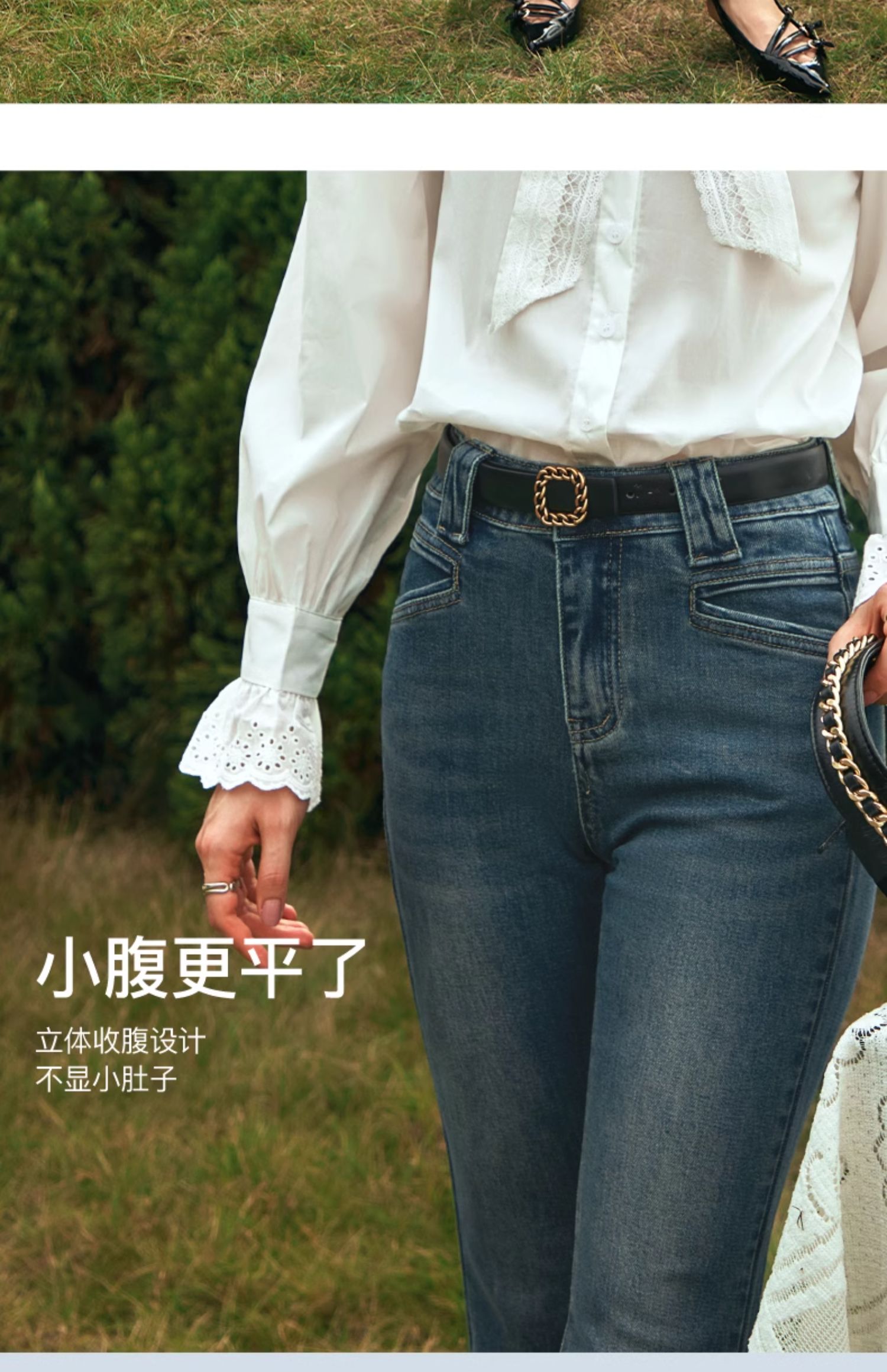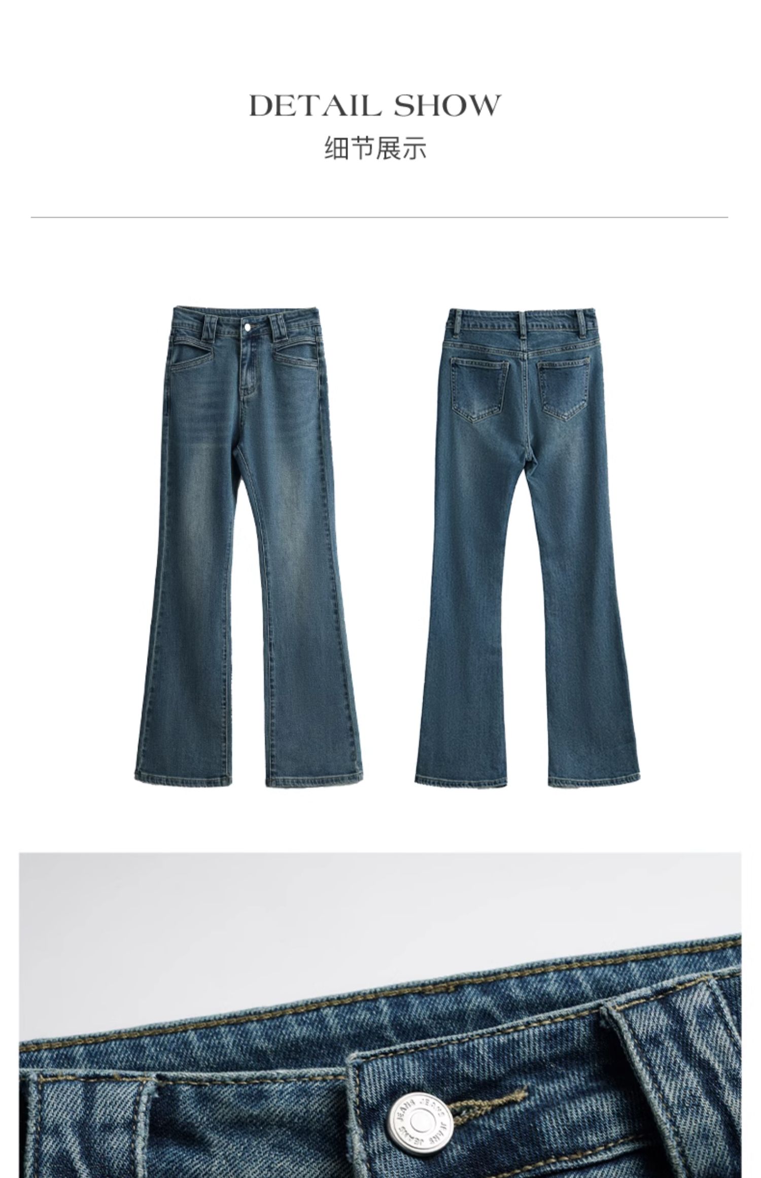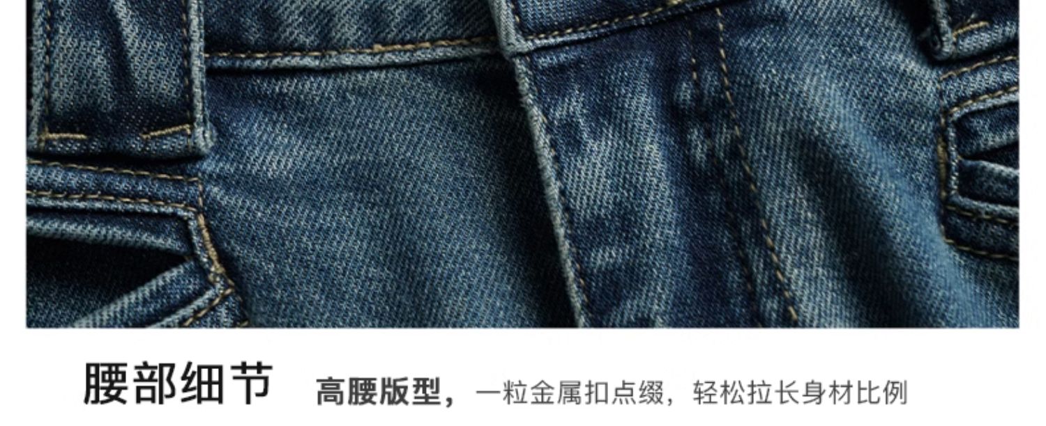 OLrain欧芮儿复古蓝牛仔裤女早春2024年新款显瘦弹力微喇长裤