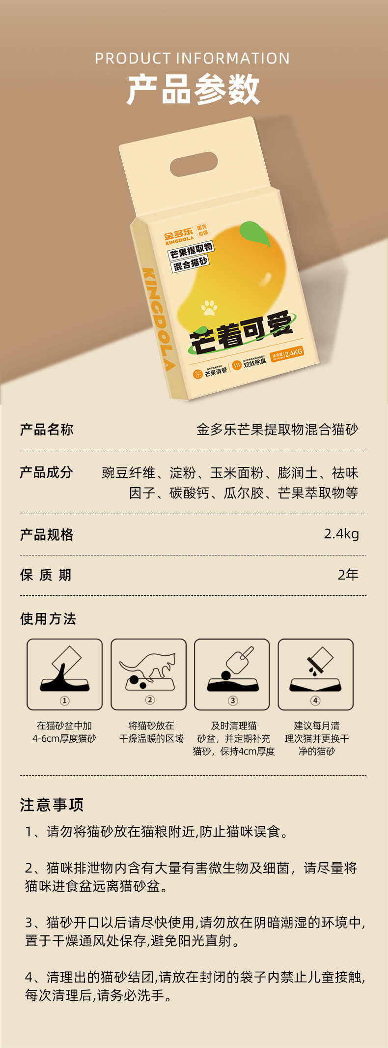 金多乐多效合一混合猫砂芒果/咖啡/竹炭几斤无尘除臭结团2.4KG包邮可冲厕所