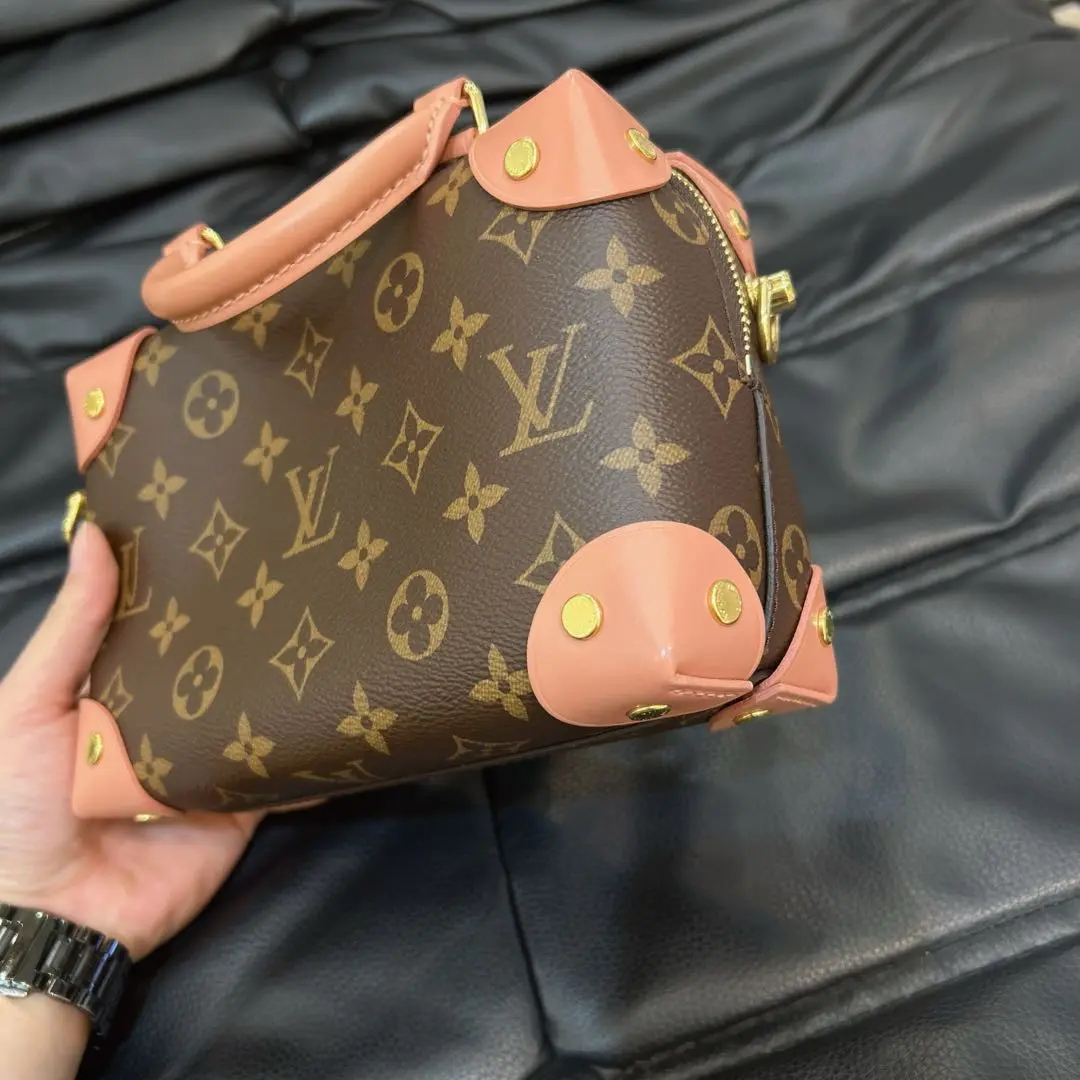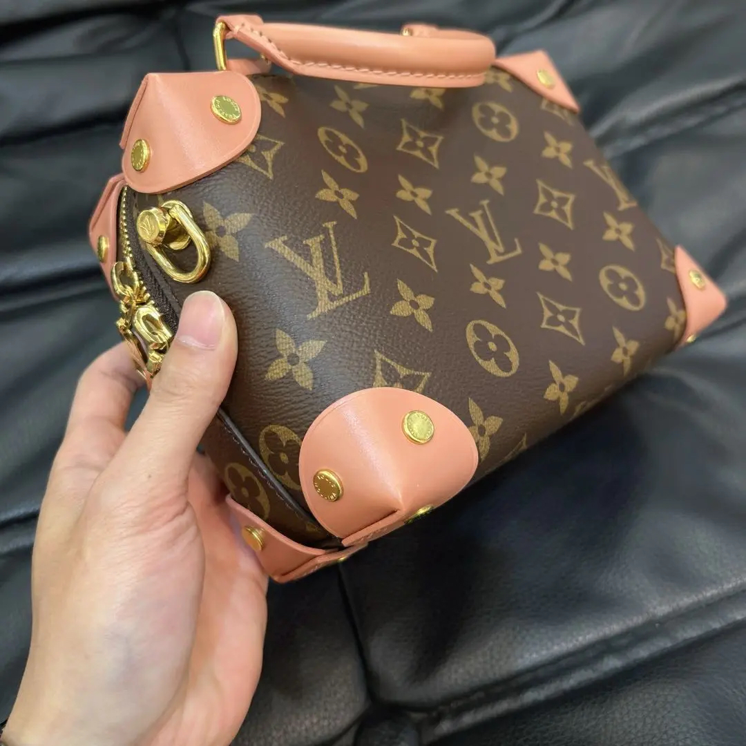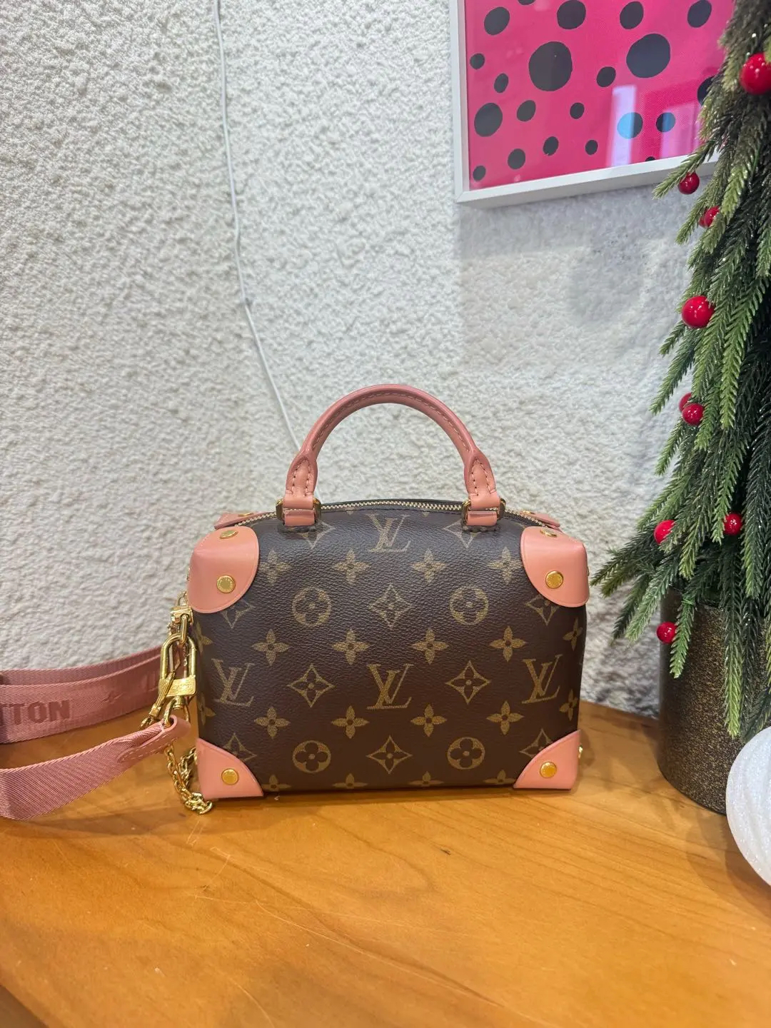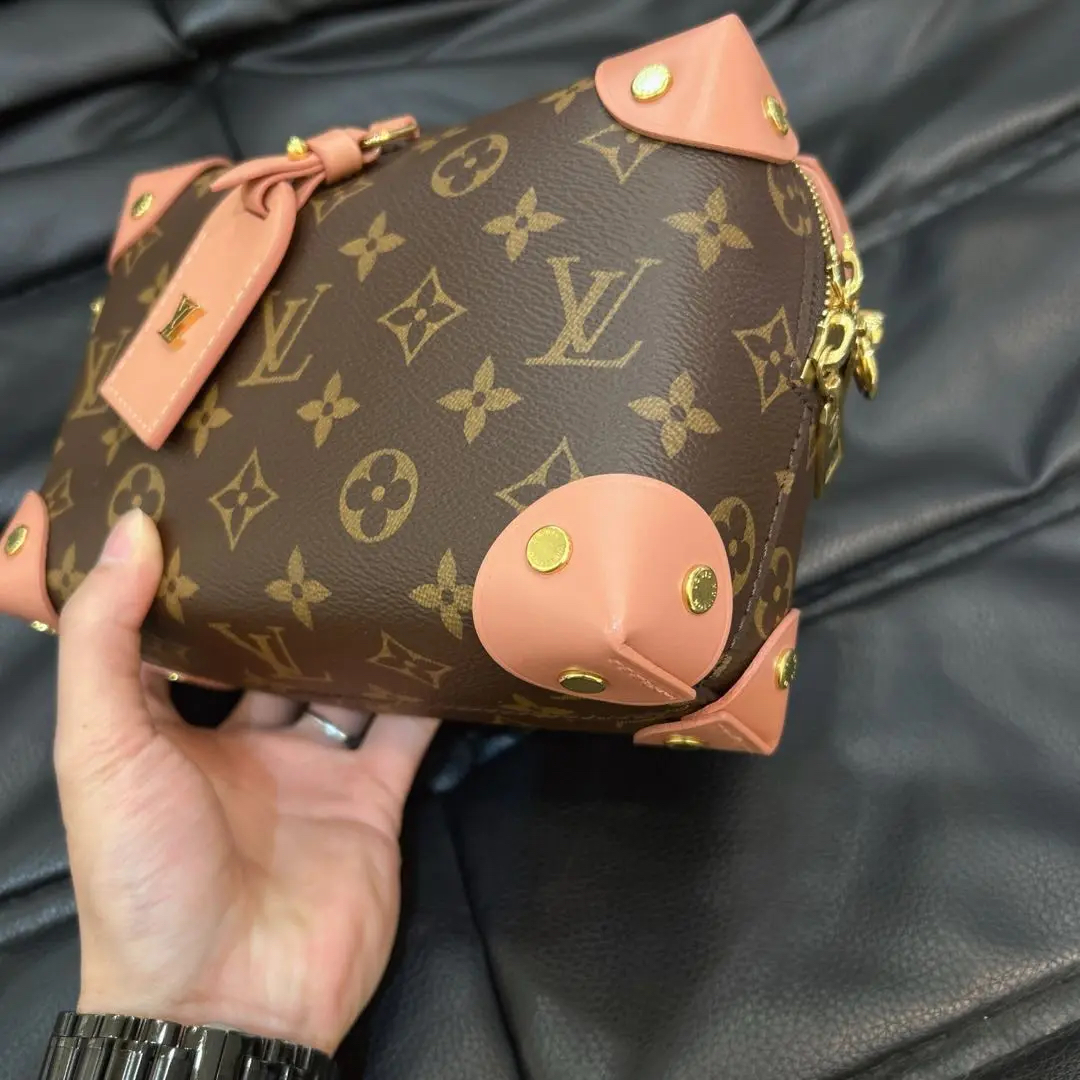 LV Souple 粉皮拼老花 粉肩带 软盒子