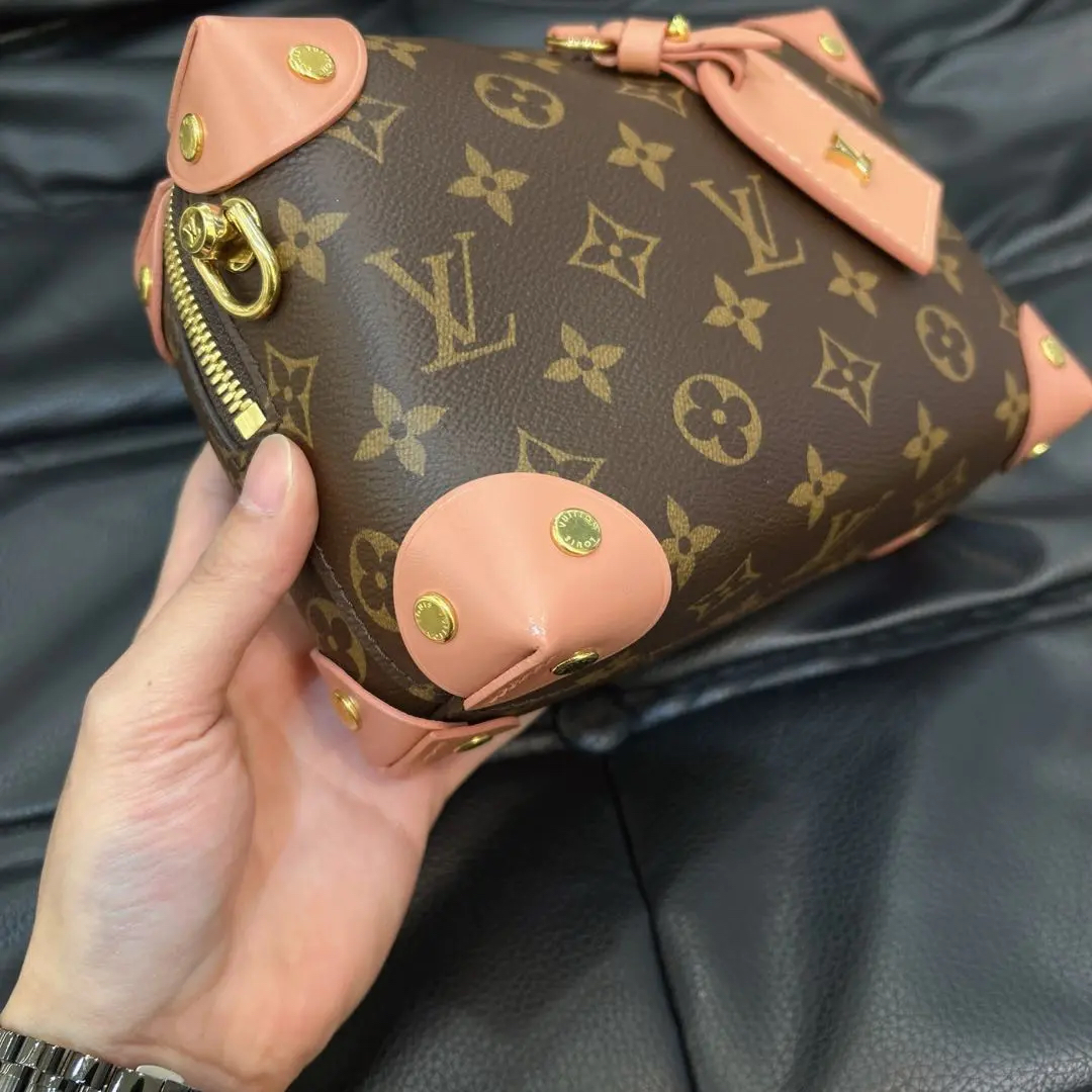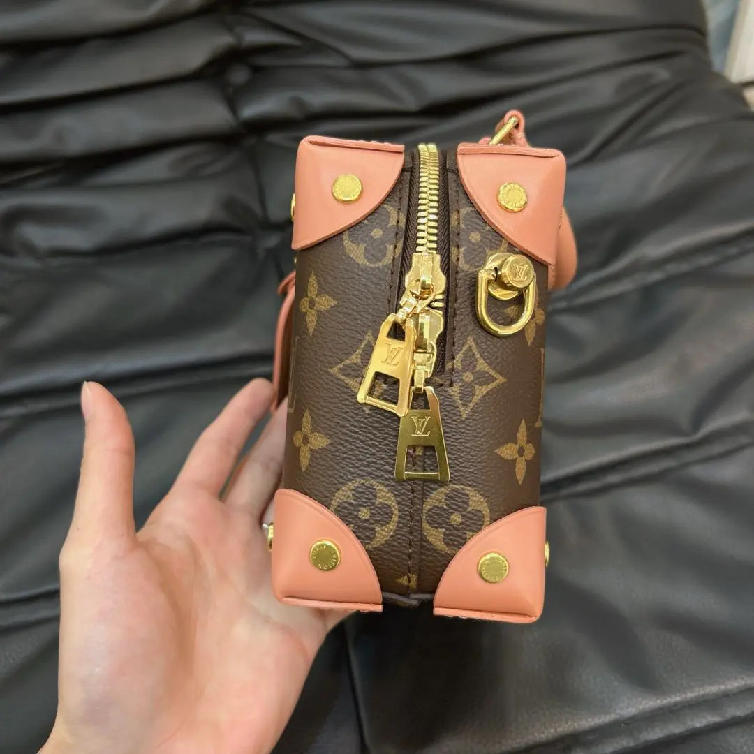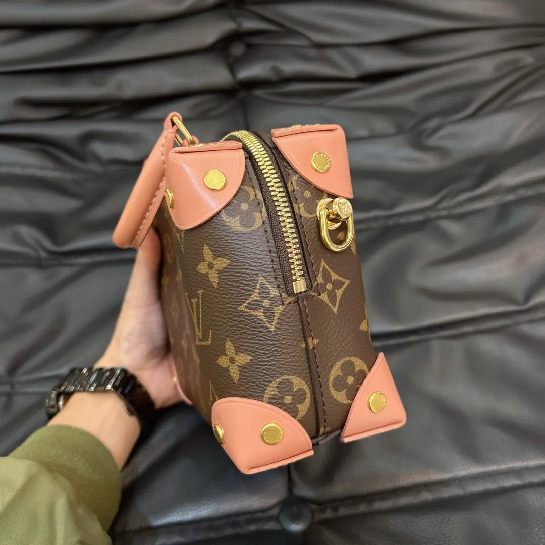LV Souple 粉皮拼老花 粉肩带 软盒子