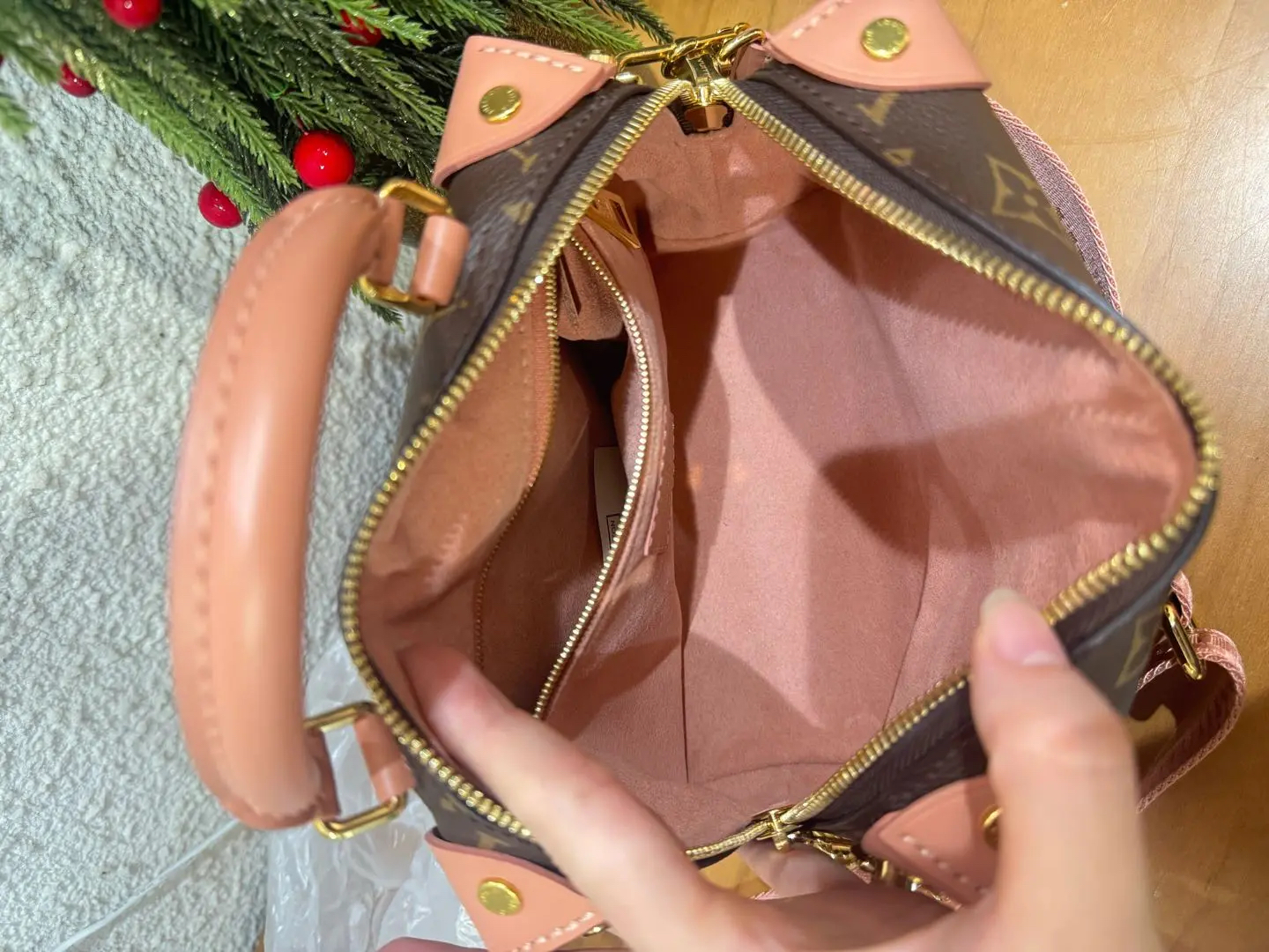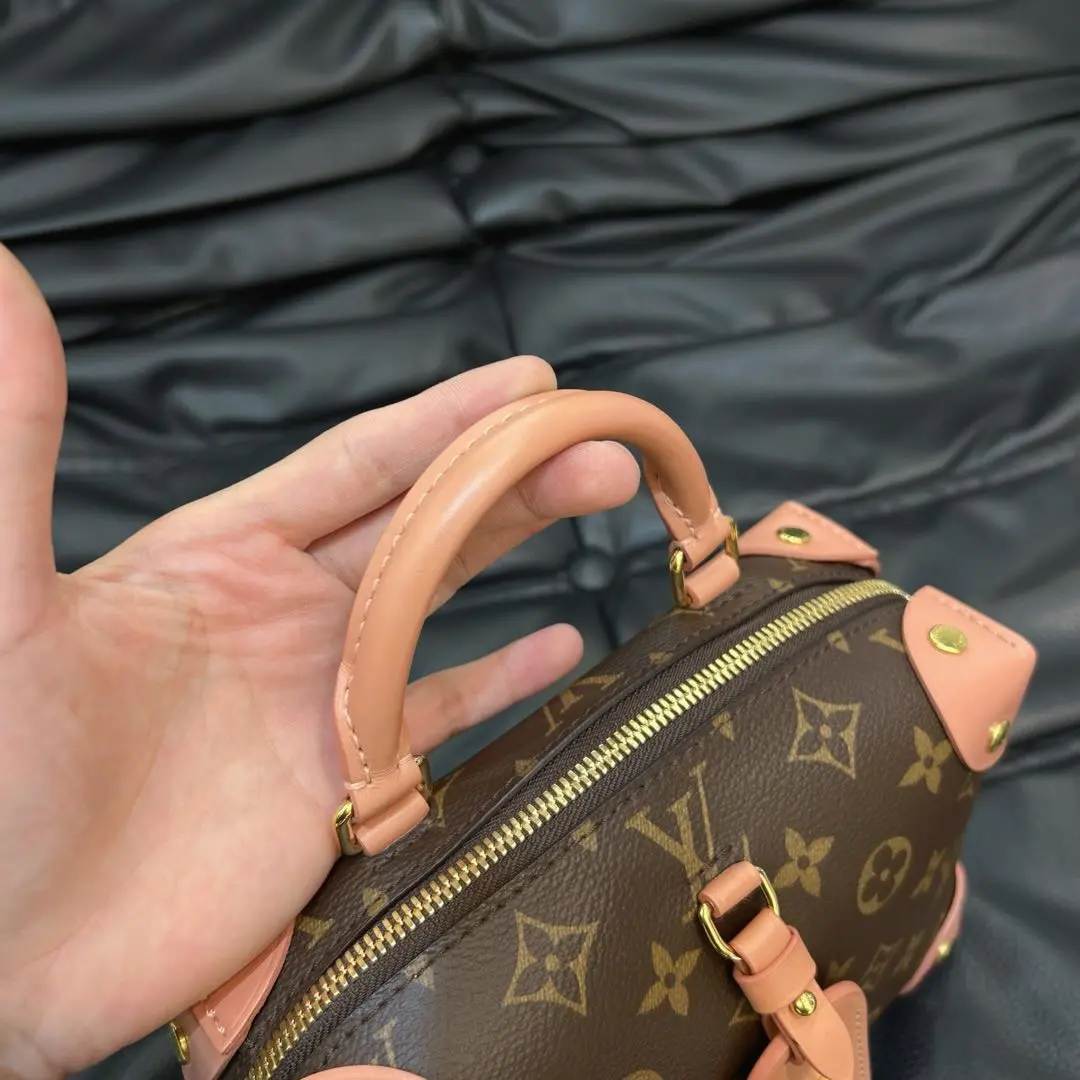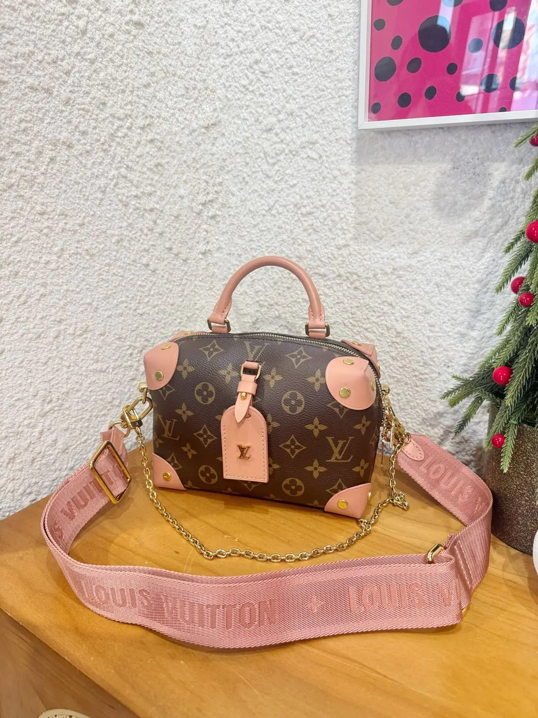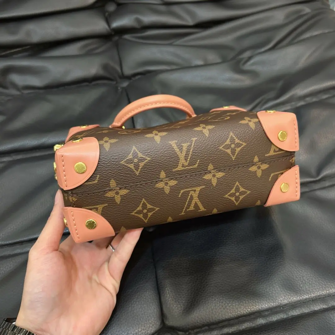 LV Souple 粉皮拼老花 粉肩带 软盒子