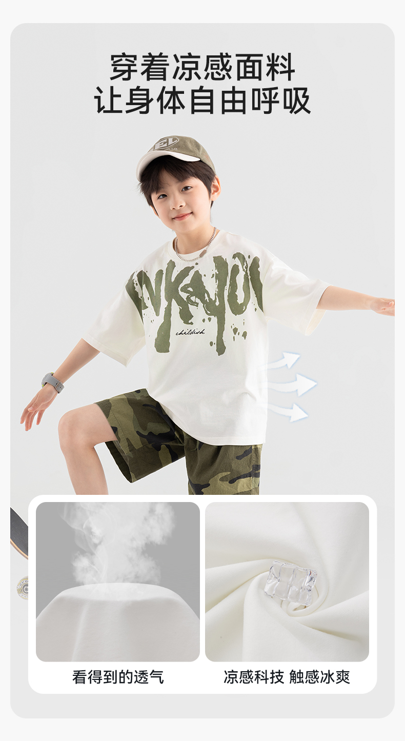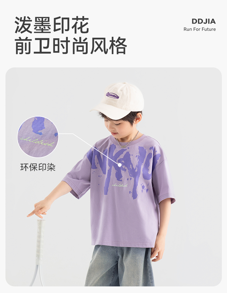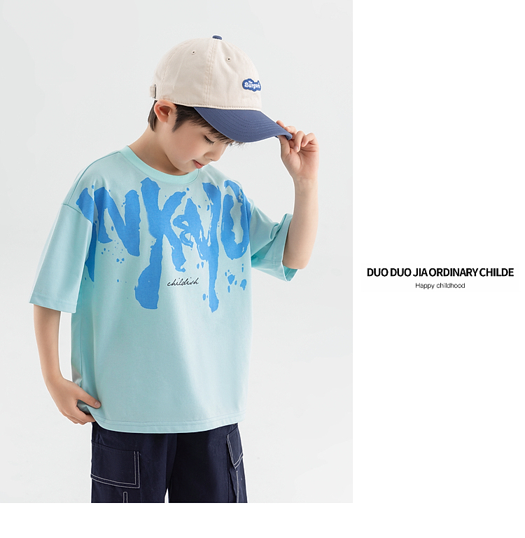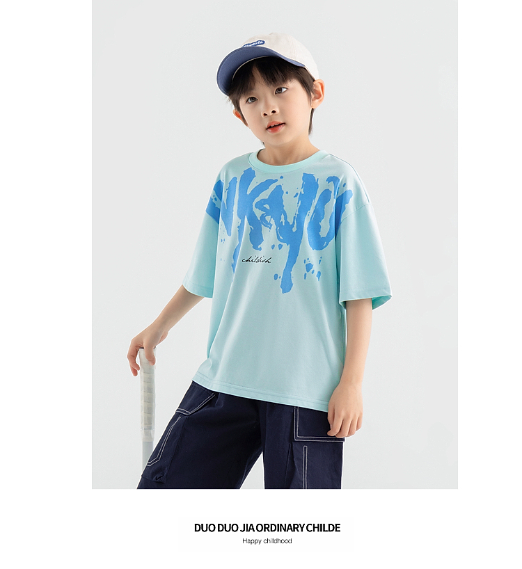 【团购价29.9-39.9】多多家男童T恤短袖凉感儿童半袖纯棉2025夏装新款中大童印花上衣10503