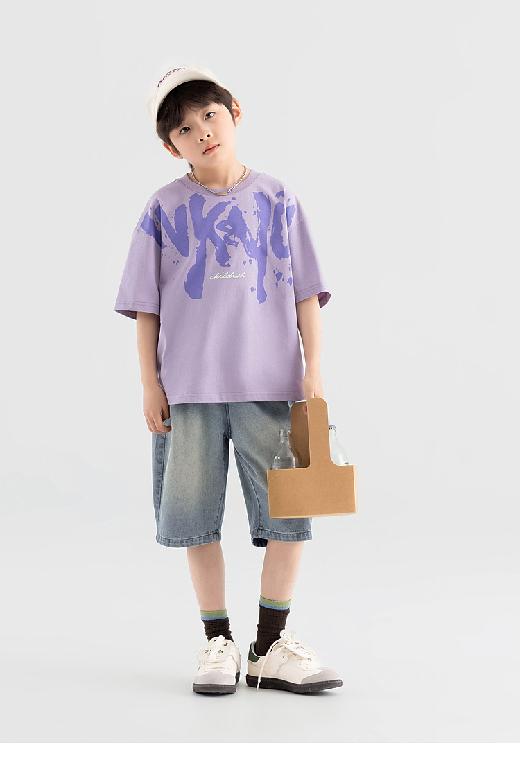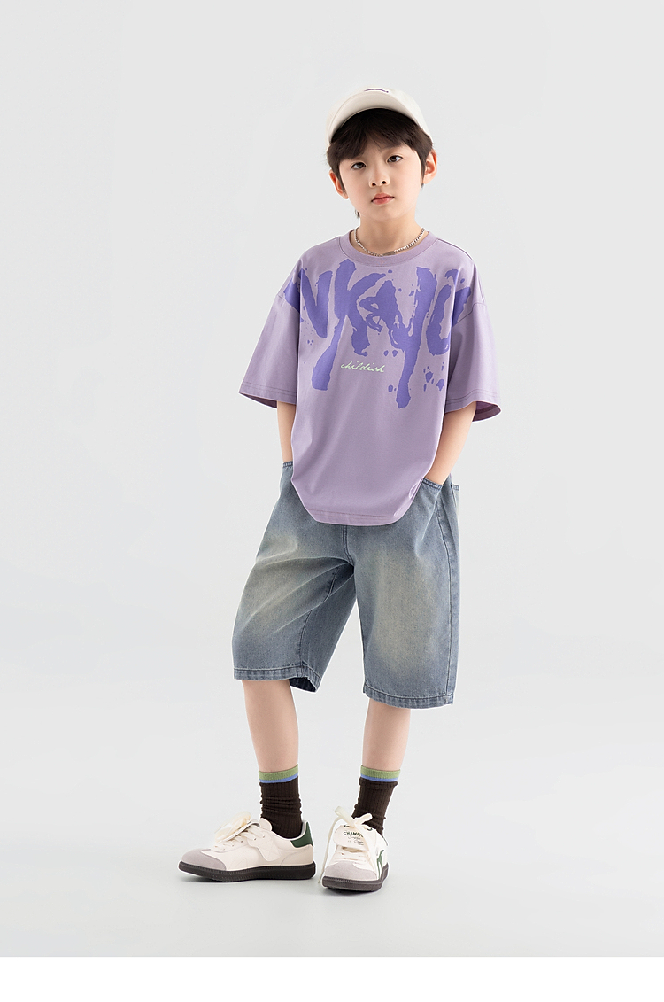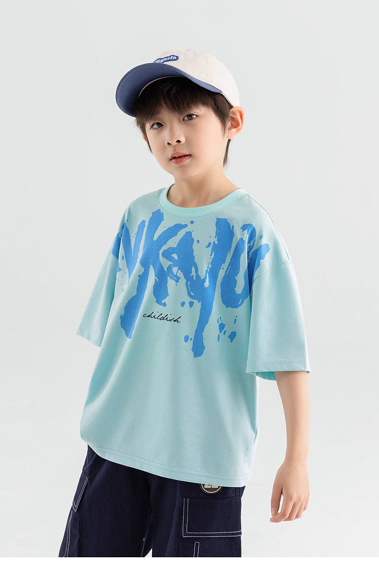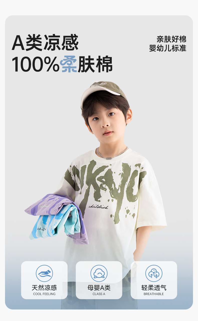 【团购价29.9-39.9】多多家男童T恤短袖凉感儿童半袖纯棉2025夏装新款中大童印花上衣10503
