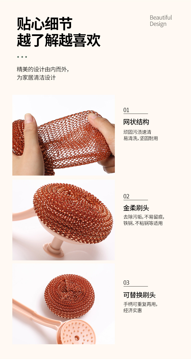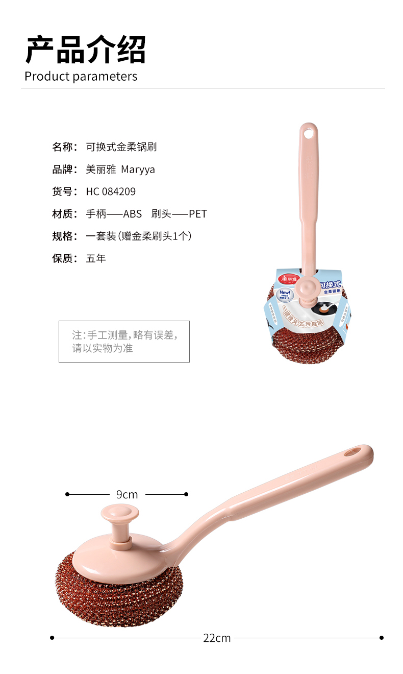 【批发】美丽雅可换式带柄金丝耐用锅刷赠替换装1个 1套