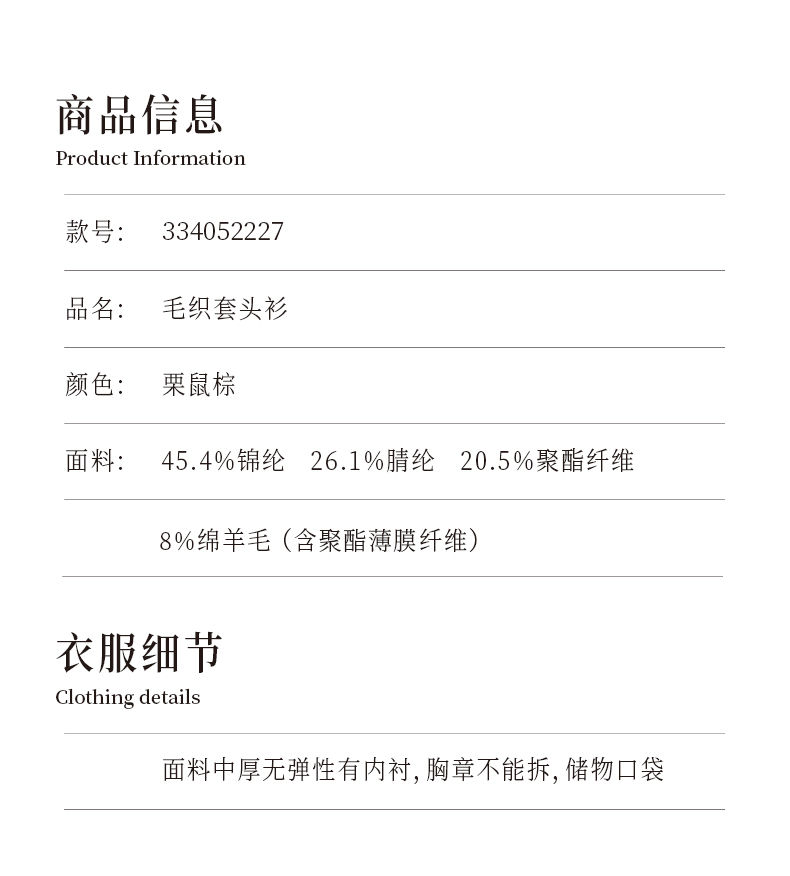 NUTS商场同款春秋款设计感气质圆领直筒短款毛织套头衫女334052227