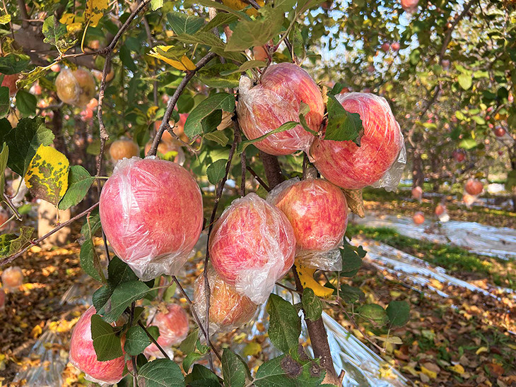 双层袋子,1层纸袋+1层膜袋,确保苹果的绿色种植。肉质酥脆,糖度高,颜色靓!