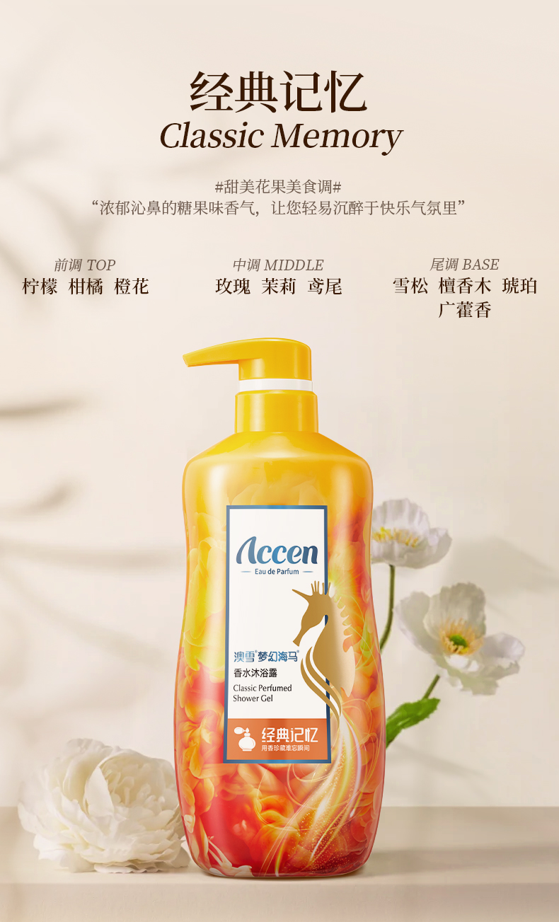澳雪梦幻海马香水沐浴露638g*2支装(经典记忆+午夜宣言)