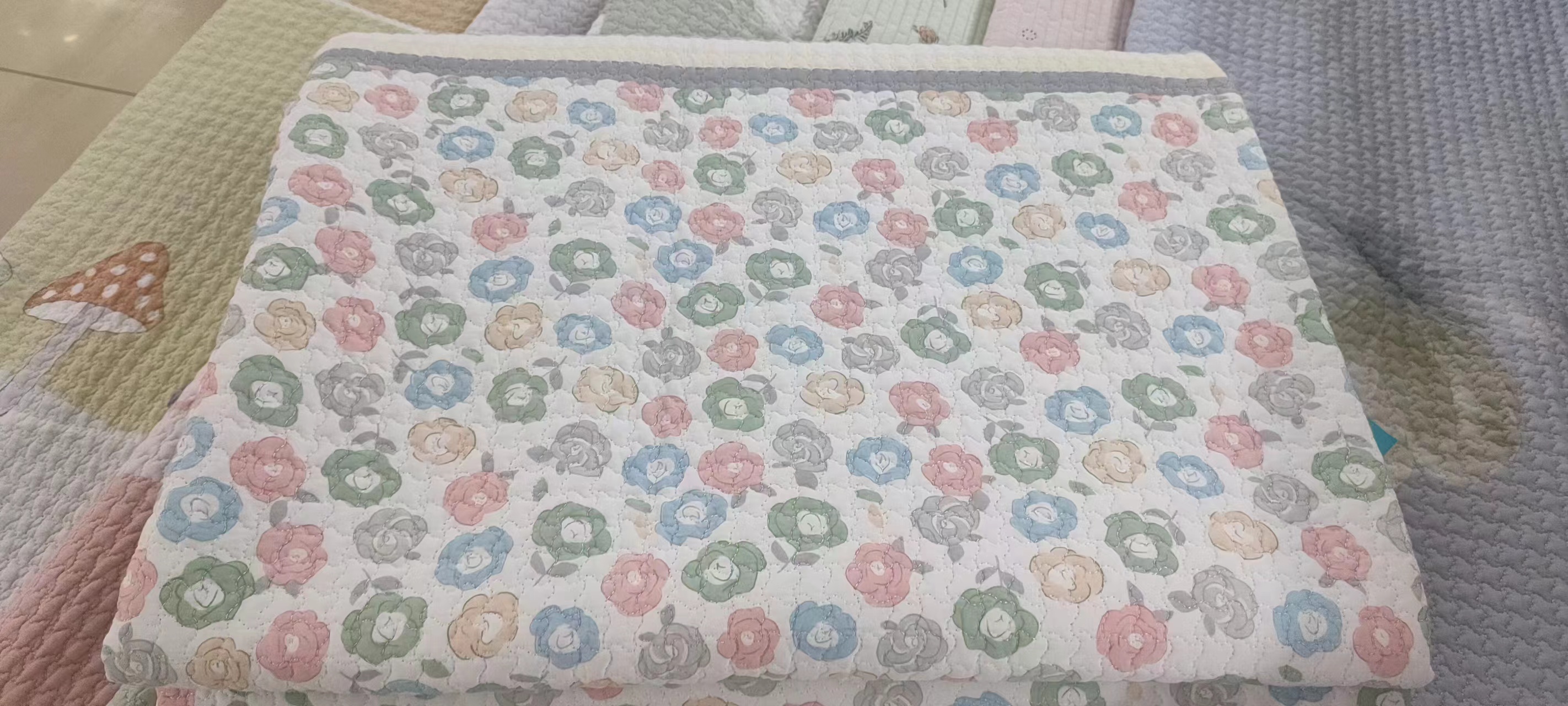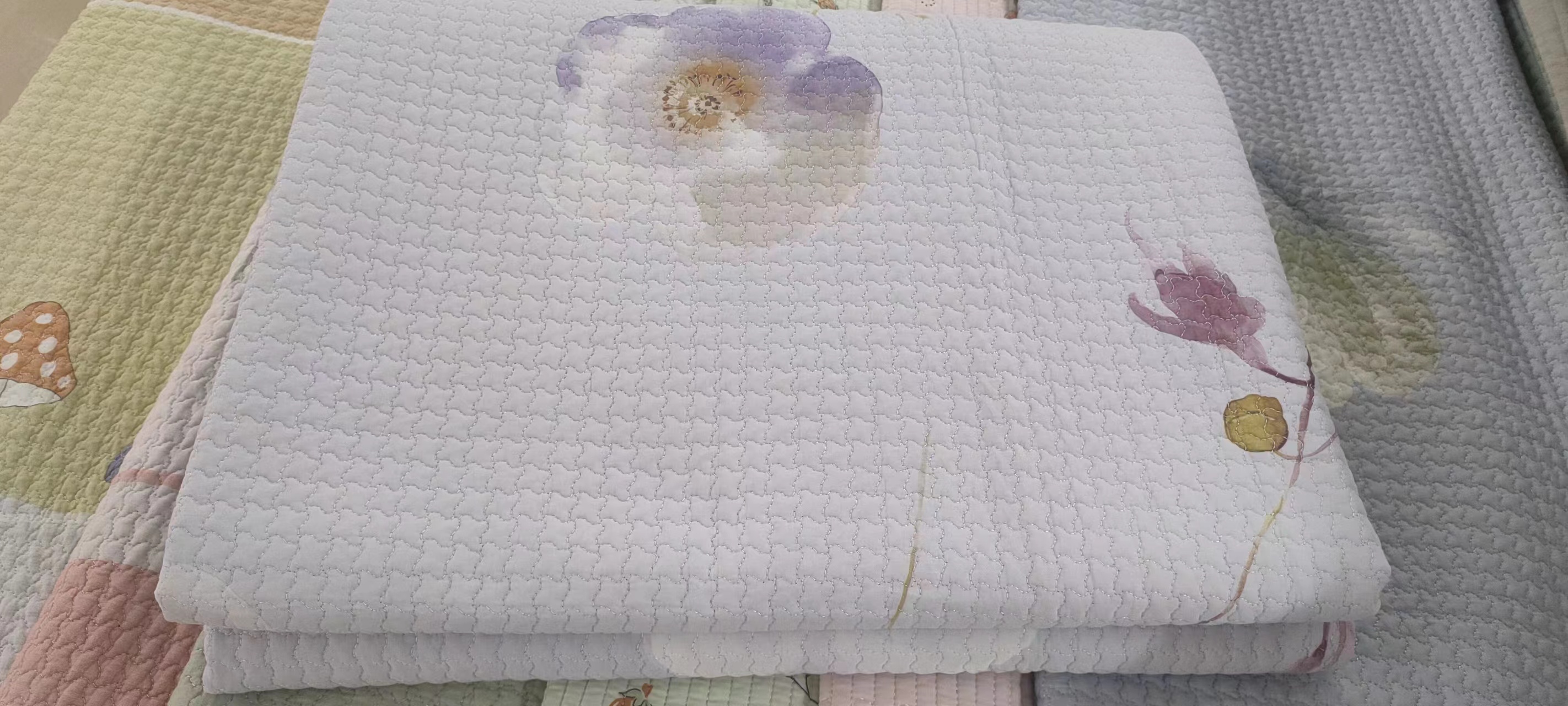 卖点:印花➕纯色、双面可用,柔软舒适,凉爽顺滑,花型清新。