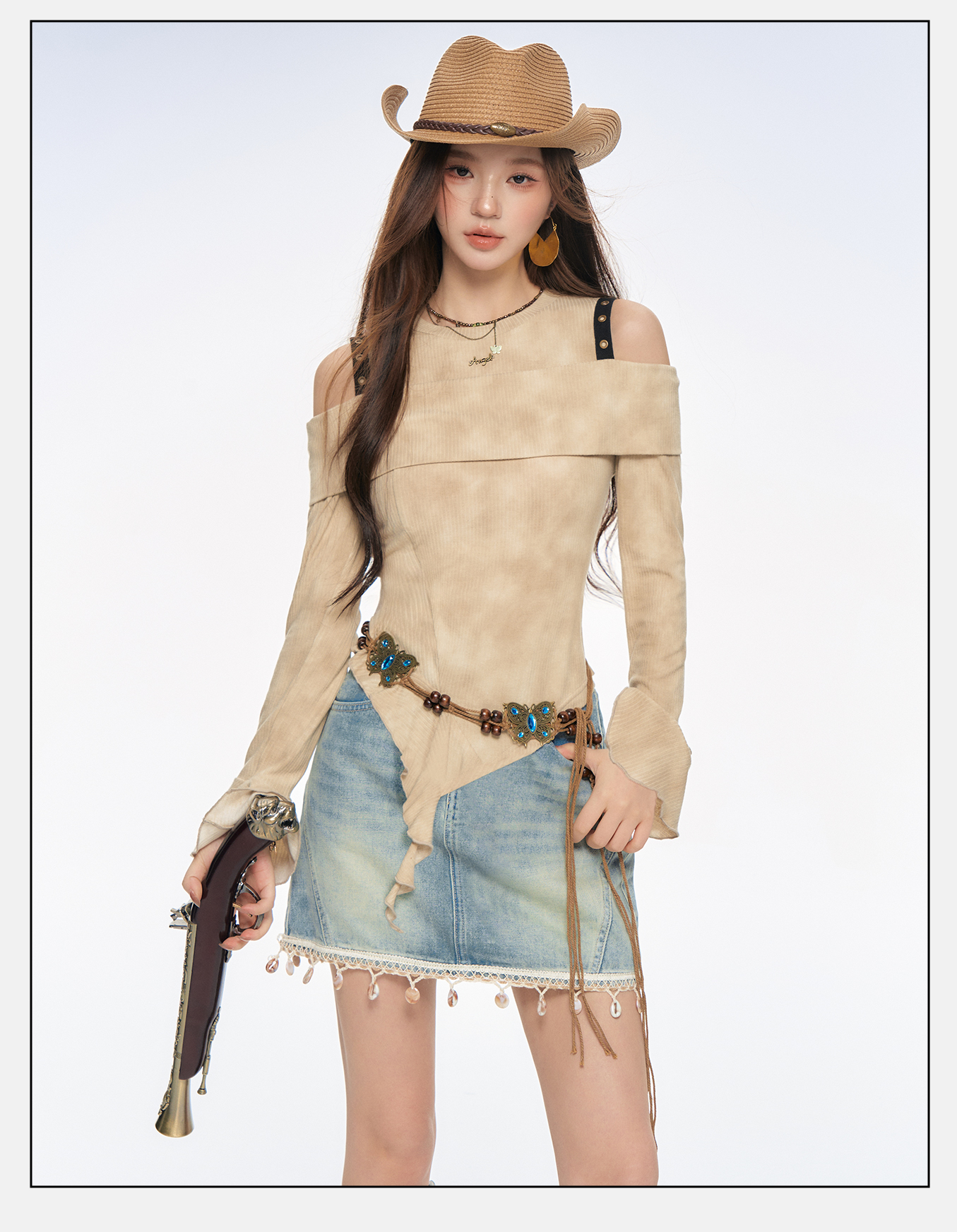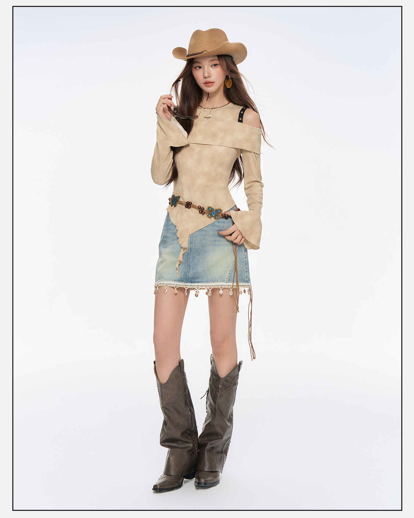 P&X设计师女装2025秋季新款辣妹高腰牛仔半身短裙 825307105 蓝色