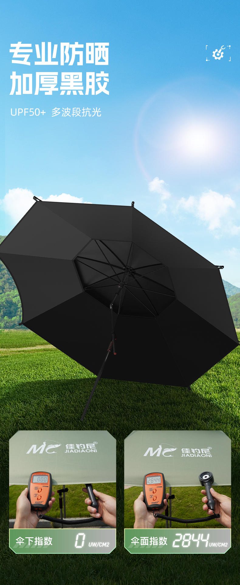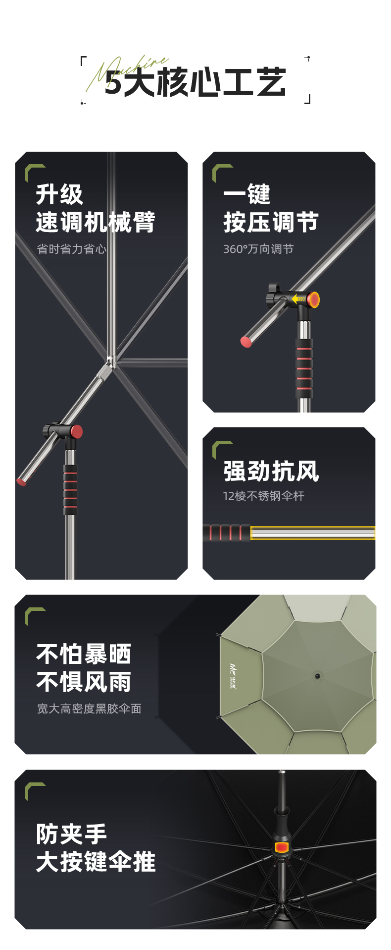 佳钓尼双弯拐杖伞多项调节伏魔扣花机械伞青苔