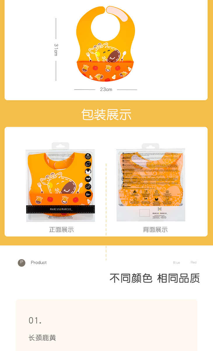加拿大MARCUS&MARCUS全新升级宝宝宽带硅胶围兜【马库狮】