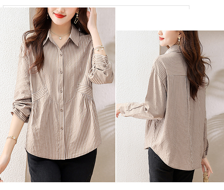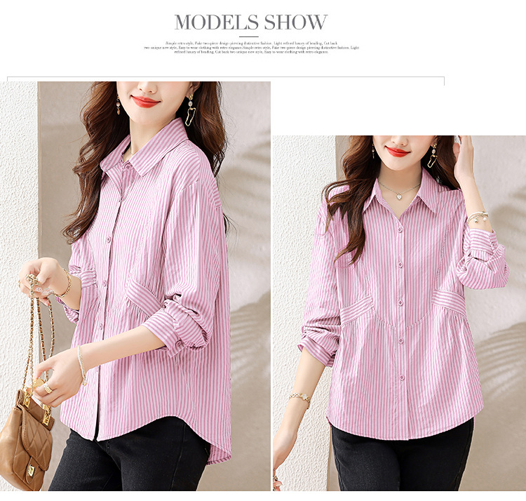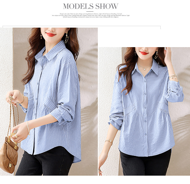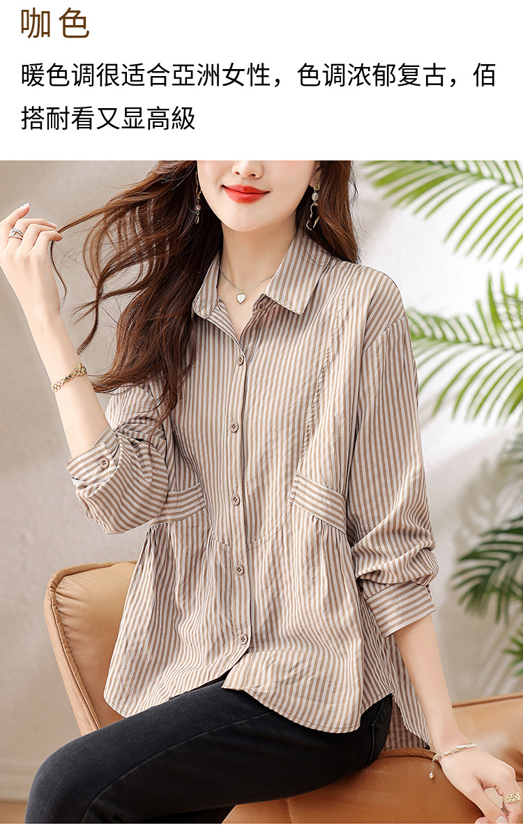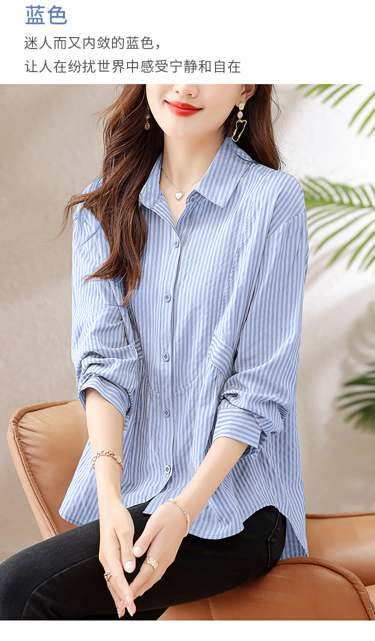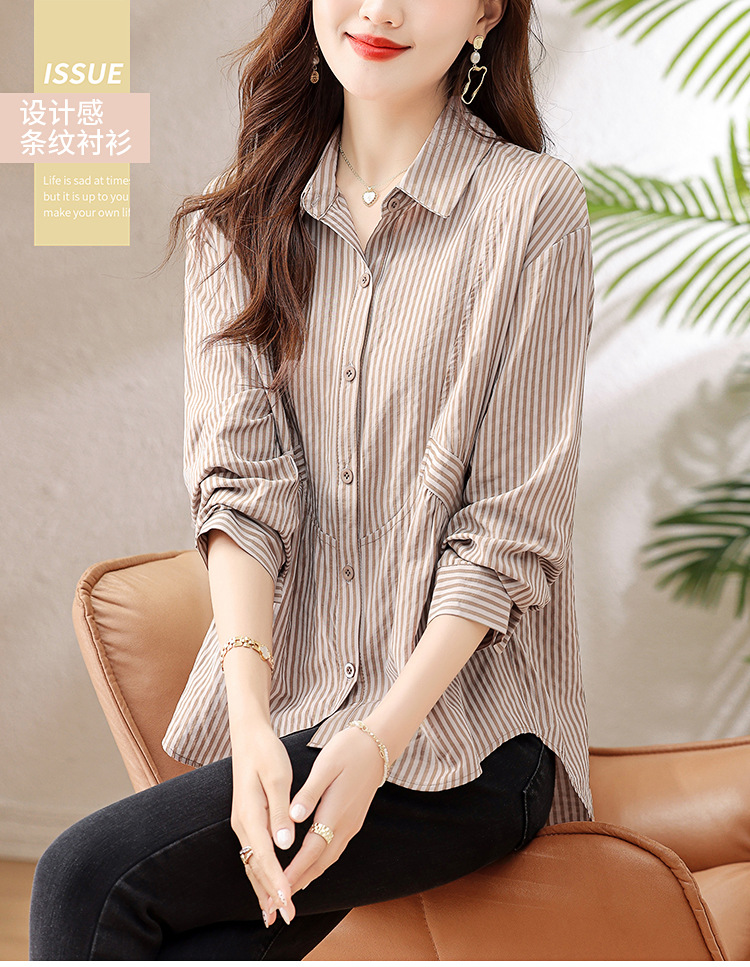 时尚通勤条纹衬衫上衣,秋季新款小众设计感洋气百搭减龄打底衫AHM-xde2067