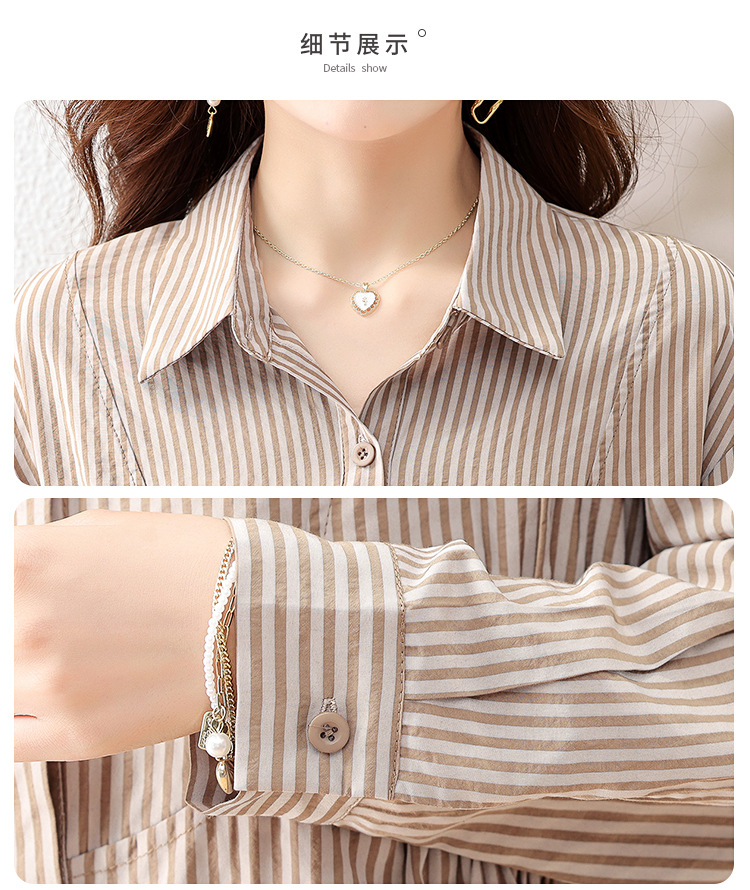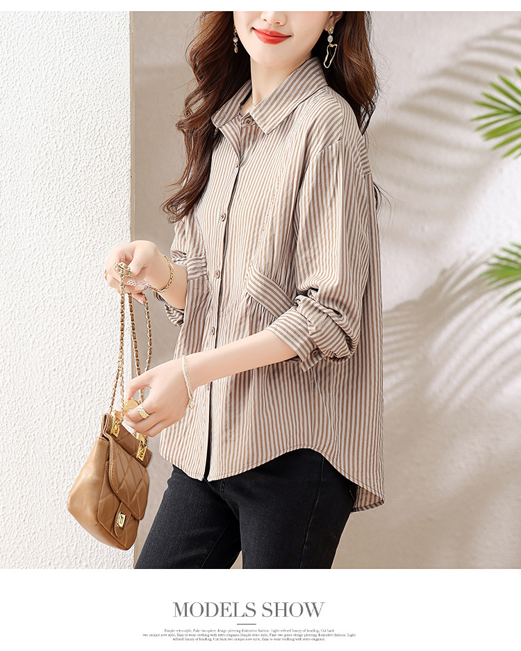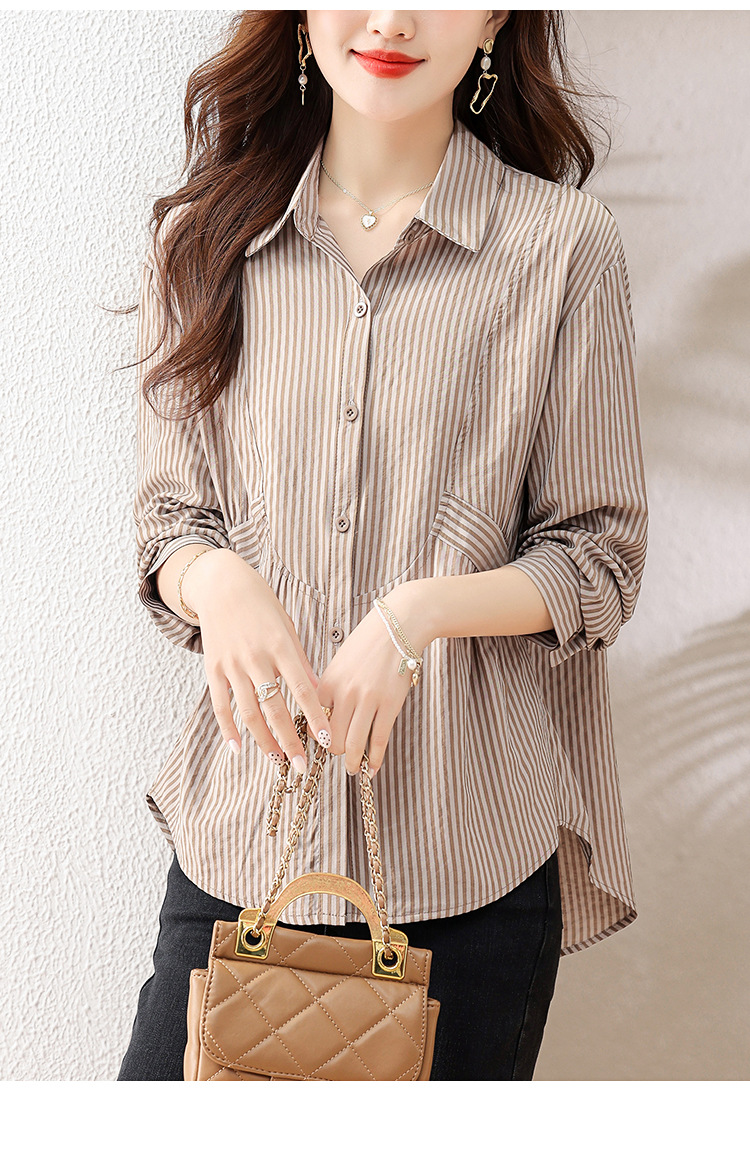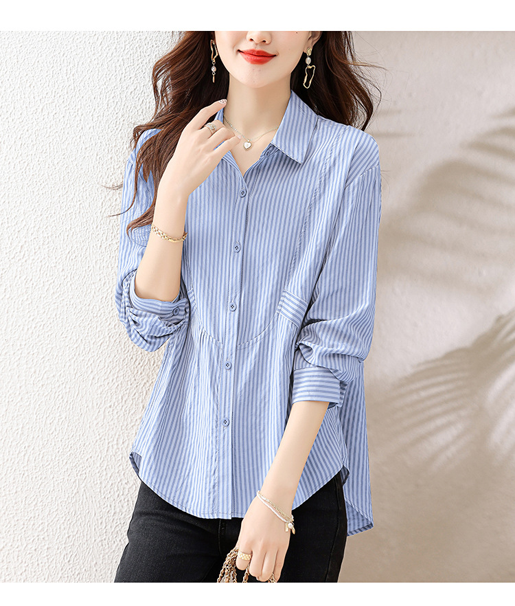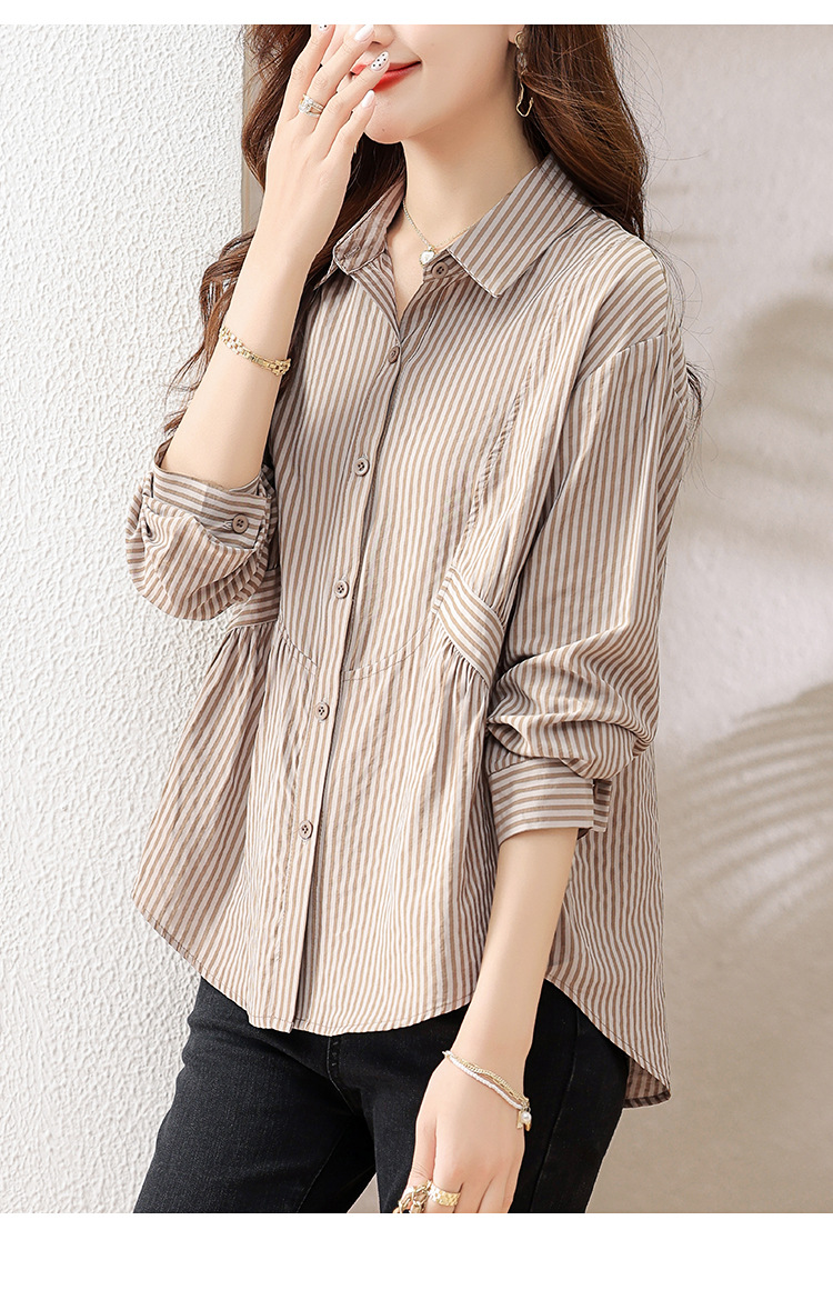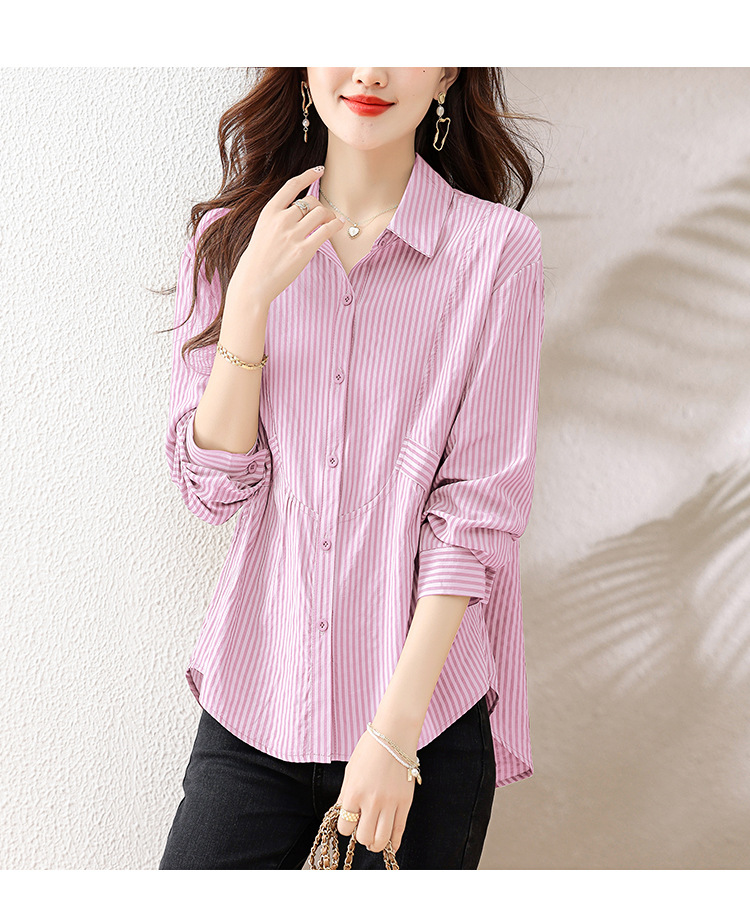 时尚通勤条纹衬衫上衣,秋季新款小众设计感洋气百搭减龄打底衫AHM-xde2067