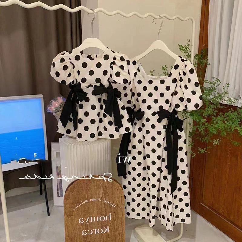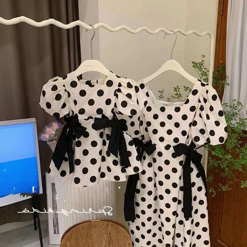 【社群供Z】亲子装夏季韩系蝴蝶结波点连衣裙(下单5-7天大货))