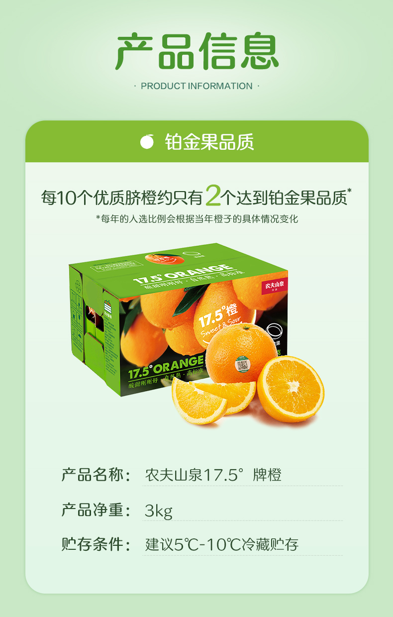 农夫山泉17.5°脐橙铂金果3kg鲜橙江西核心橙产区酸甜可口25年新鲜采摘上市