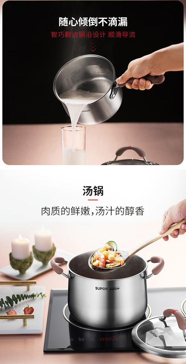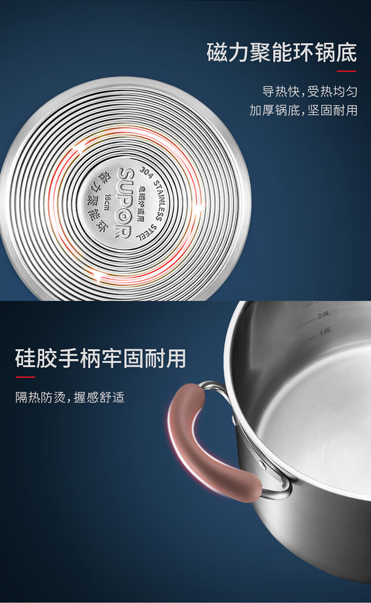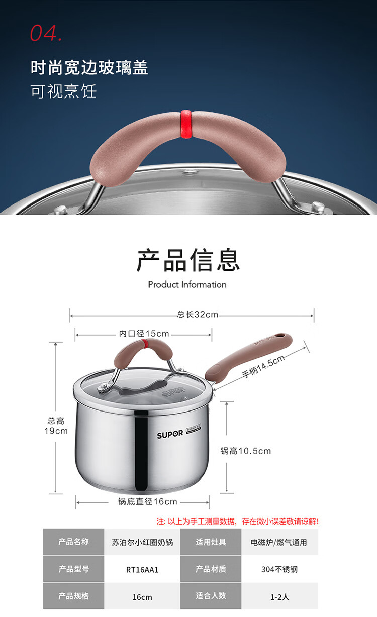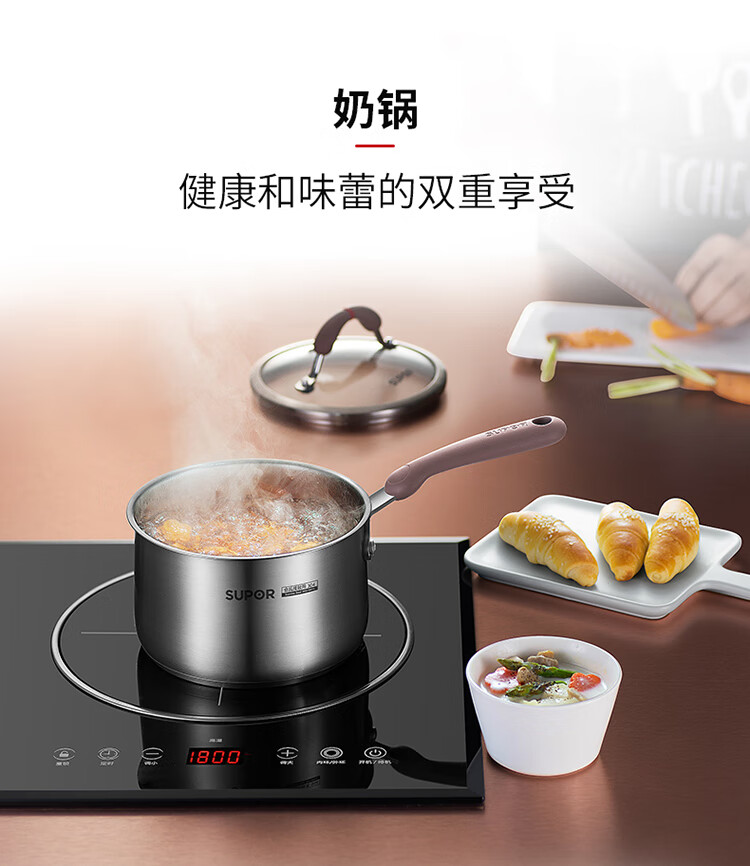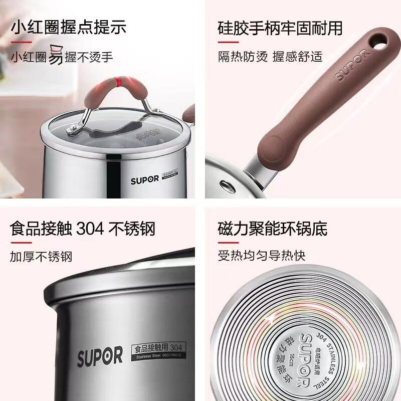 苏泊尔(SUPOR)奶锅不锈钢辅食锅小奶锅304不锈钢实用炊具防刮耐磨 小红圈奶锅-16cm-RT16AA1